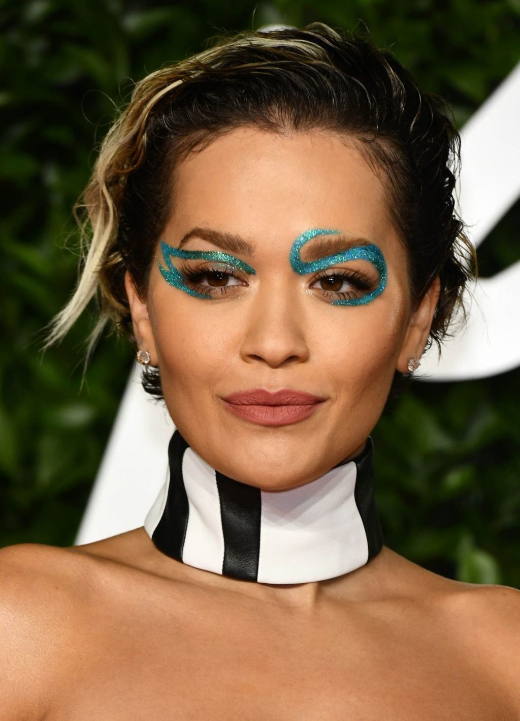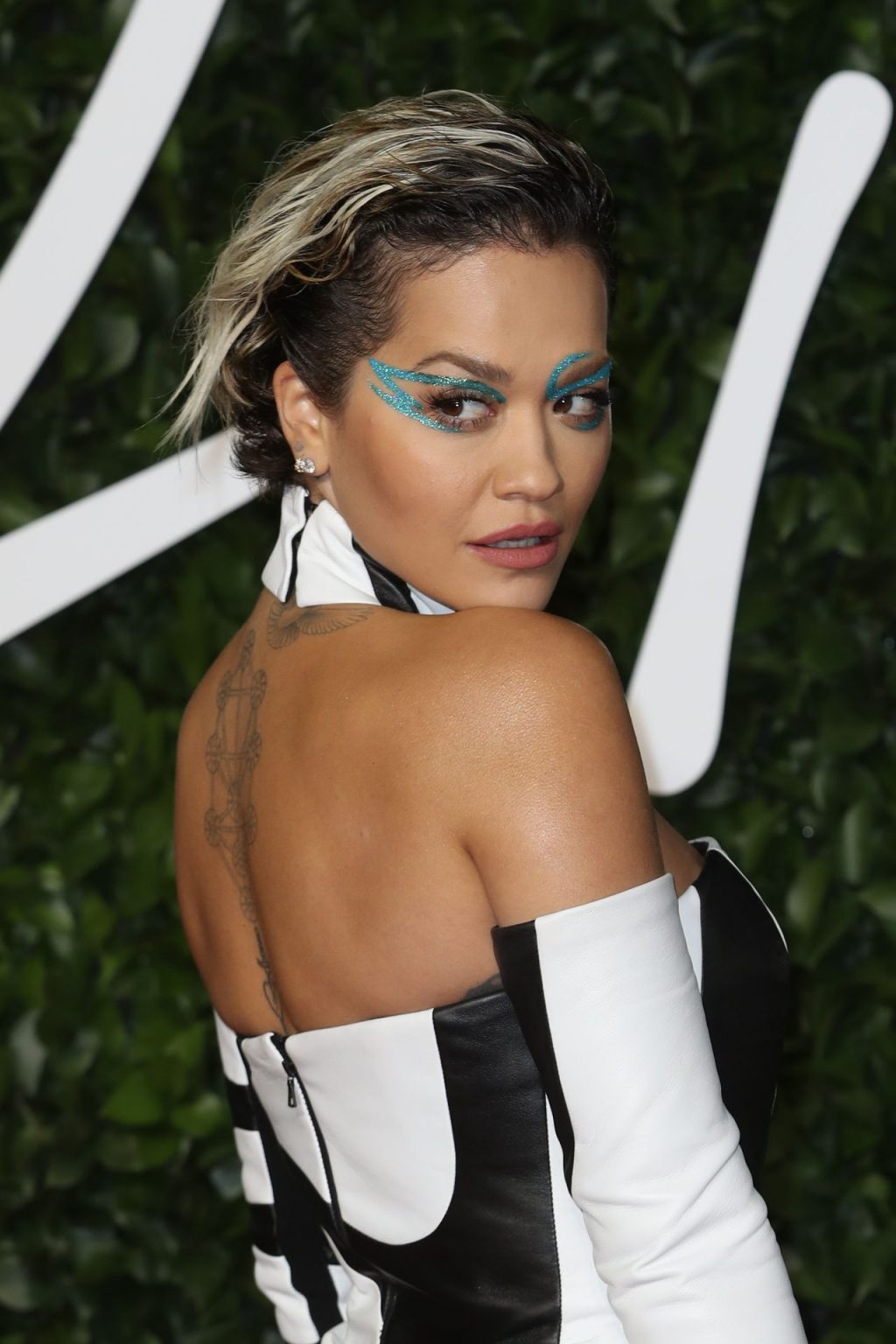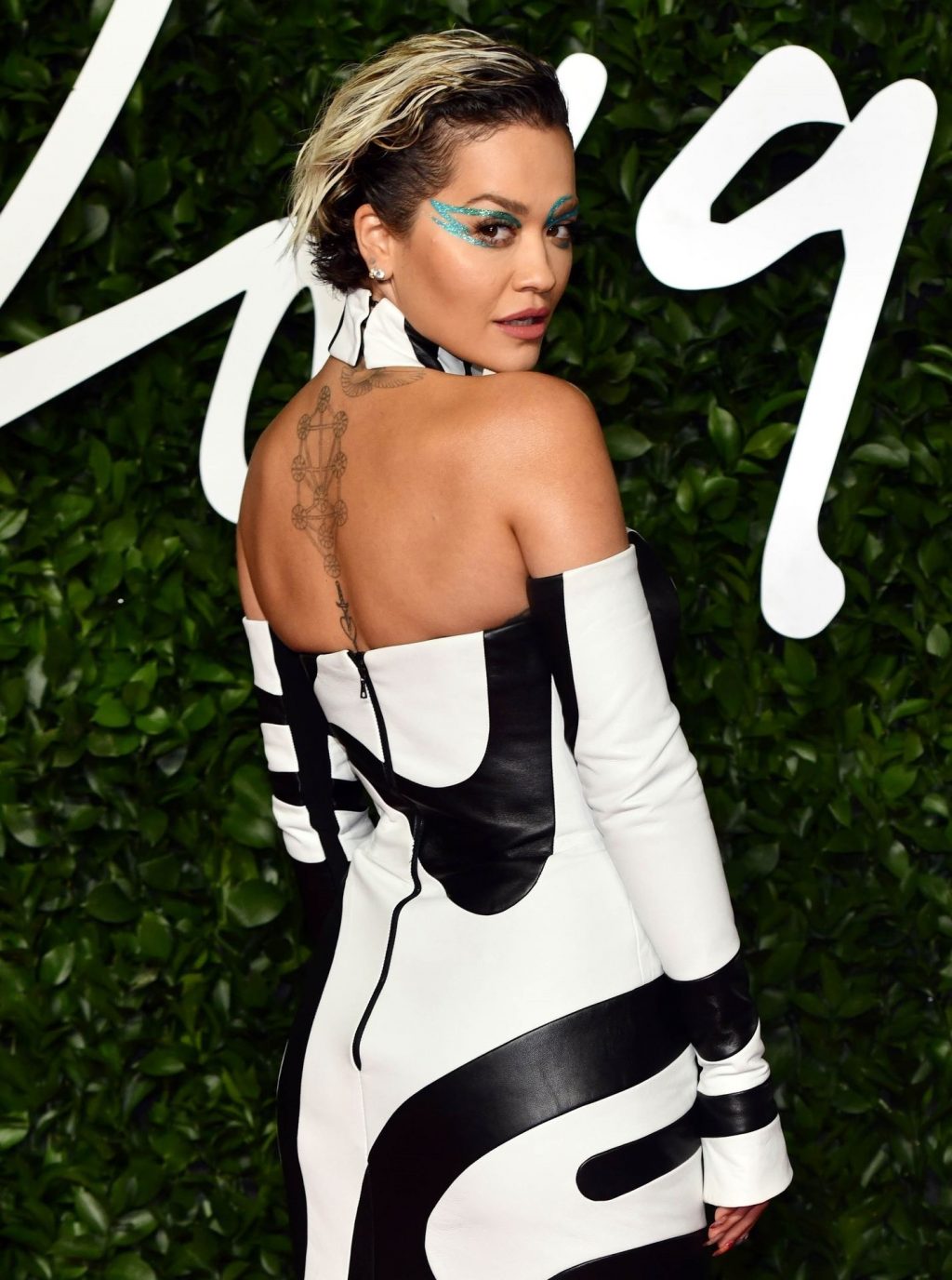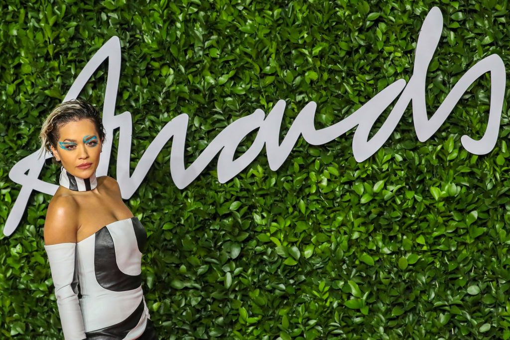 Rita Ora foi fotografada no tapete vermelho do The Fashion Awards 2019 no Royal Albert Hall, Londres, 02/12/2019. A cantora escolheu para o evento um vestido de couro louco com estampa de zebra que adicionou uma dúzia de quilos extras ao seu peso.