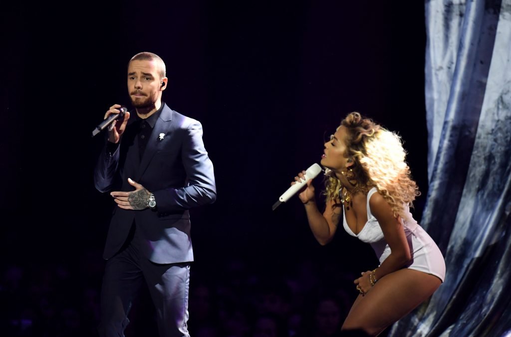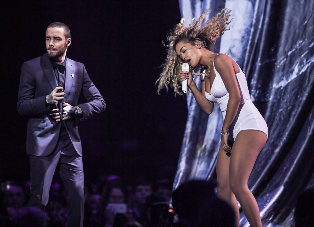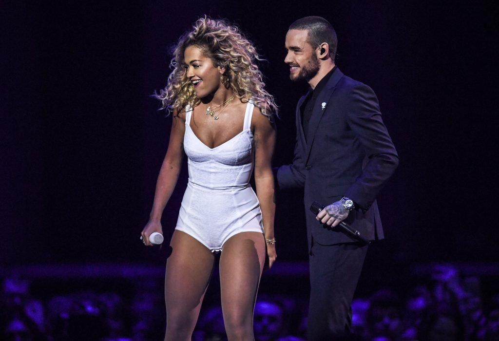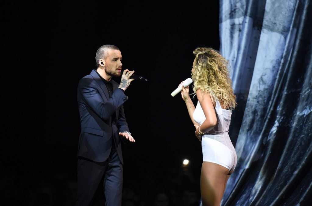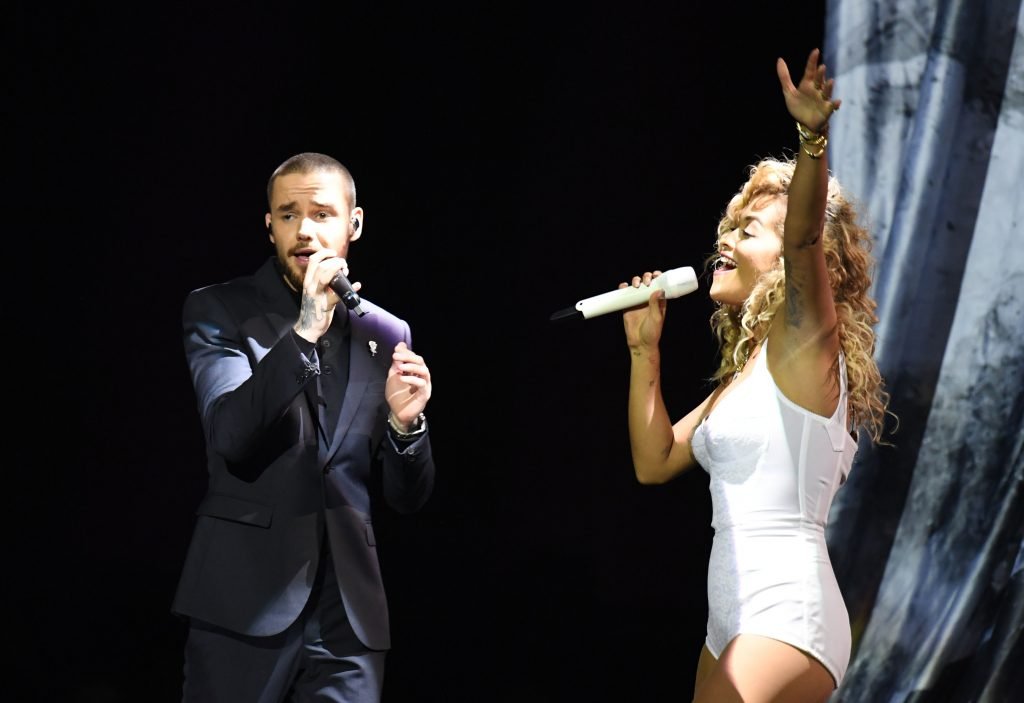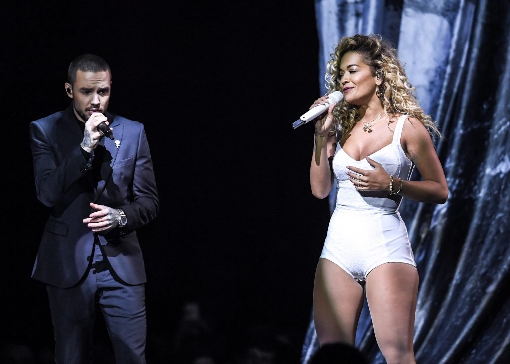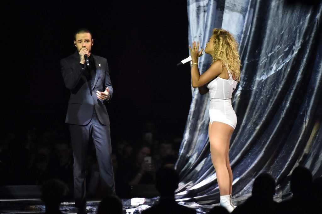 A cantora Rita Ora se apresenta com Liam Payne no Brit Awards em Londres, 21/02/2018.