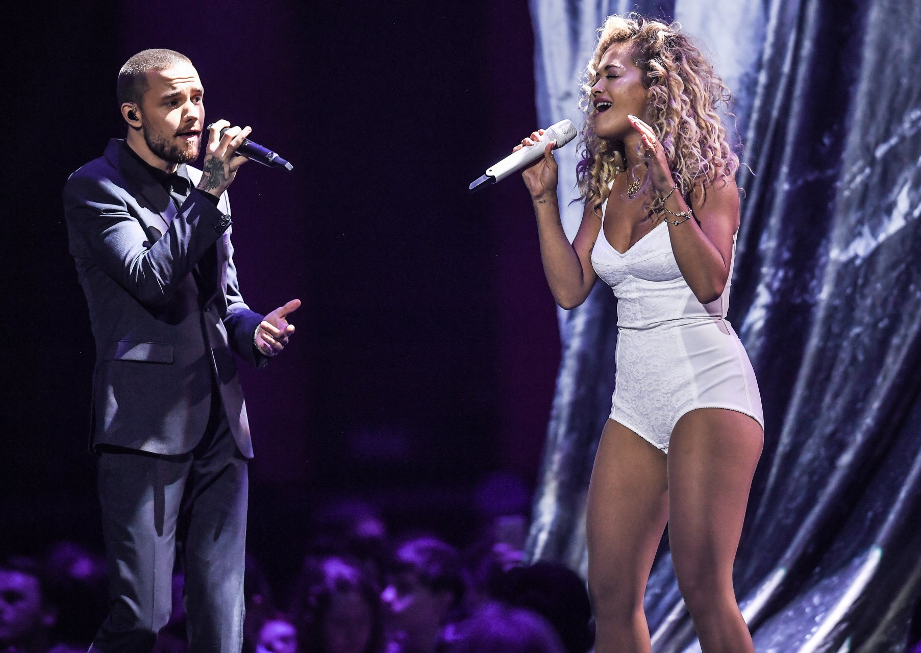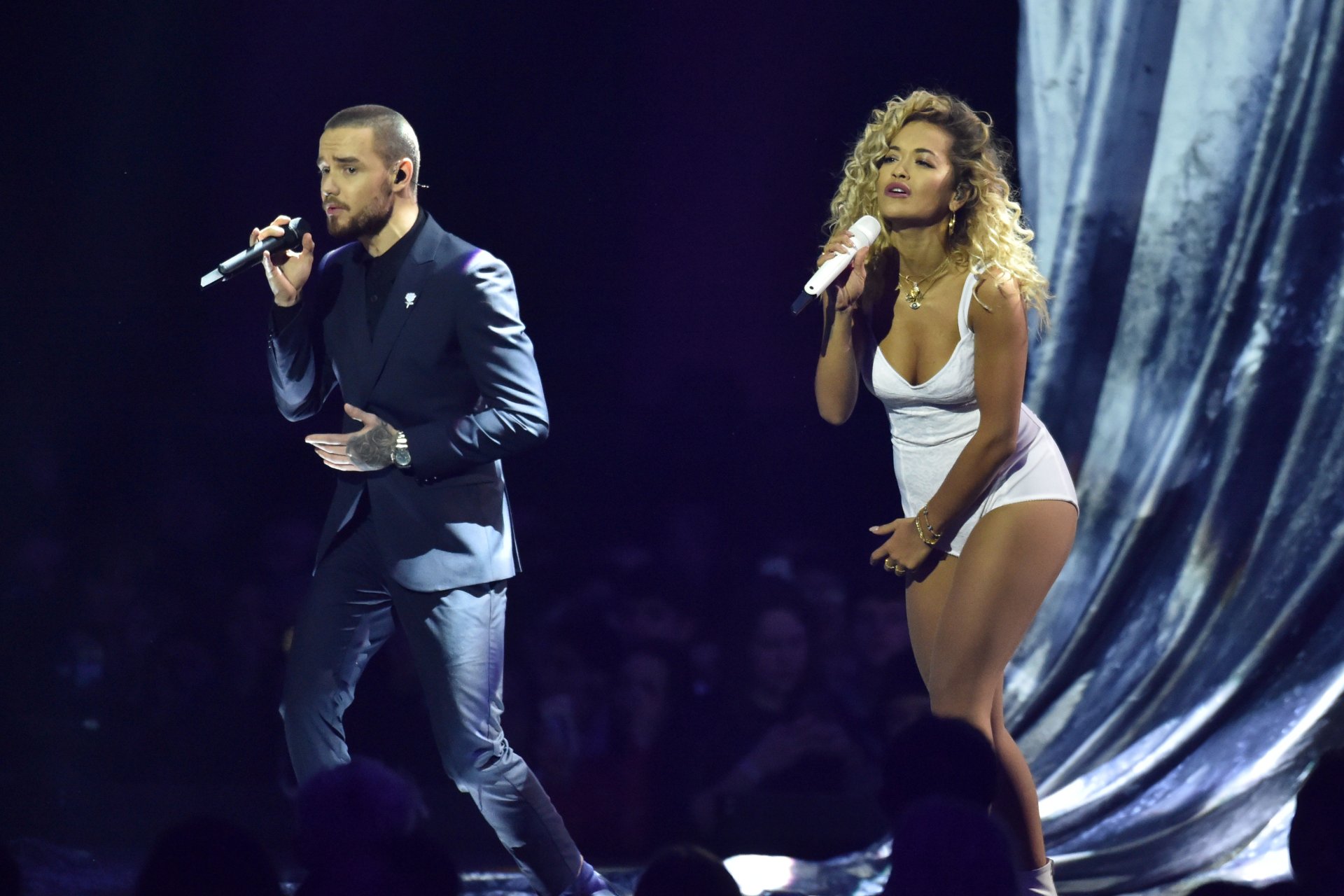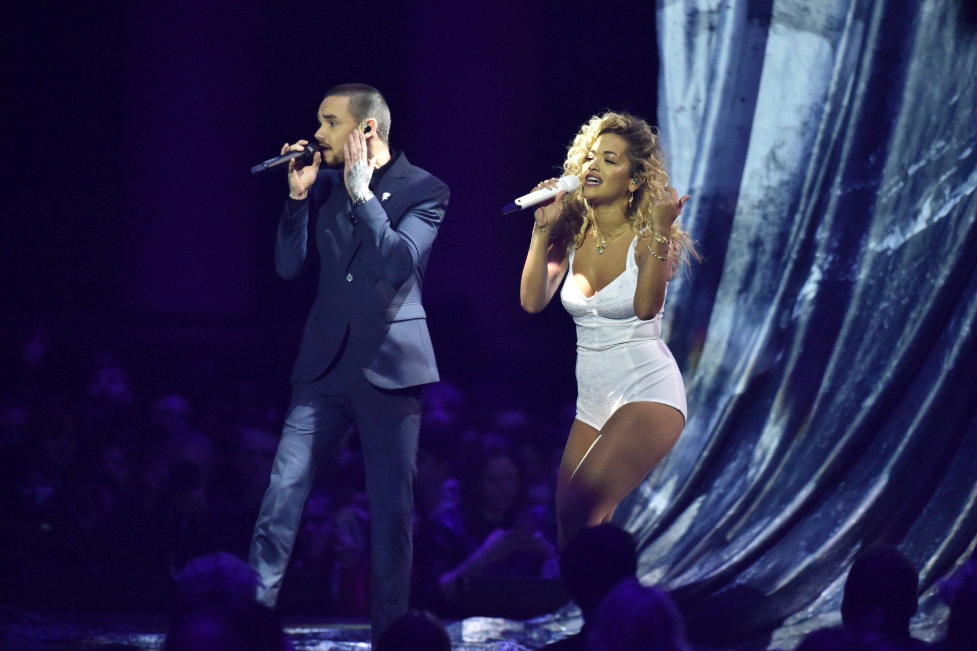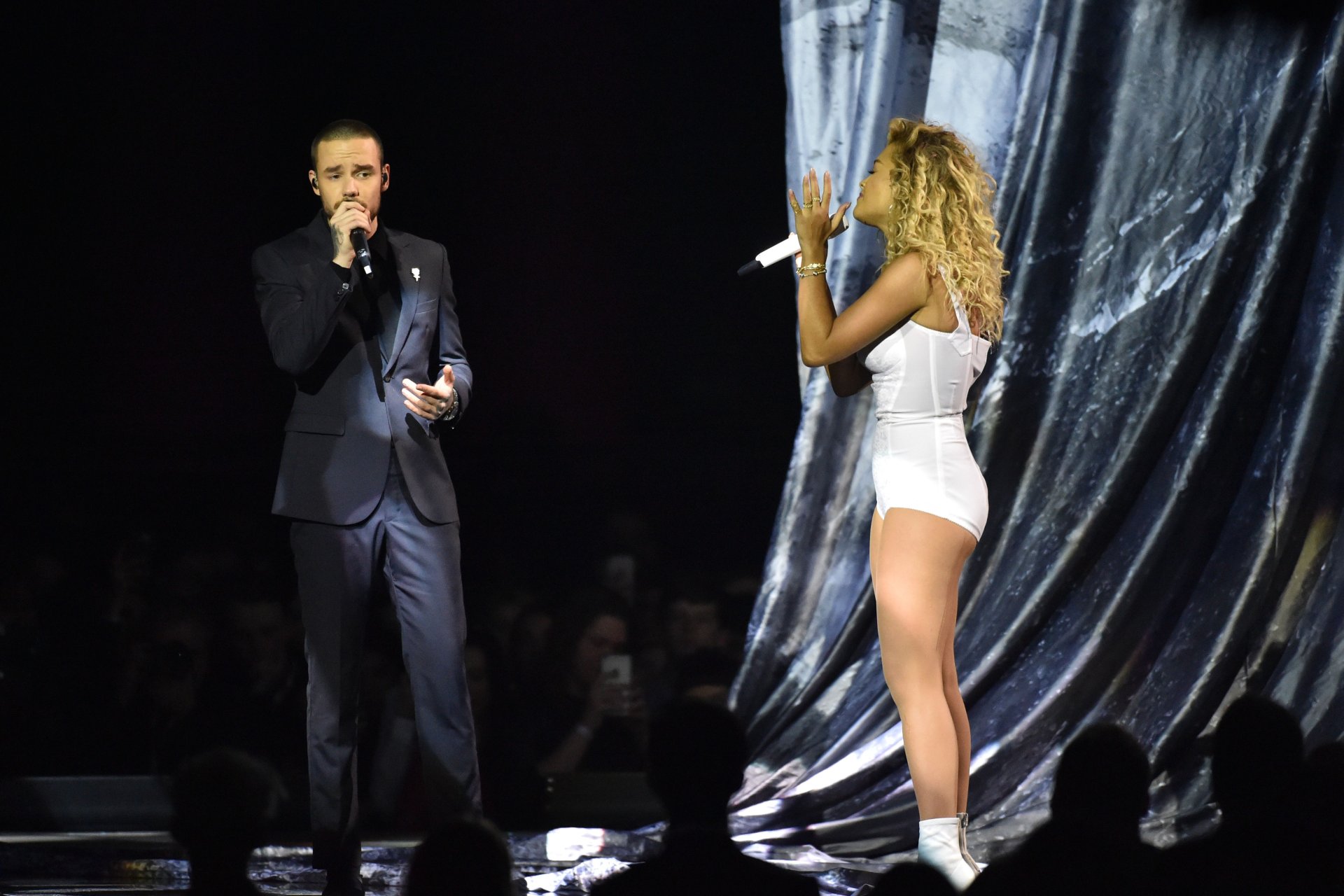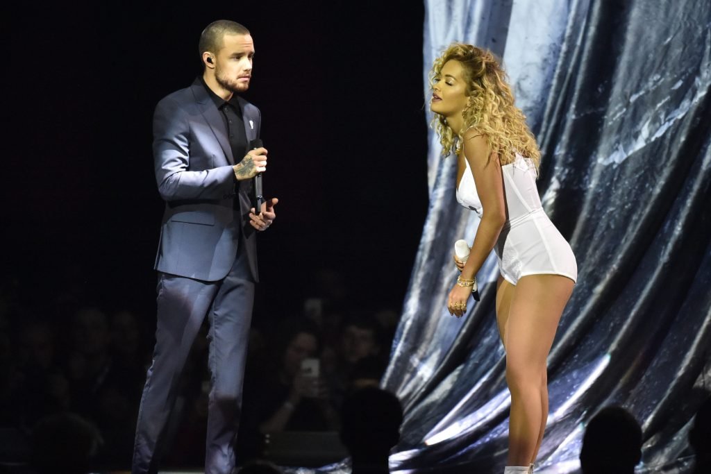 A cantora Rita Ora se apresenta com Liam Payne no Brit Awards em Londres, 21/02/2018.
