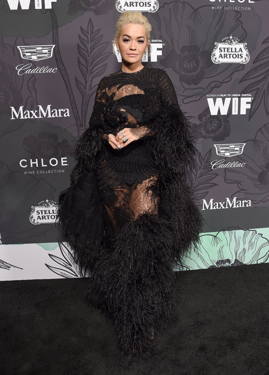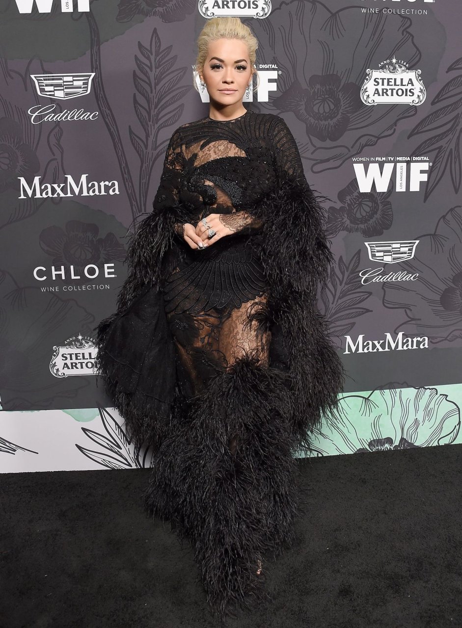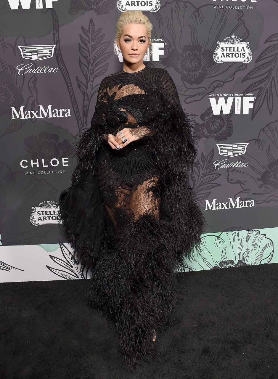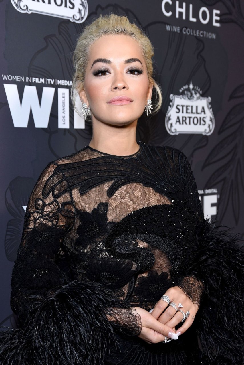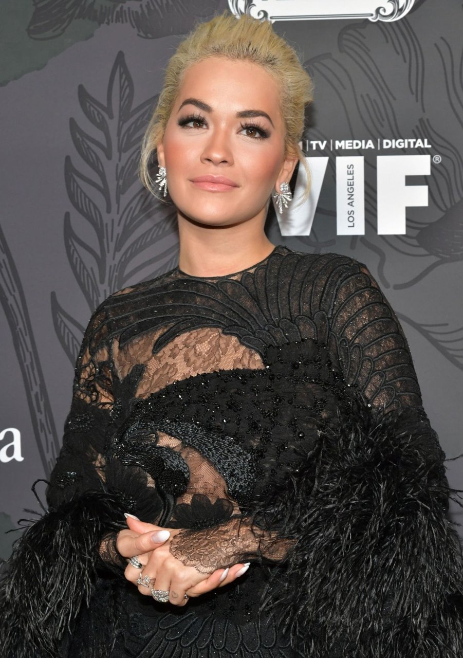A cantora/atriz Rita Ora impressiona com um vestido preto na 12ª Festa Anual Women In Film Oscar no Spring Place em Los Angeles, Califórnia, 22/02/2019.