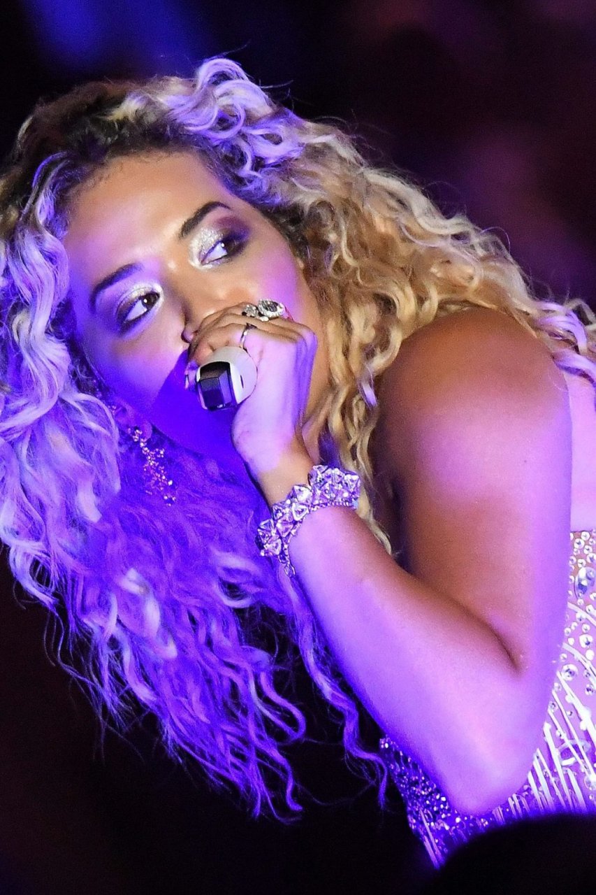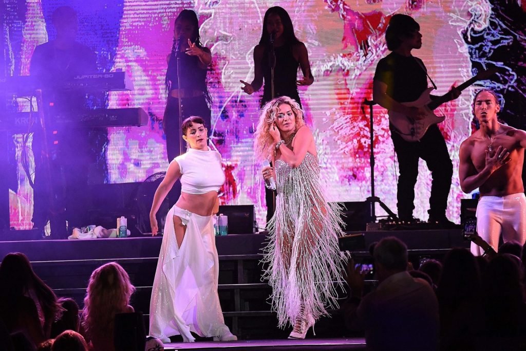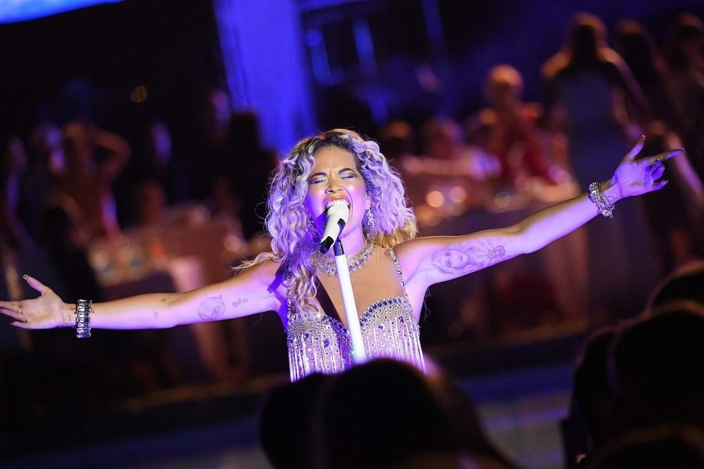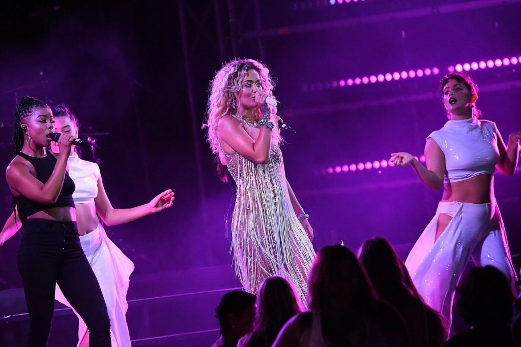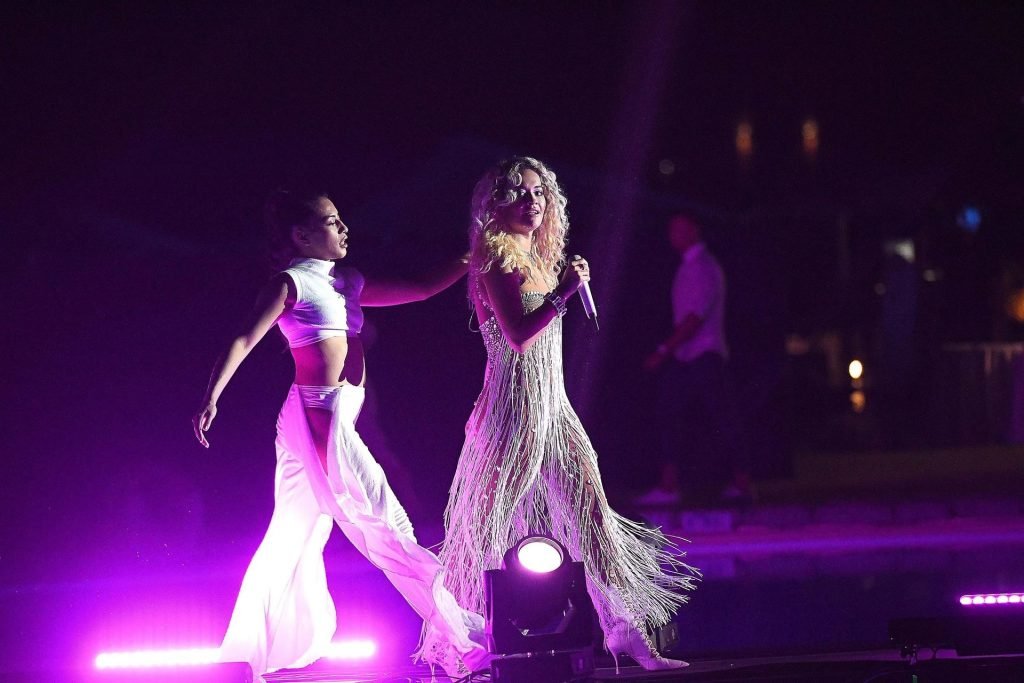 Cantora Rita Ora se apresenta ao vivo em concerto no Hotel Cala di Volpe em Porto Cervo, Sardenha, Itália, 12/08/2019.