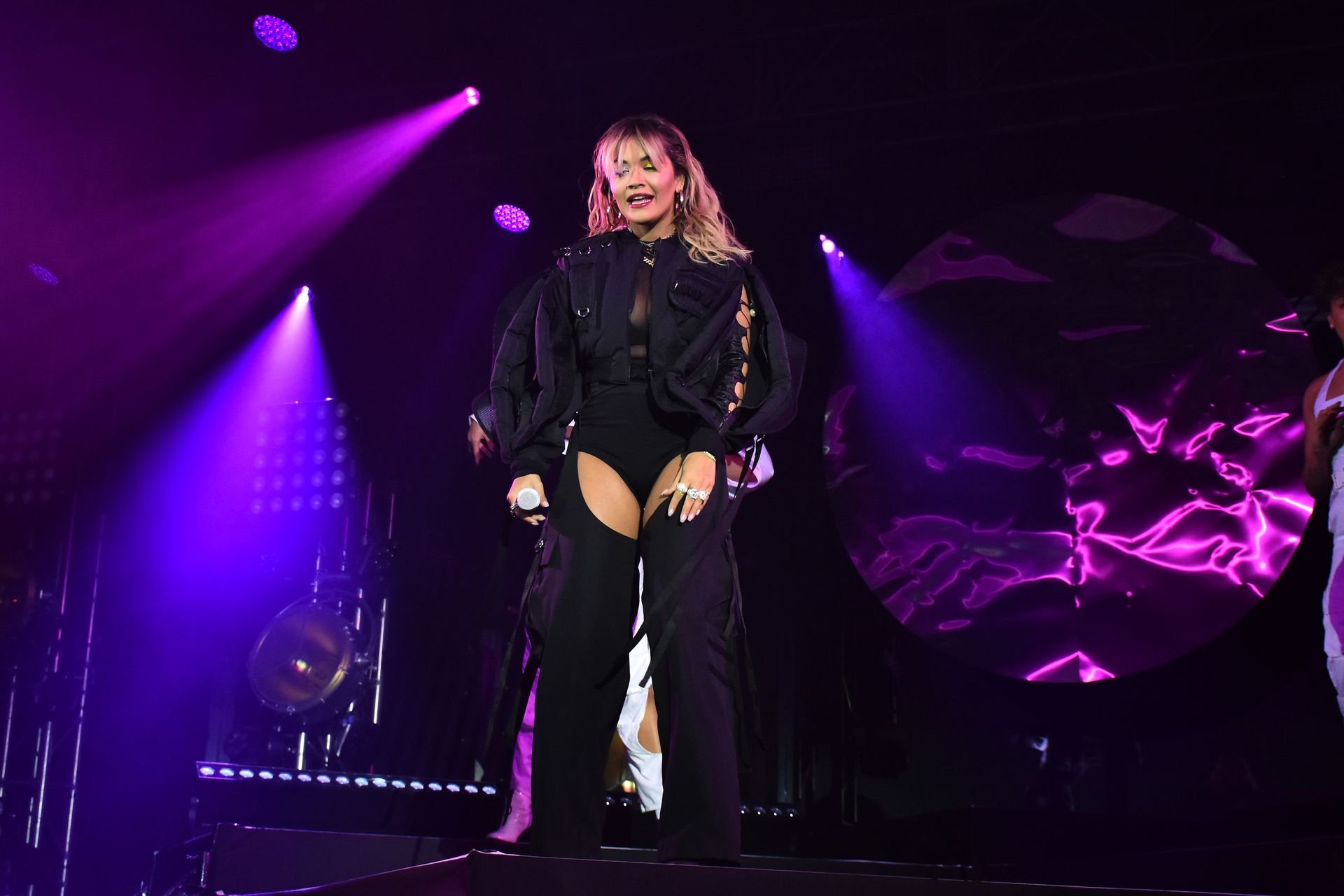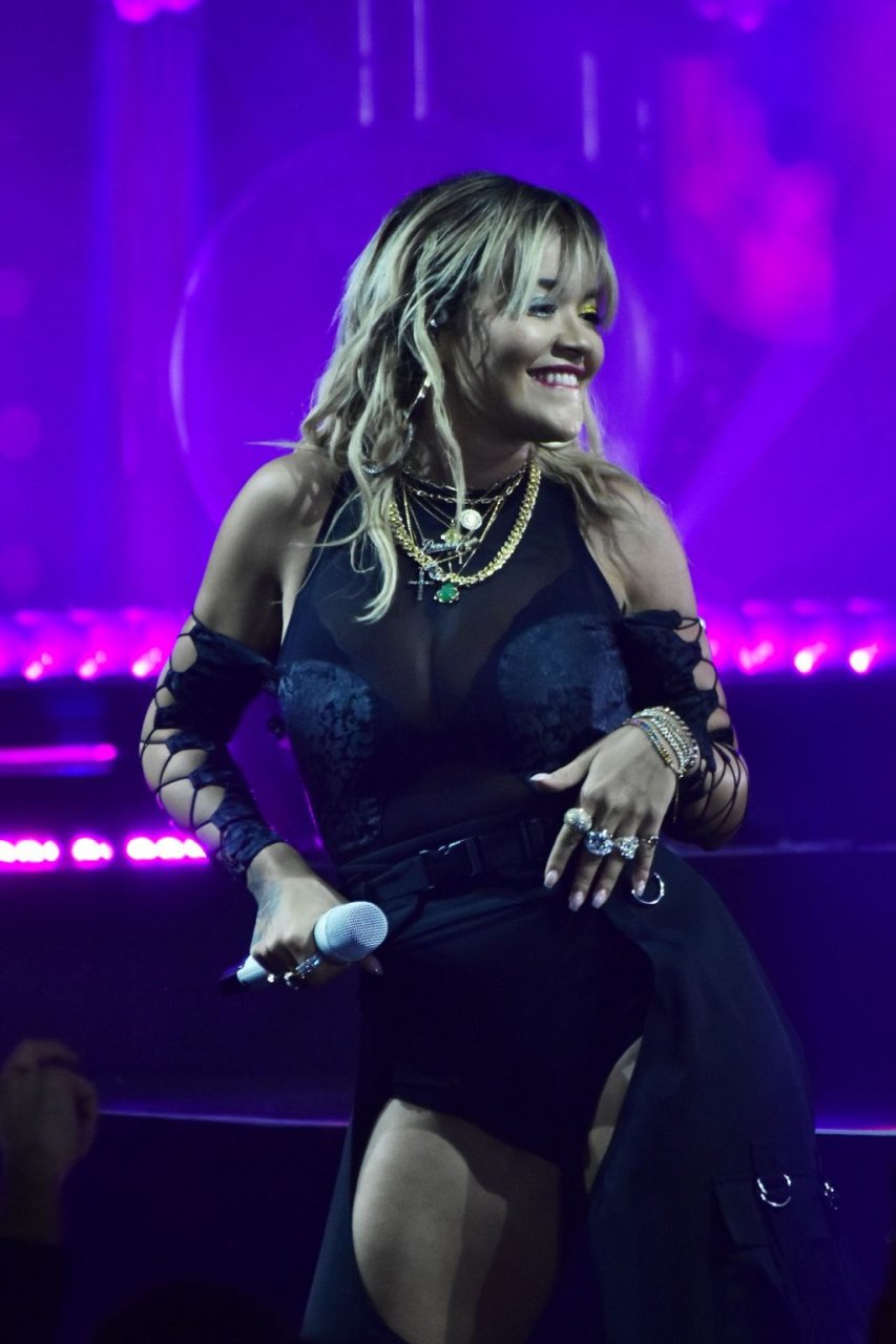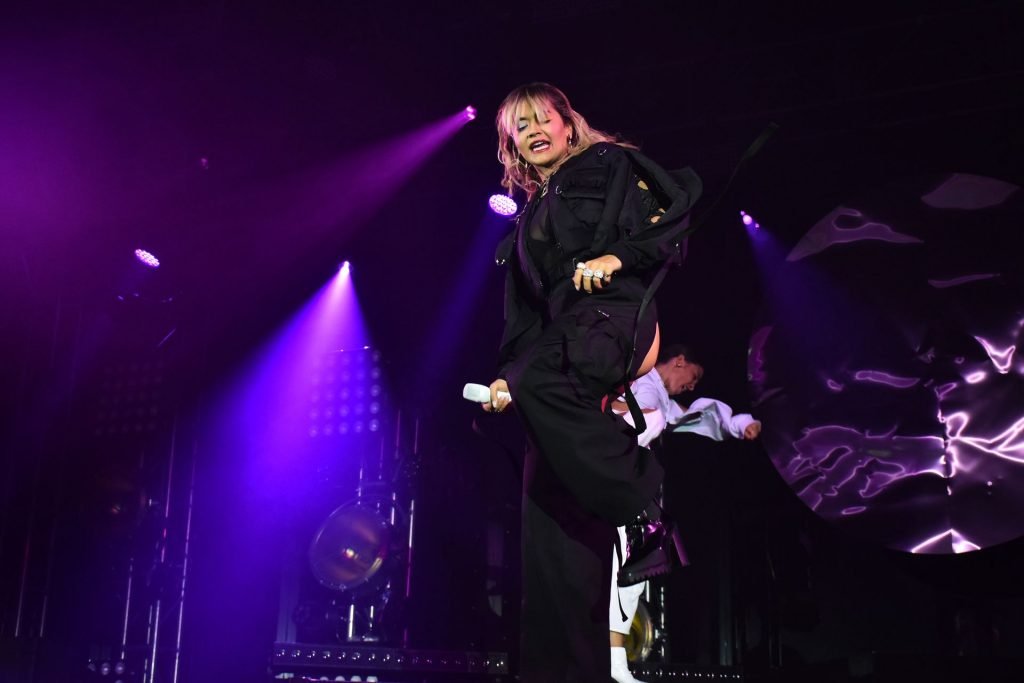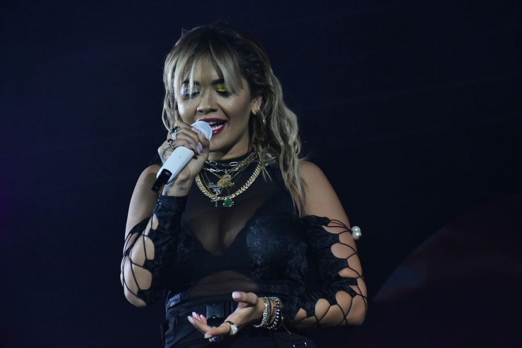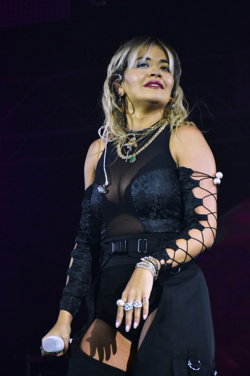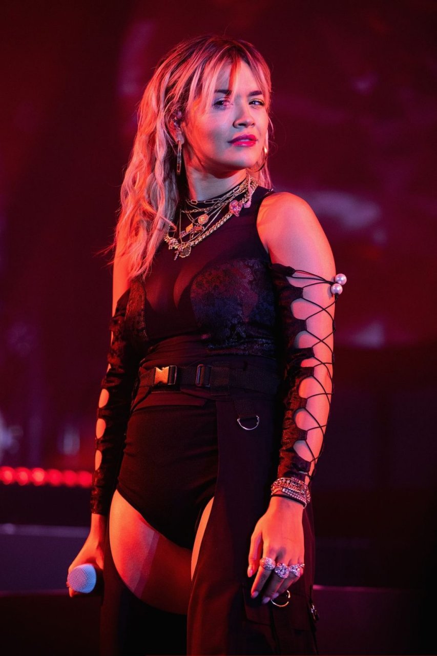 Singer Rita Ora performs at the American Express Gold Launch in Mexico City, 10/17/2019. Ela mostrou seu decote e bumbum no palco.