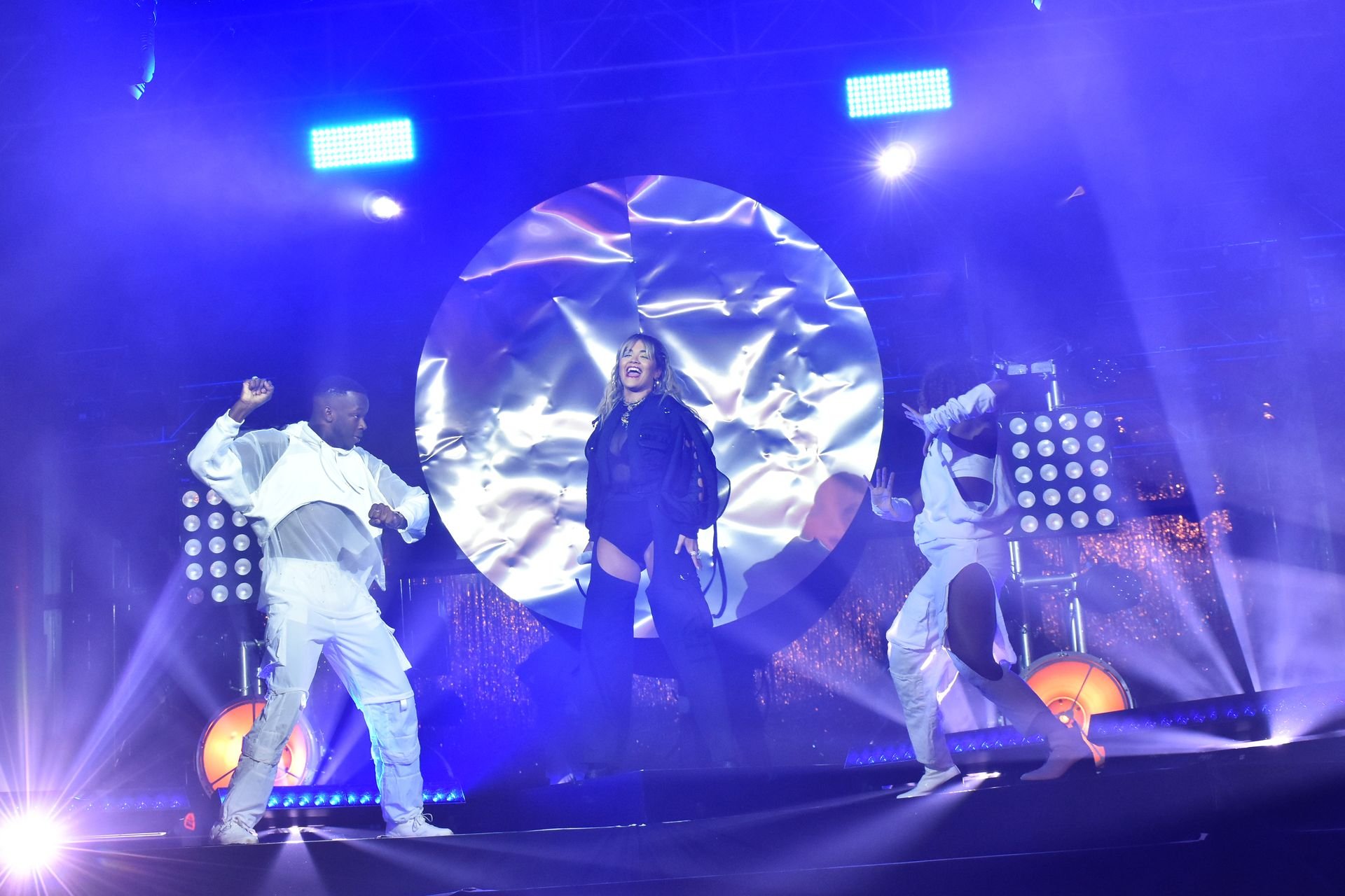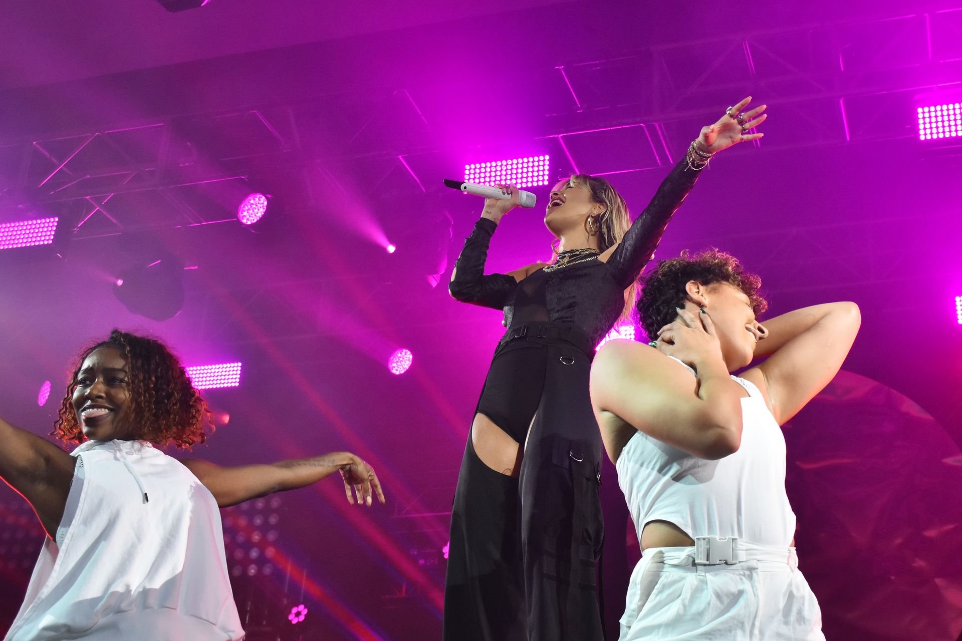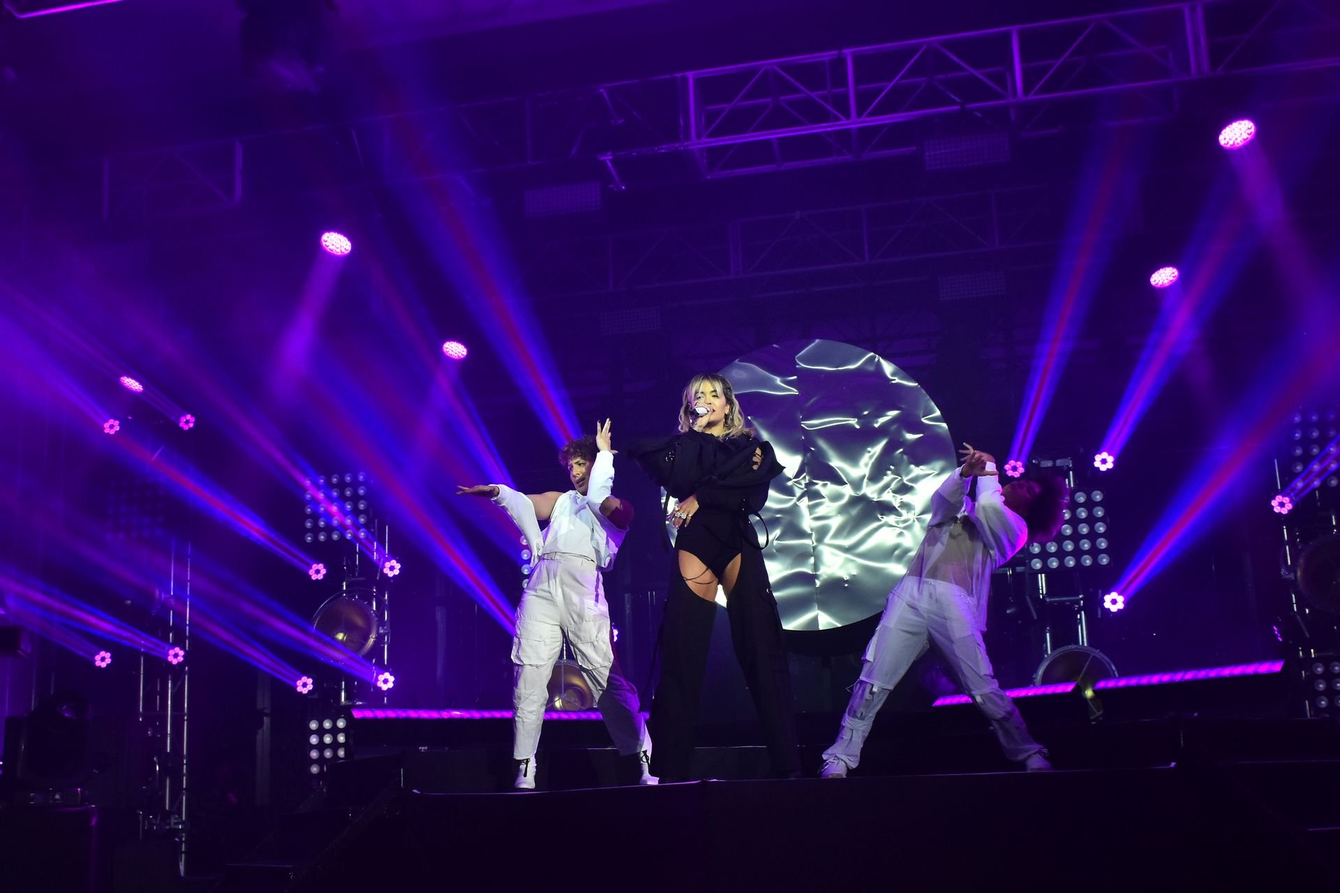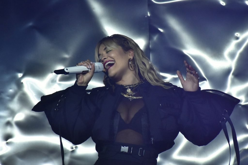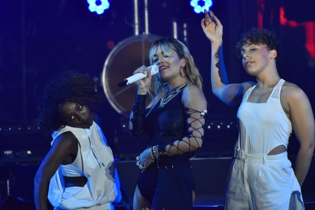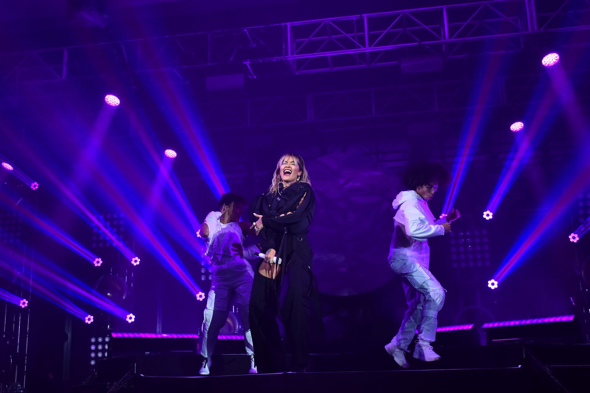 Singer Rita Ora performs at the American Express Gold Launch in Mexico City, 10/17/2019. Ela mostrou seu decote e bumbum no palco.