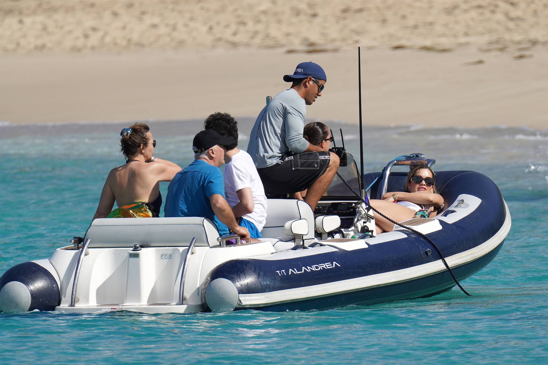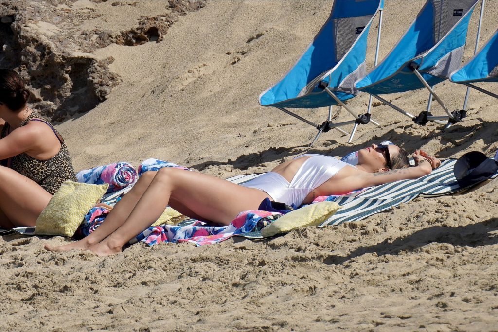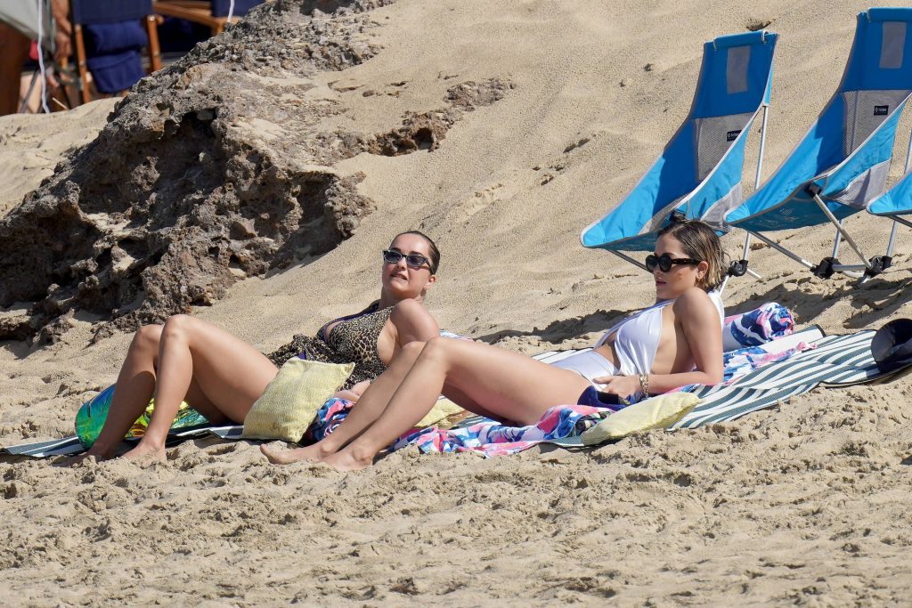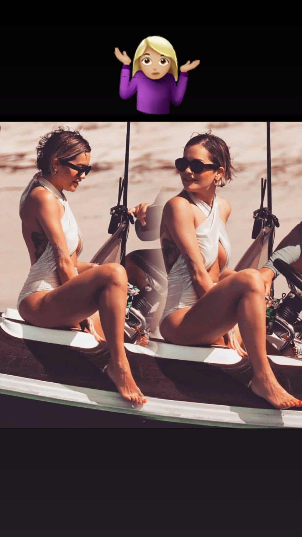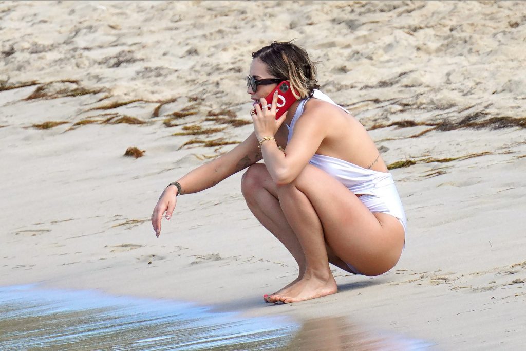 Singer Rita Ora foi vista usando um maiô branco estilo envelope, passando a temporada de férias com sua família em St. Barth, 21/12/2019.