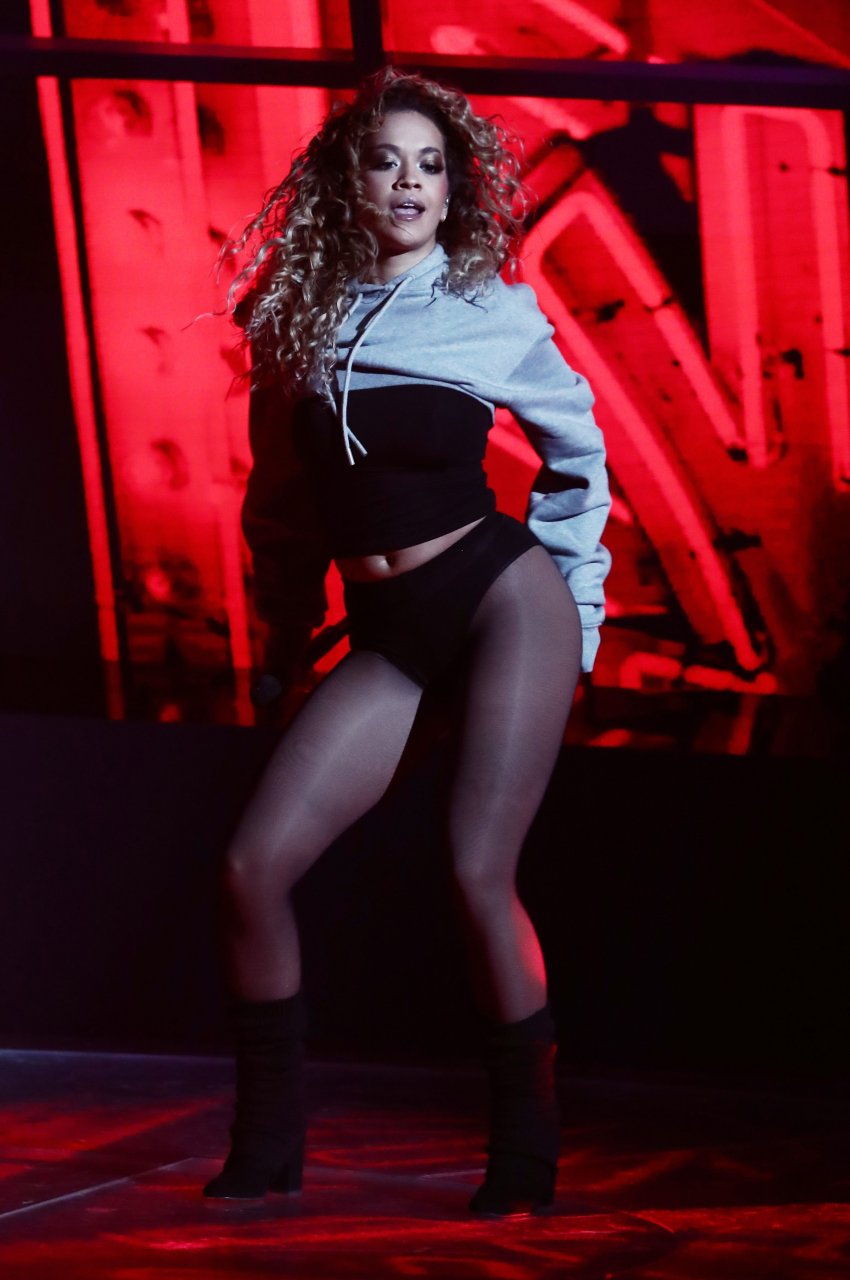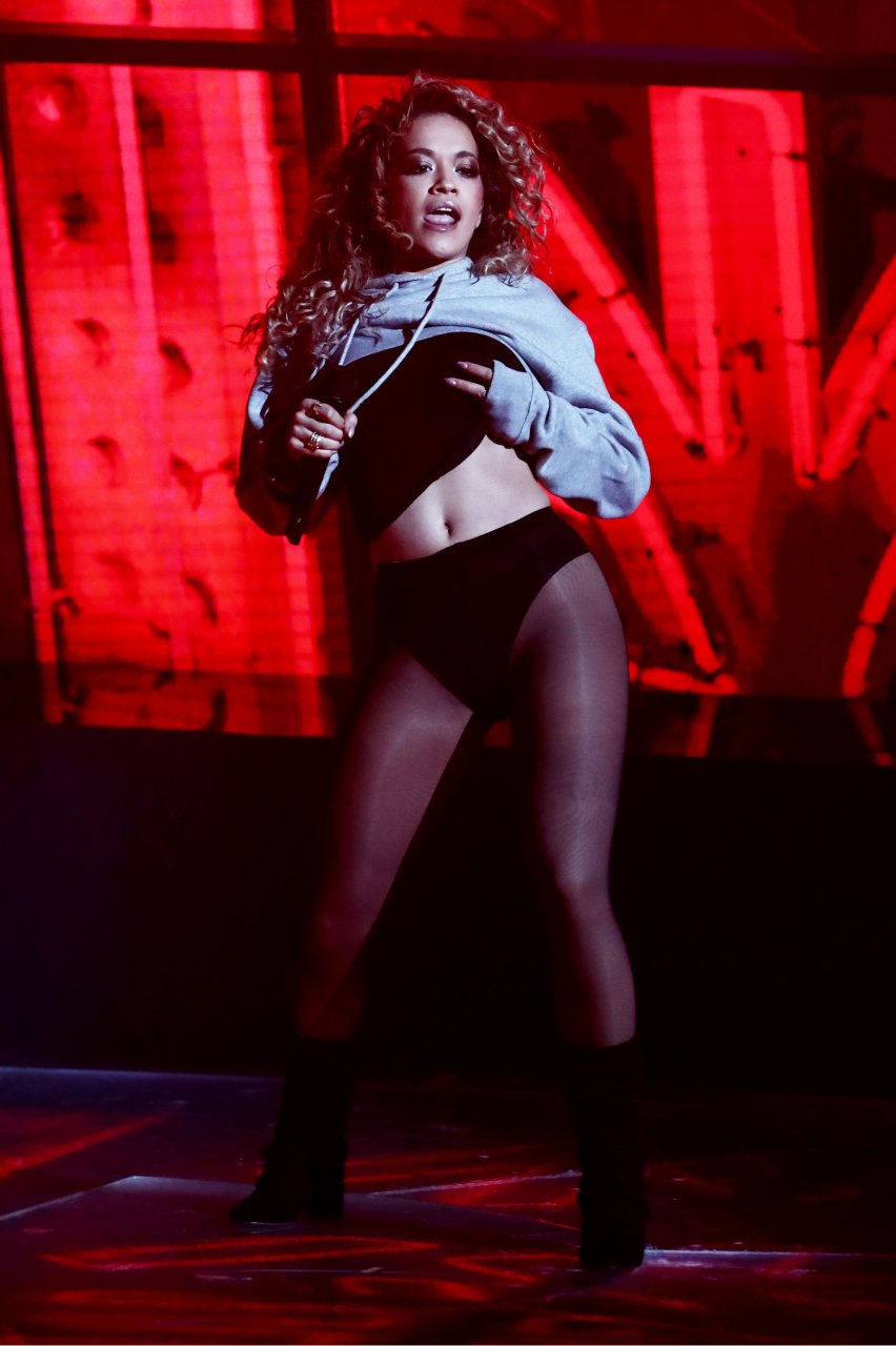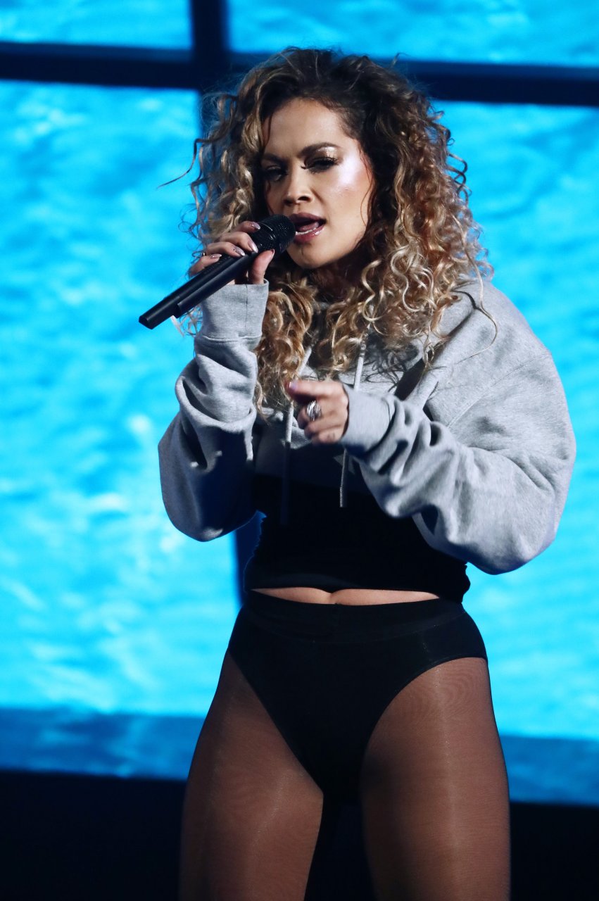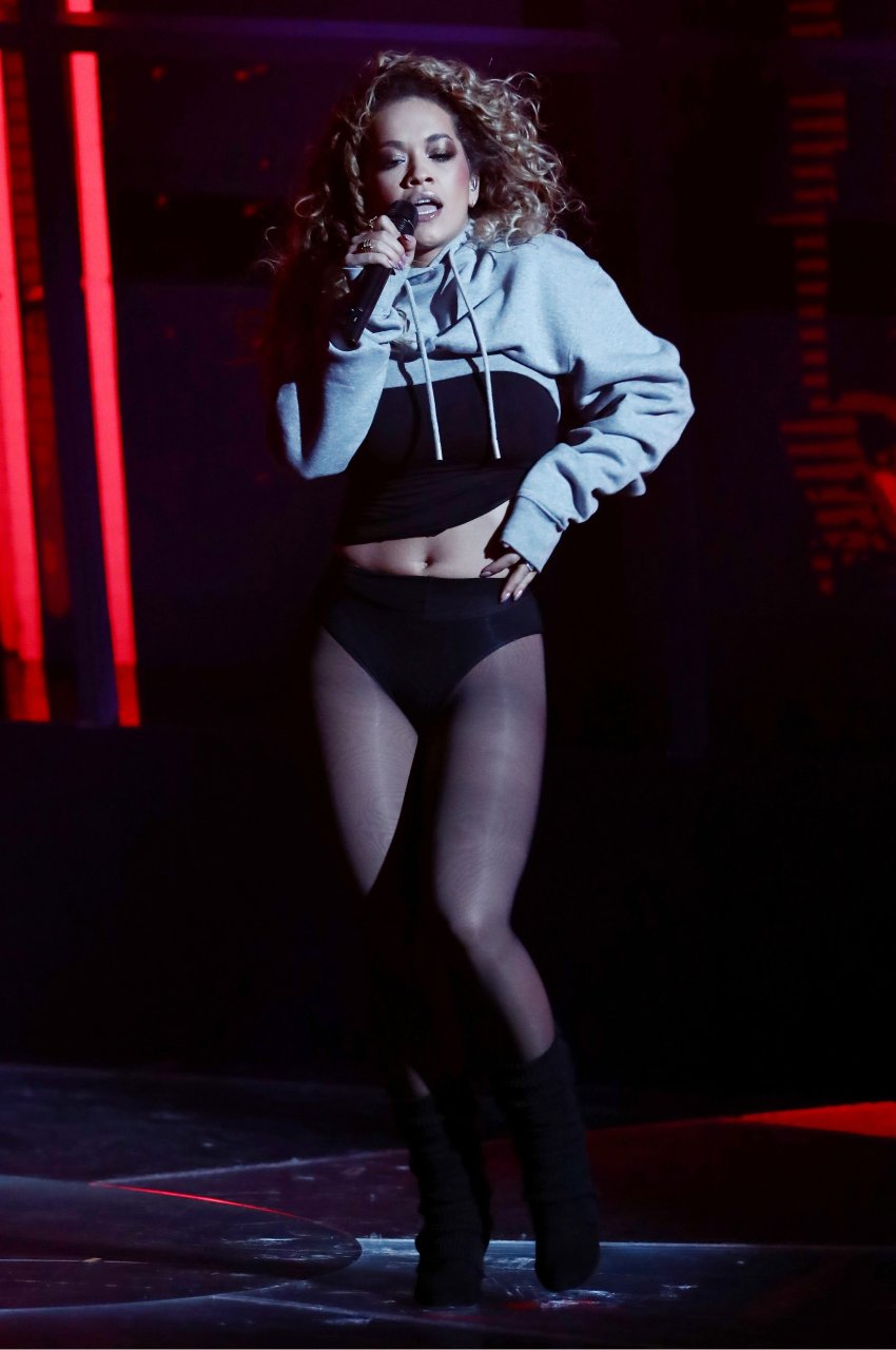 Rita Ora se apresenta no programa de TV The X Factor (Série 14, Episódio 20), 11/05/2017. Rita Ora é uma cantora e atriz britânica (Southpaw – 2015). Idade: 26 anos (nascida em 26 de novembro de 1990).