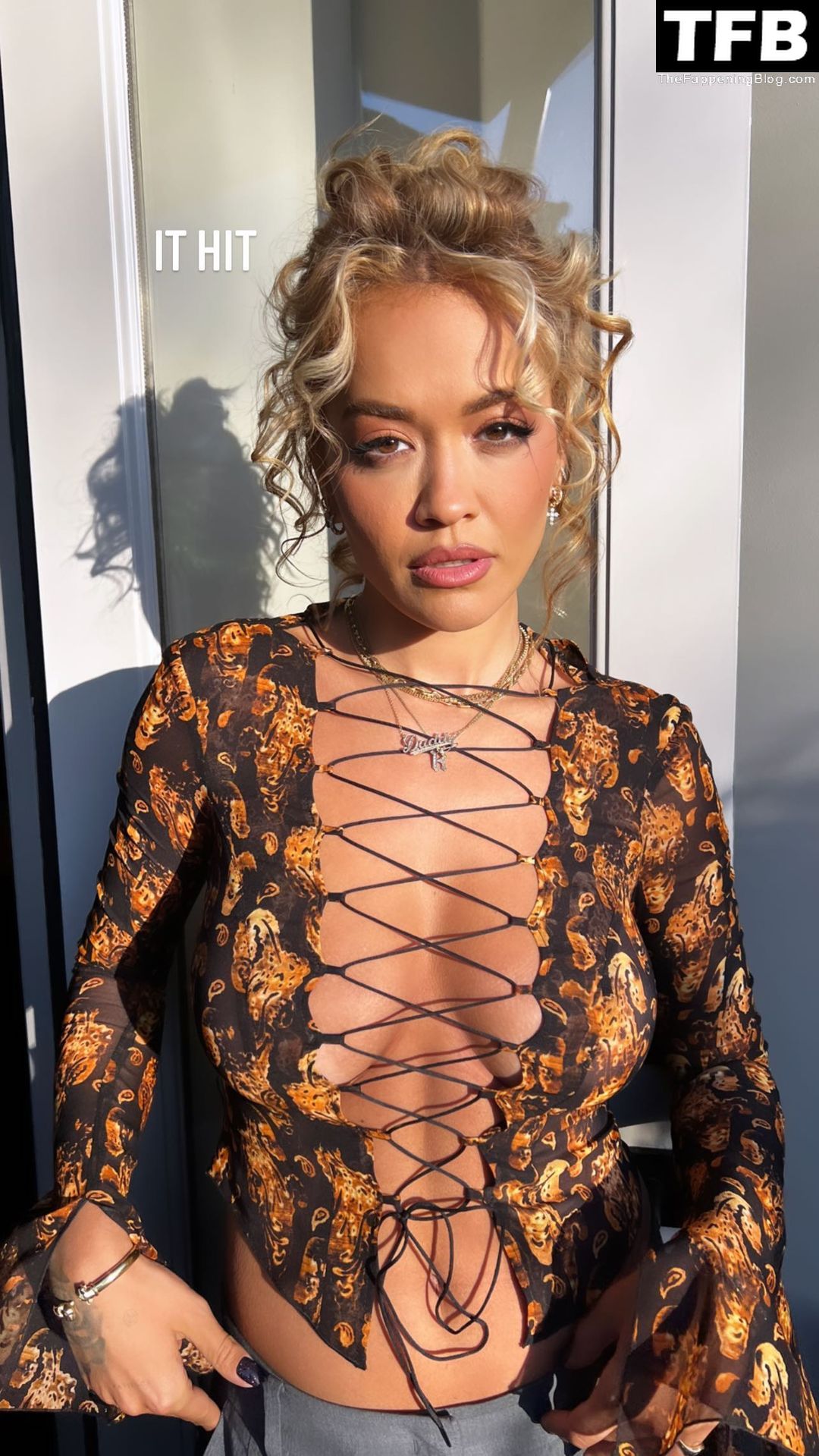 A cantora Rita Ora posa sem sutiã, mostrando seus seios sexy – Instagram, 11/05/2022.