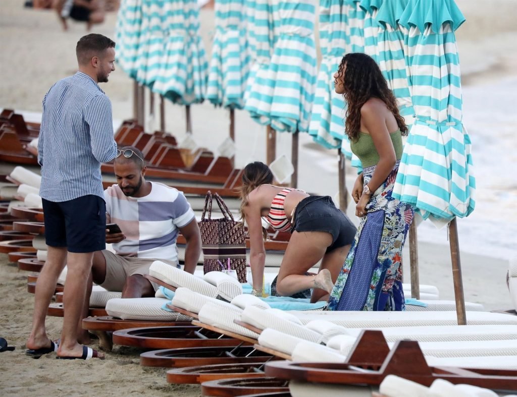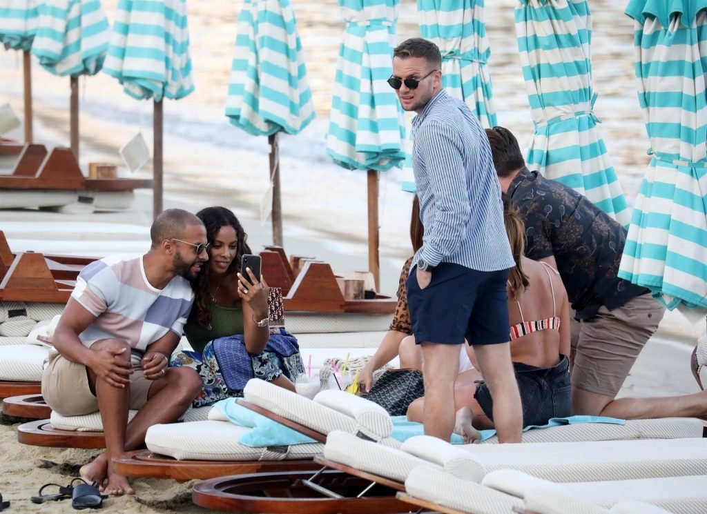 O casal feliz parecia muito apaixonado enquanto brincavam e tiravam selfies na praia, Rochelle também foi vista apreciando um coquetel enquanto conversava animadamente com amigos enquanto relaxavam juntos na praia!