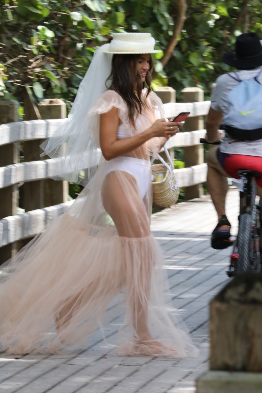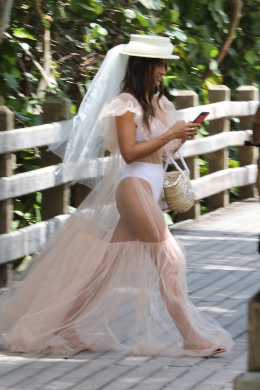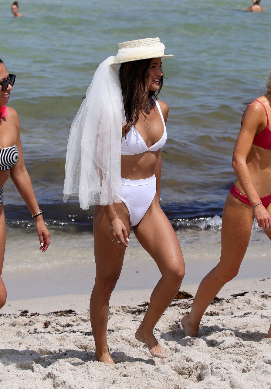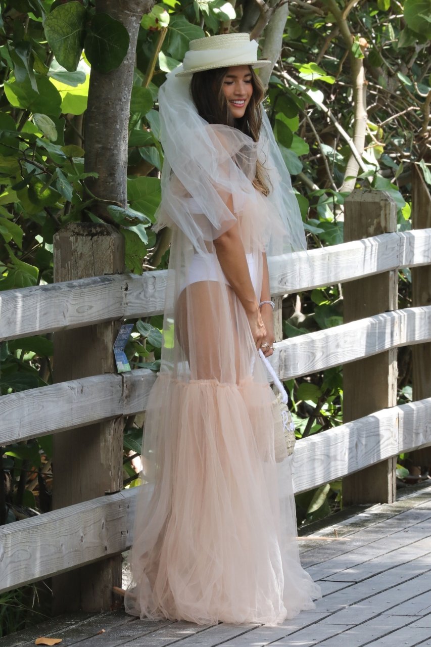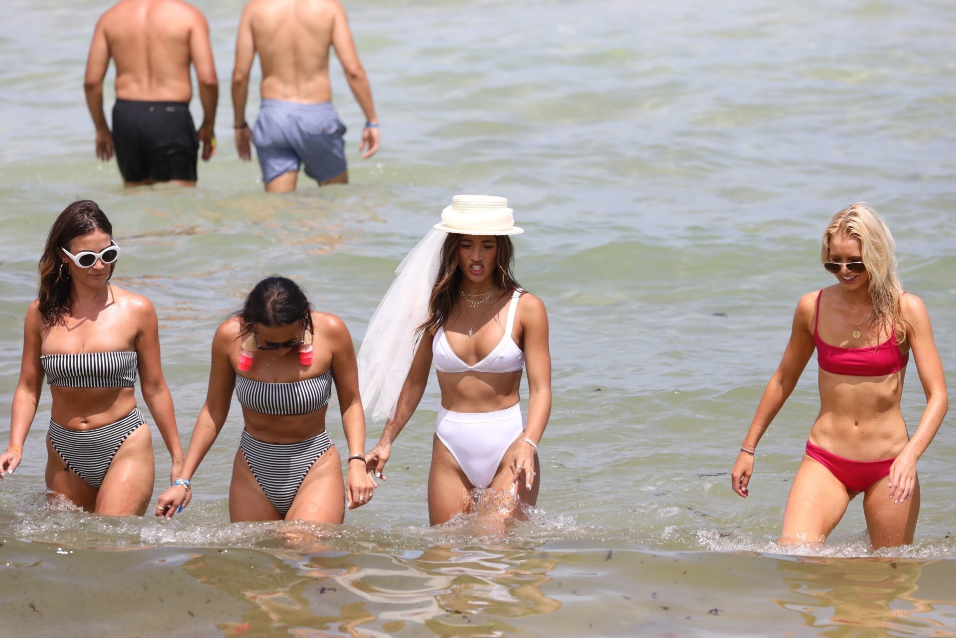 Rocky Barnes realiza uma sessão de fotos na praia antes do seu casamento em Miami Beach, 11/08/2018. Rocky é vista com suas amigas enquanto pulam nas águas da Flórida de biquíni, enquanto Rocky usa um véu para a sessão. Rachel (Rocky) Barnes é uma modelo e blogueira americana. Nascida em: 12 de novembro de 1985.