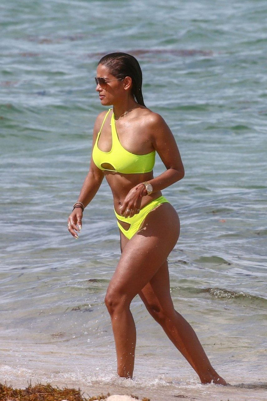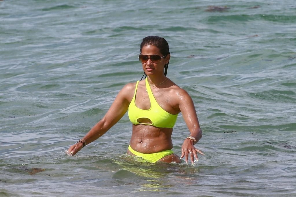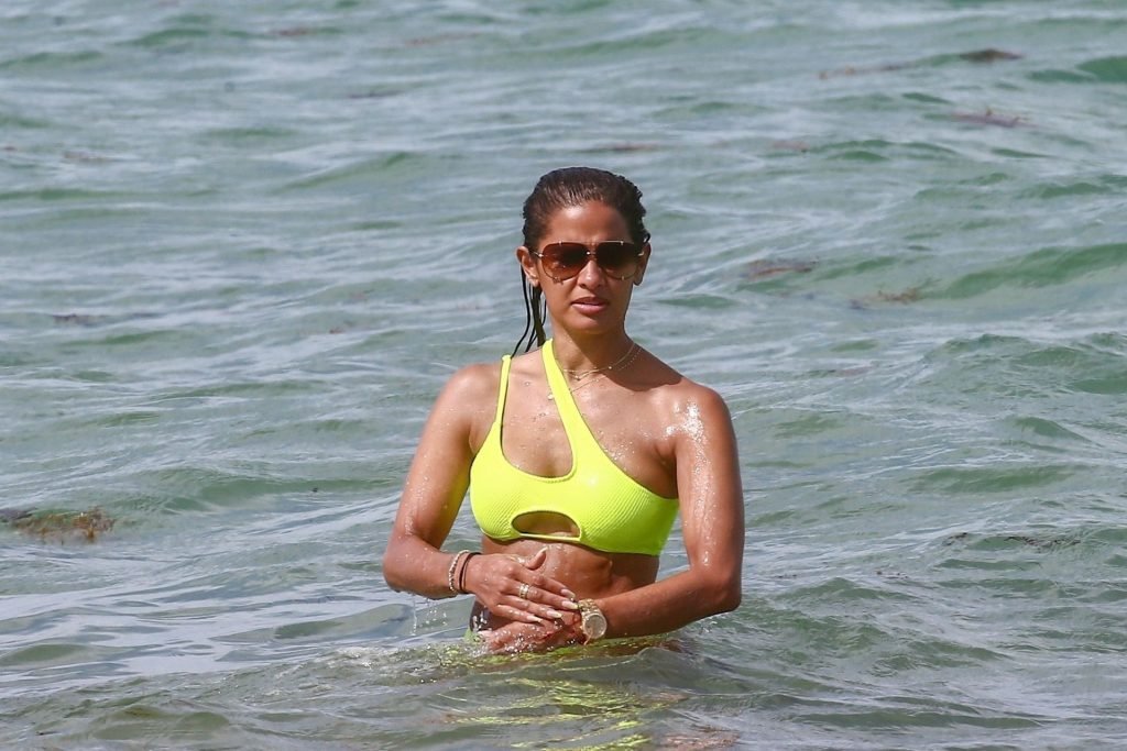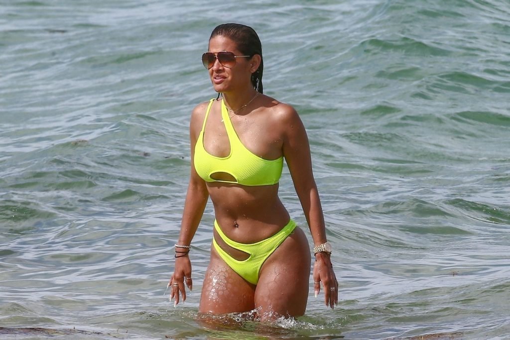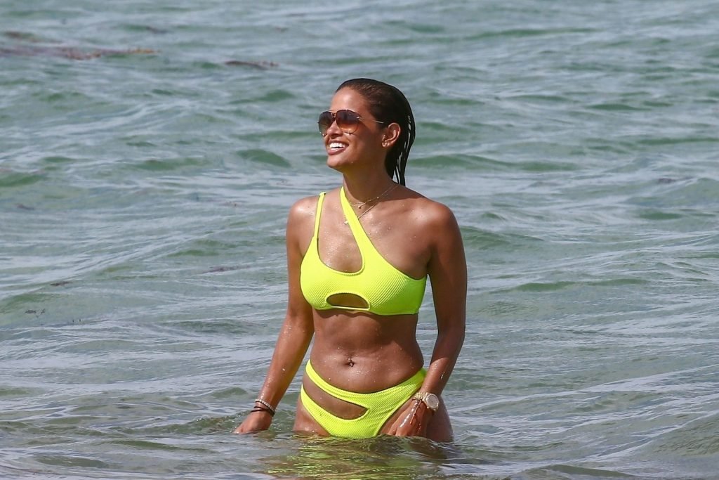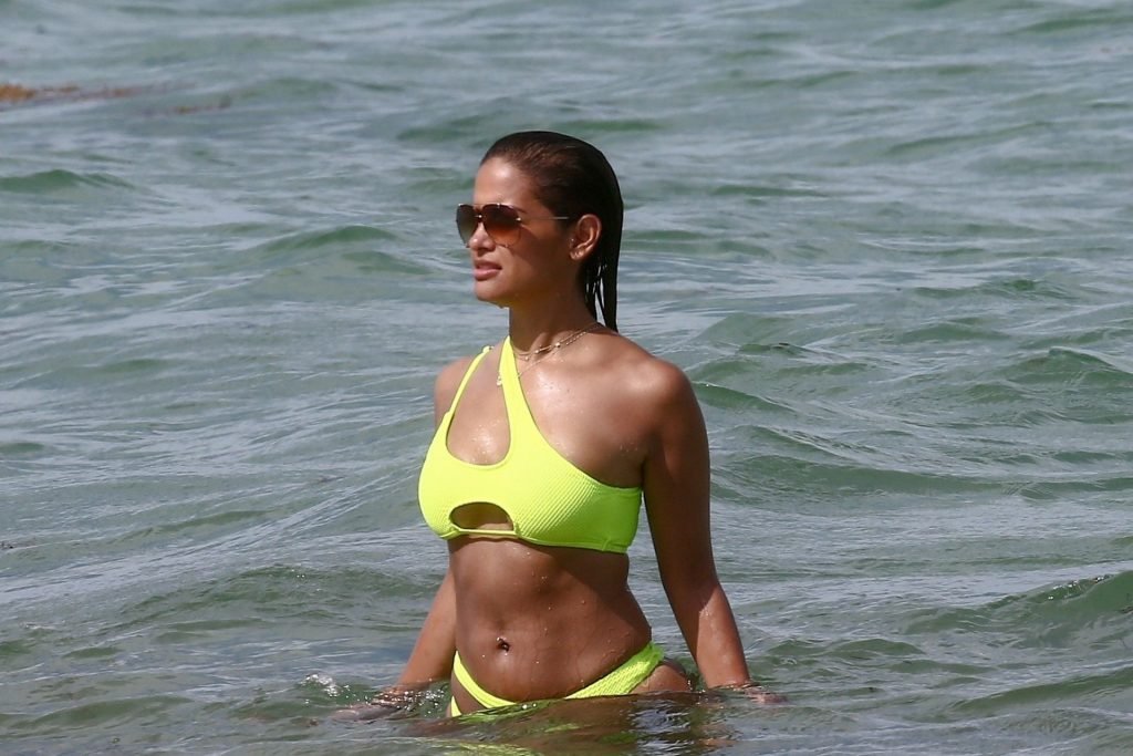 Estrela de TV e modelo Rocsi Diaz se refresca no oceano com um companheiro masculino desconhecido em um dia quente em Miami Beach, 11/06/2019.