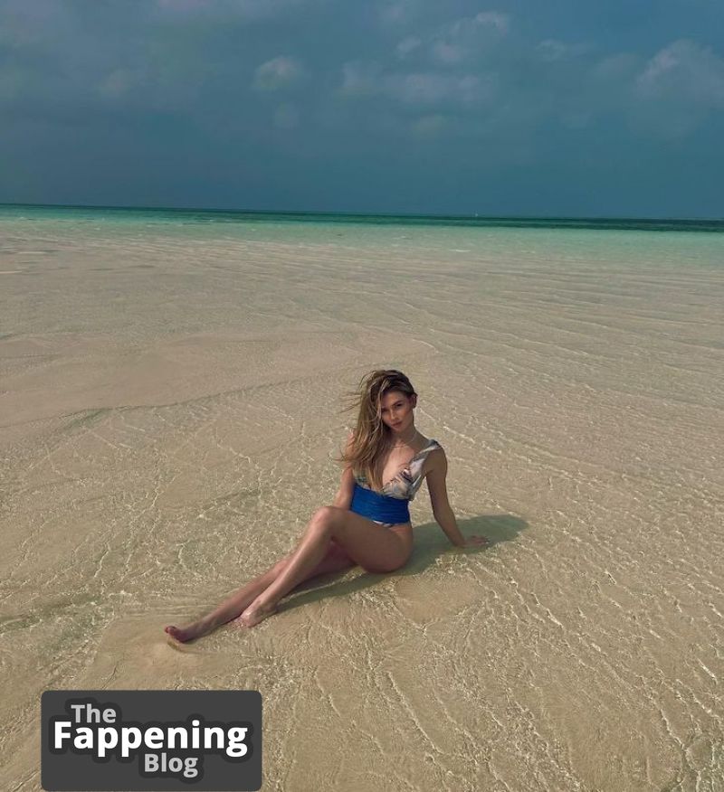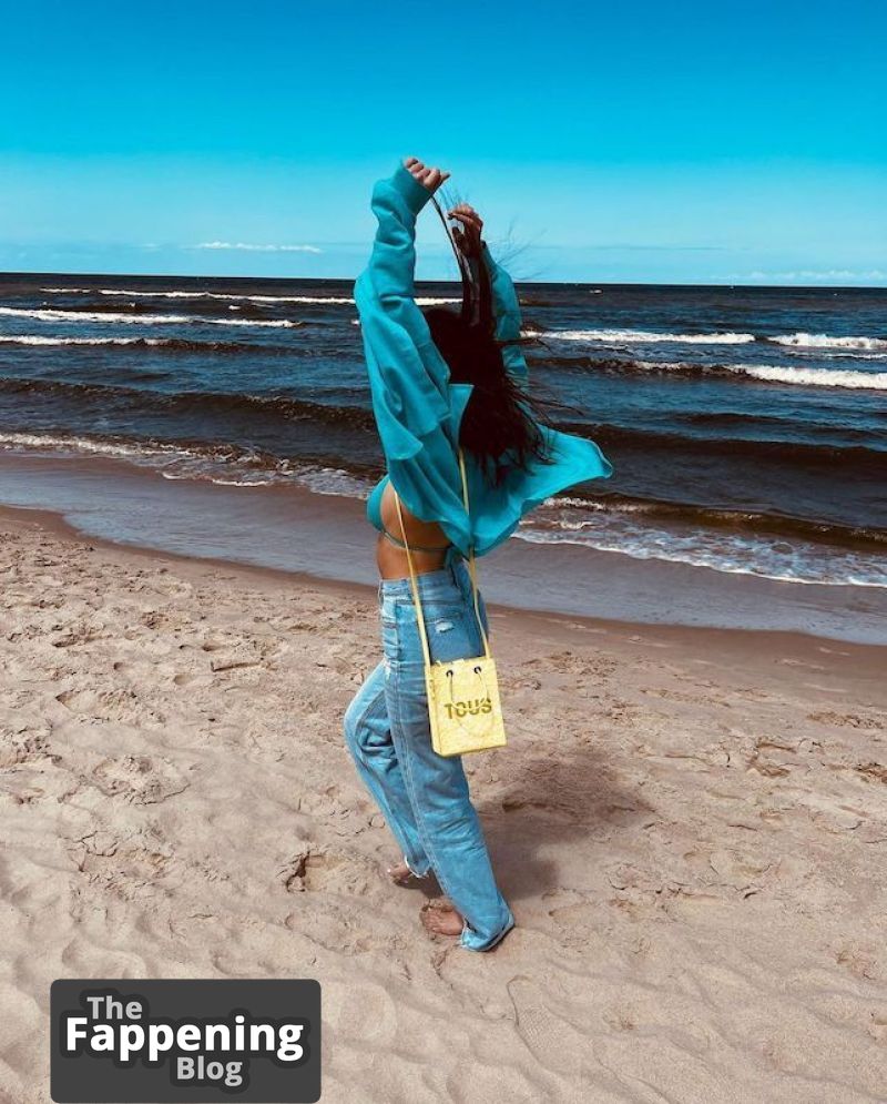 Roksana Wegiel está arrasando no visual sem sutiã, exibindo seu decote impressionante com seus grandes e chamativos seios, um bumbum quente e tentador, pernas que parecem não ter fim e seu corpo adolescente em forma, usando biquínis fio dental e roupas reveladoras, tudo compartilhado em suas postagens nas redes sociais.