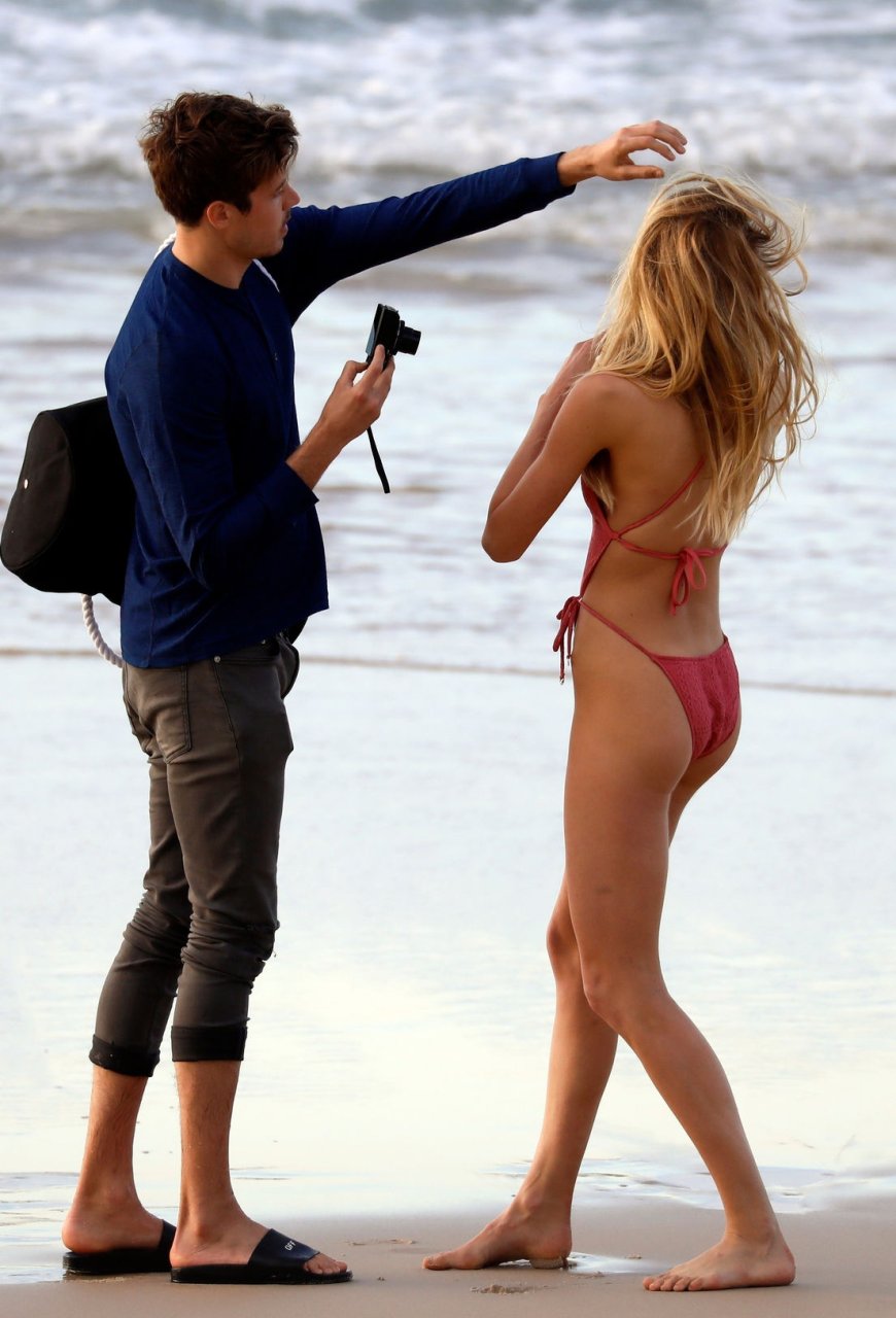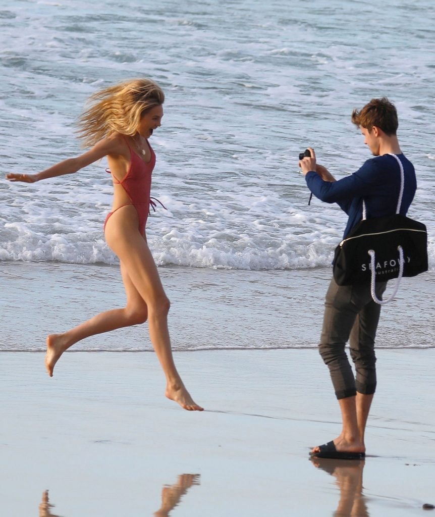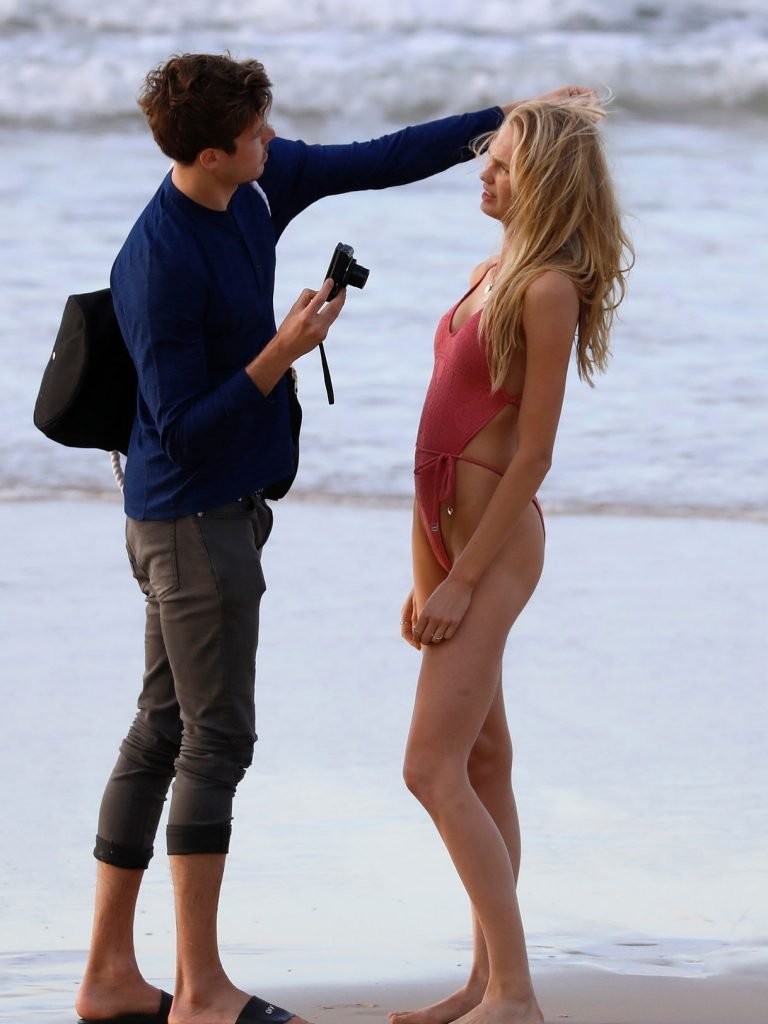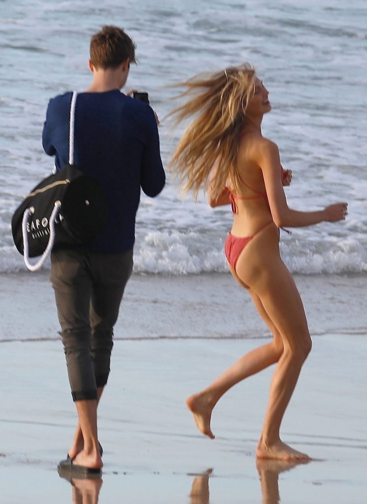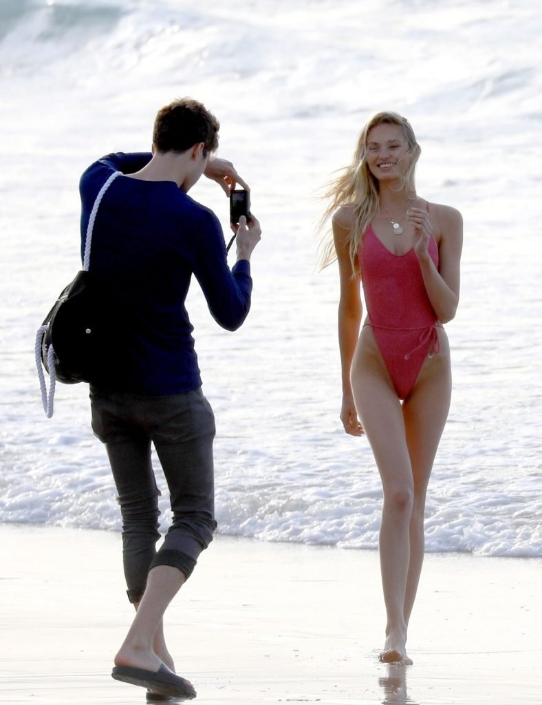 A modelo holandesa de 22 anos da Victoria’s Secret e seu namorado foram à praia onde a magra gata posou com um maiô sexy para o seu namorado.