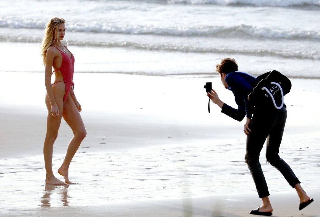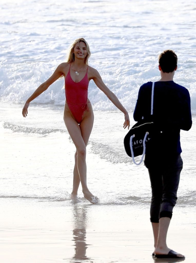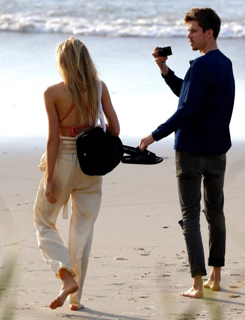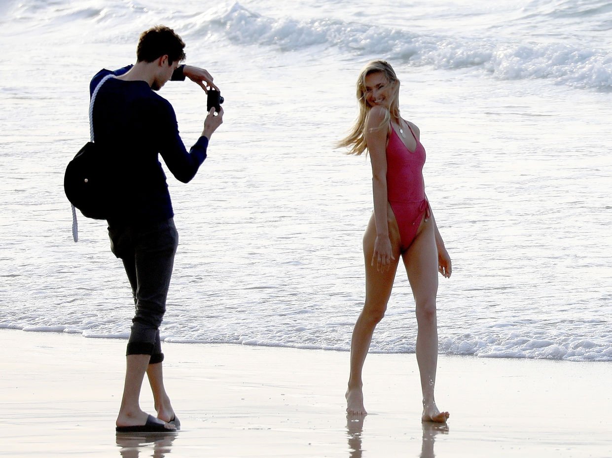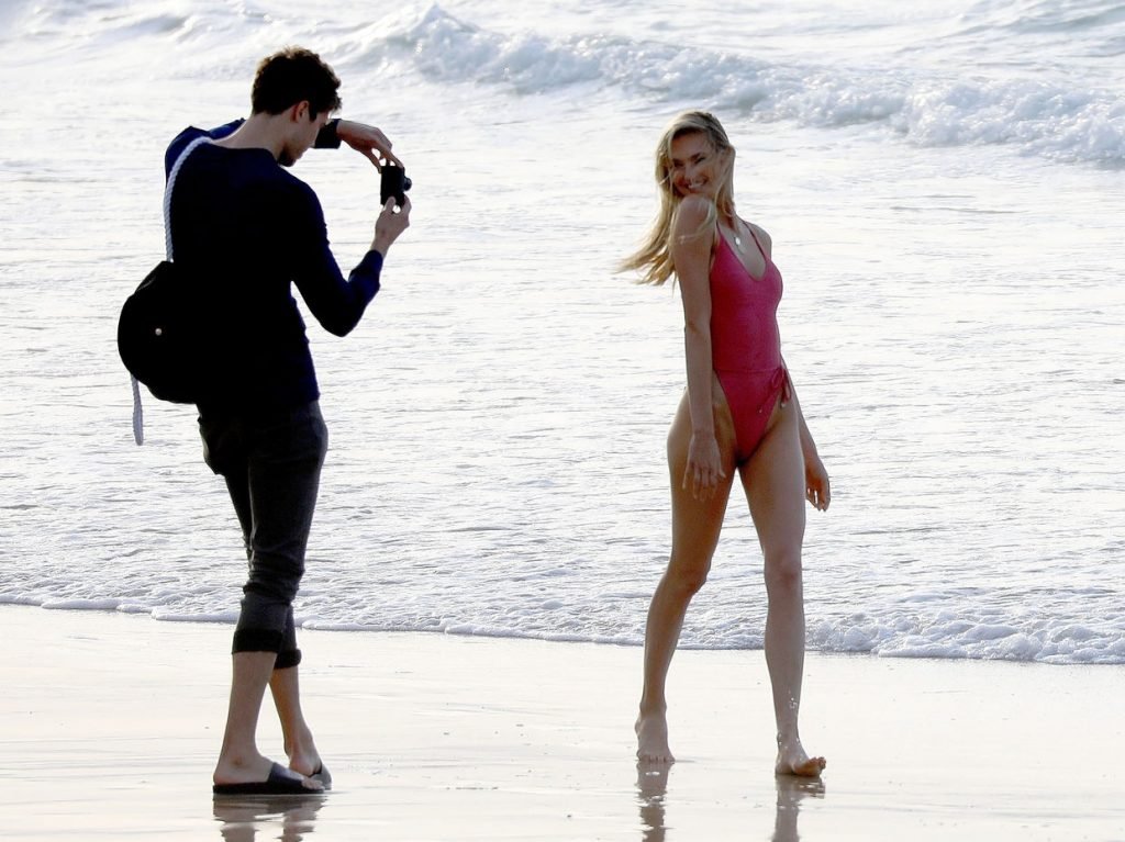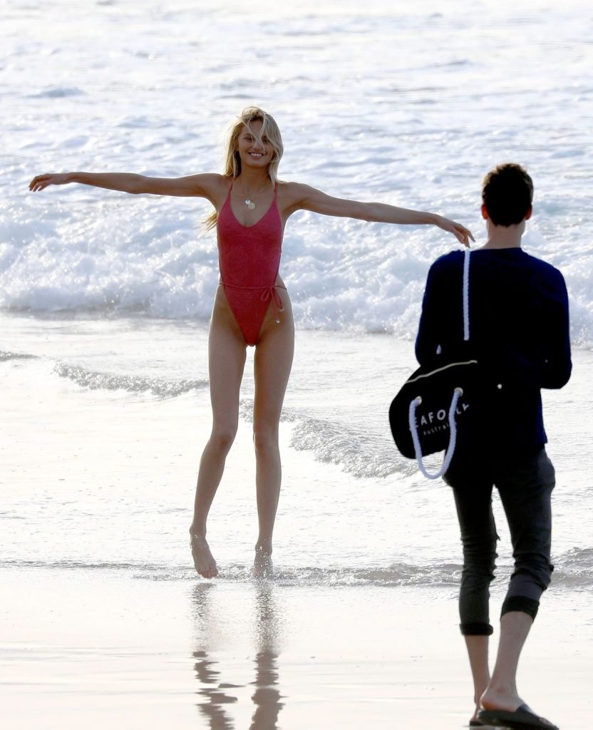 A modelo holandesa de 22 anos da Victoria’s Secret e seu namorado foram à praia onde a magra gata posou com um maiô sexy para o seu namorado.