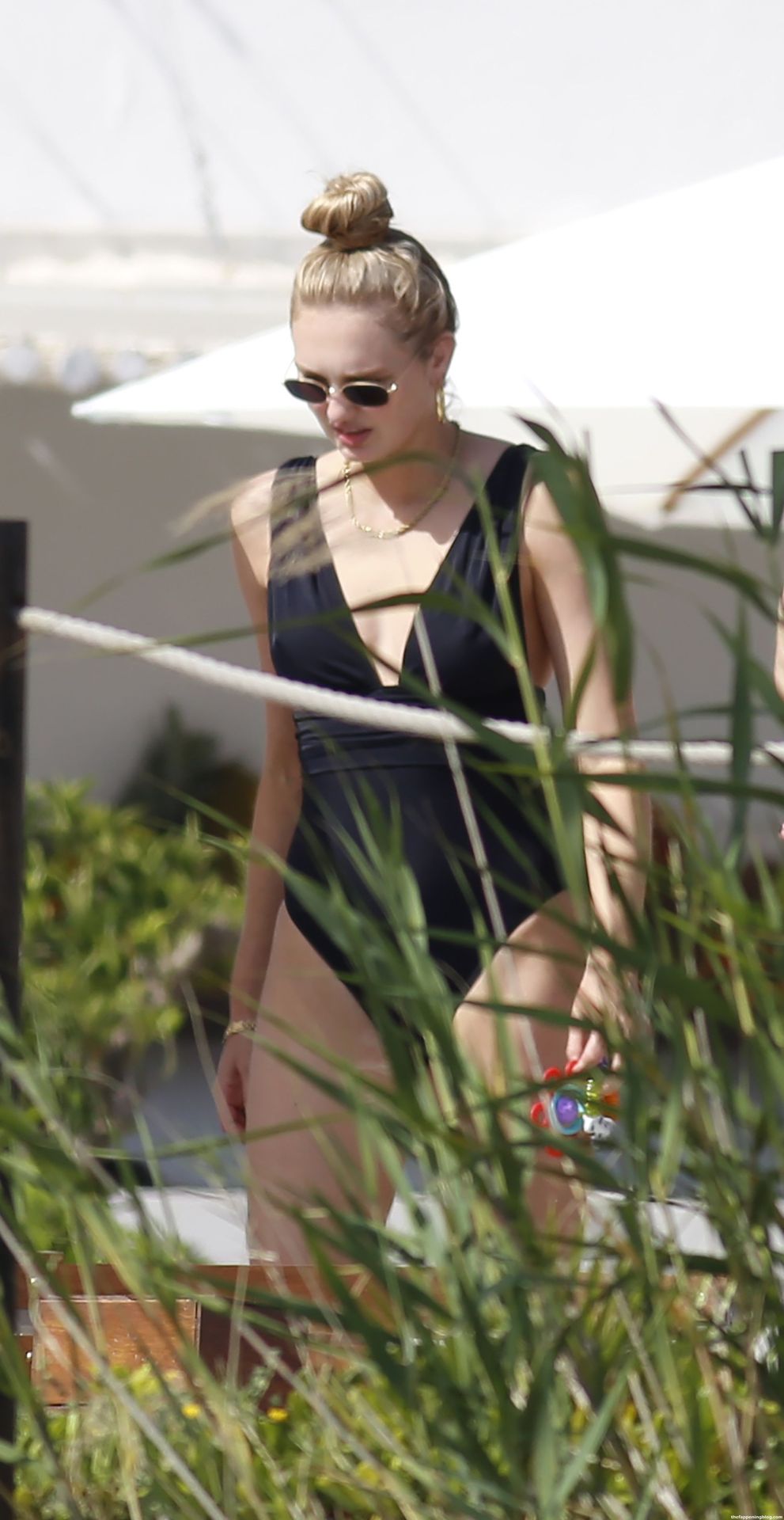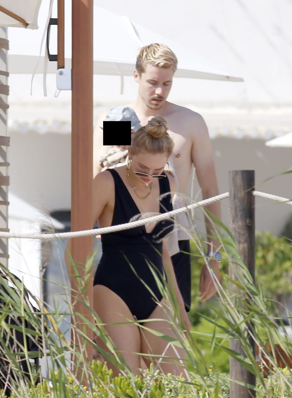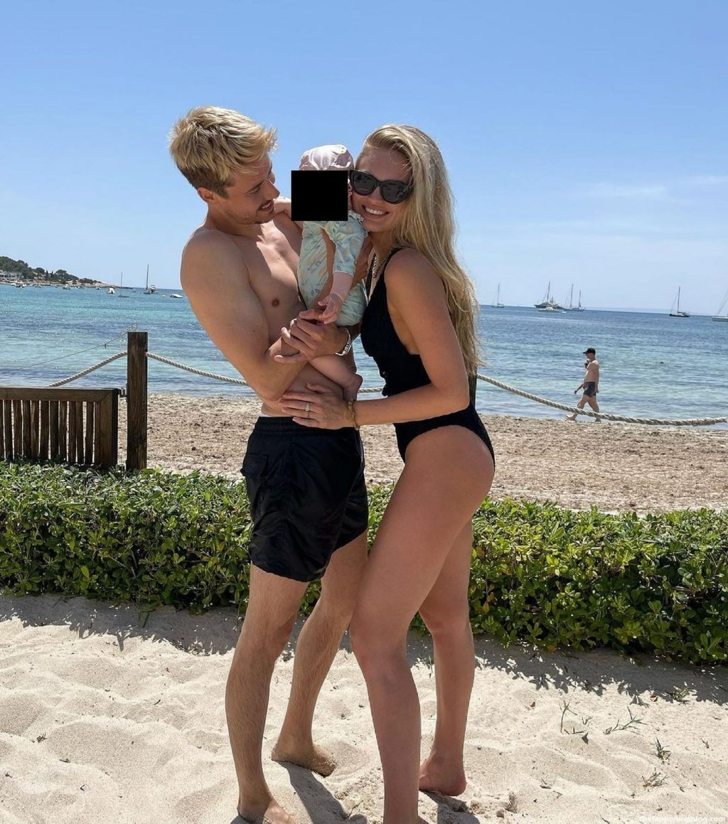 Victoria’s Secret Angel Romee Strijd exibe seu corpo incrível pós-bebê em um maiô preto durante férias em família em Ibiza no sábado, na companhia de seu bebê e de seu marido, Laurens Van Leuween.
