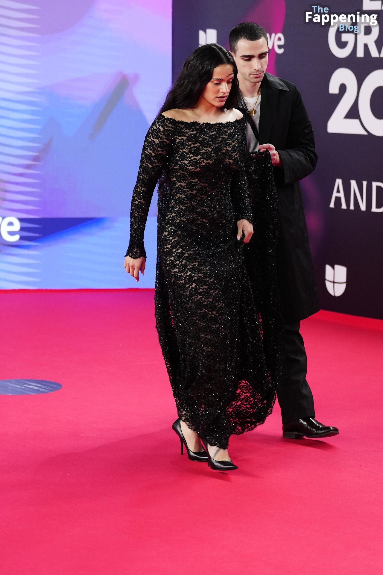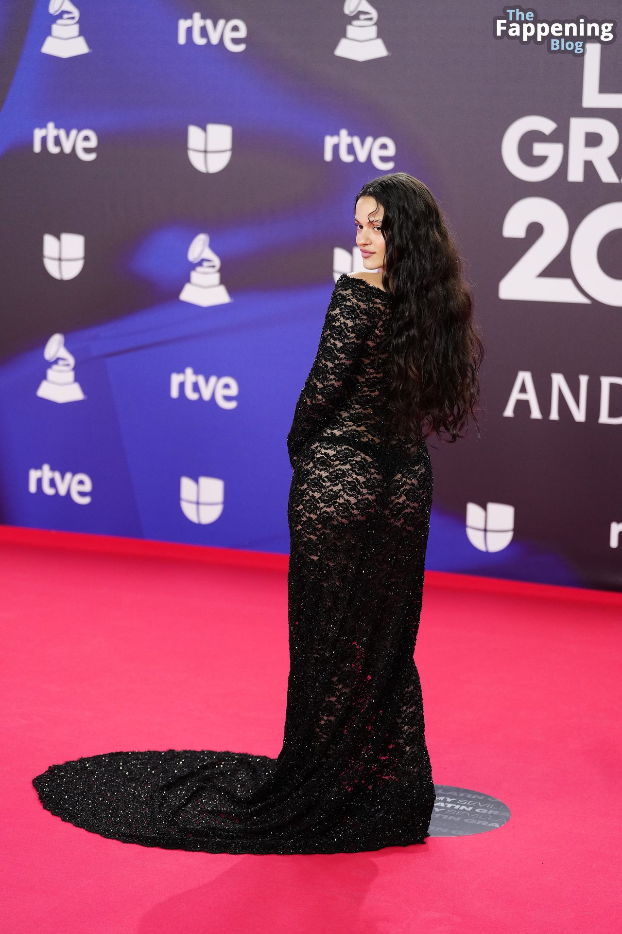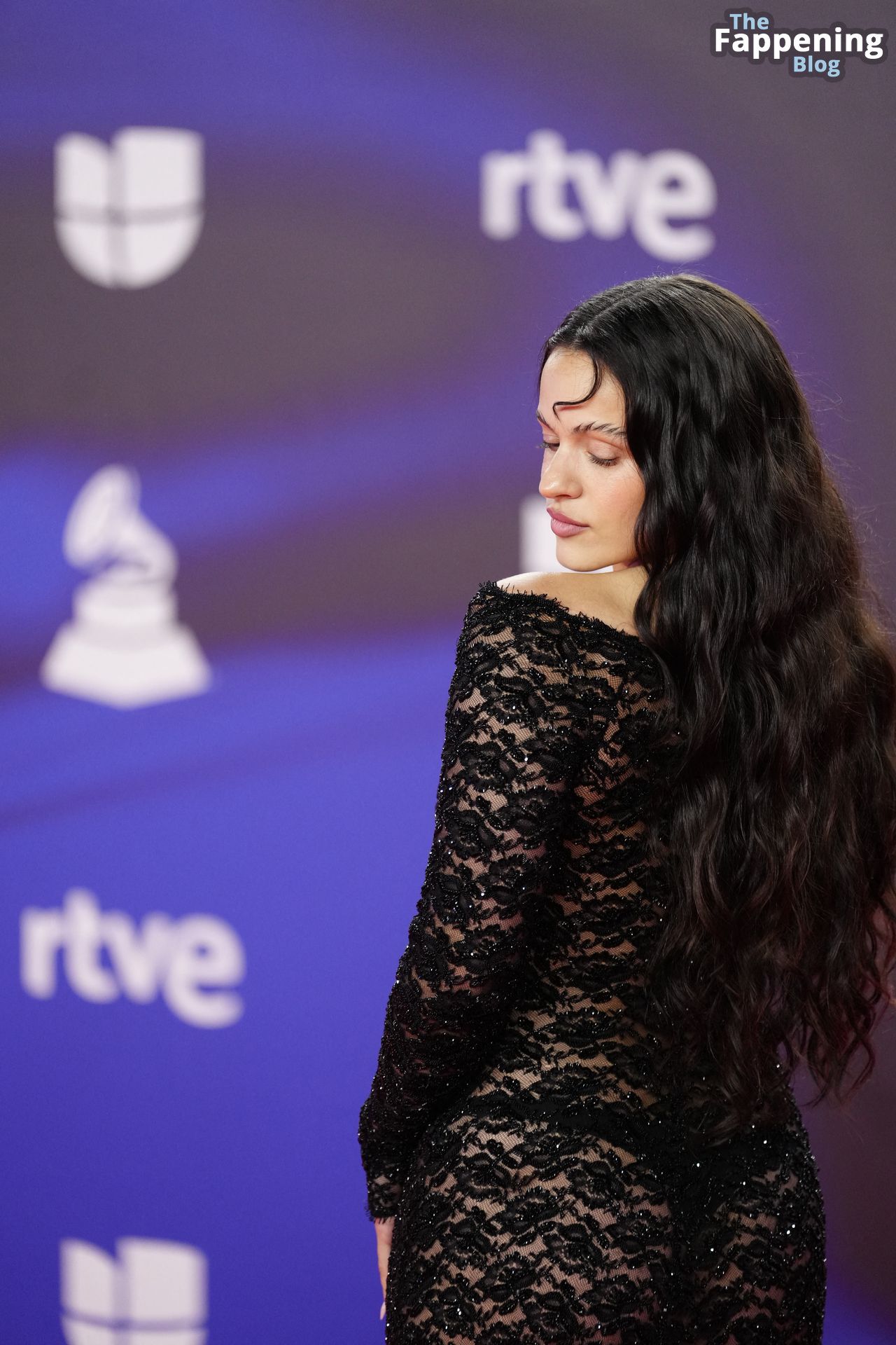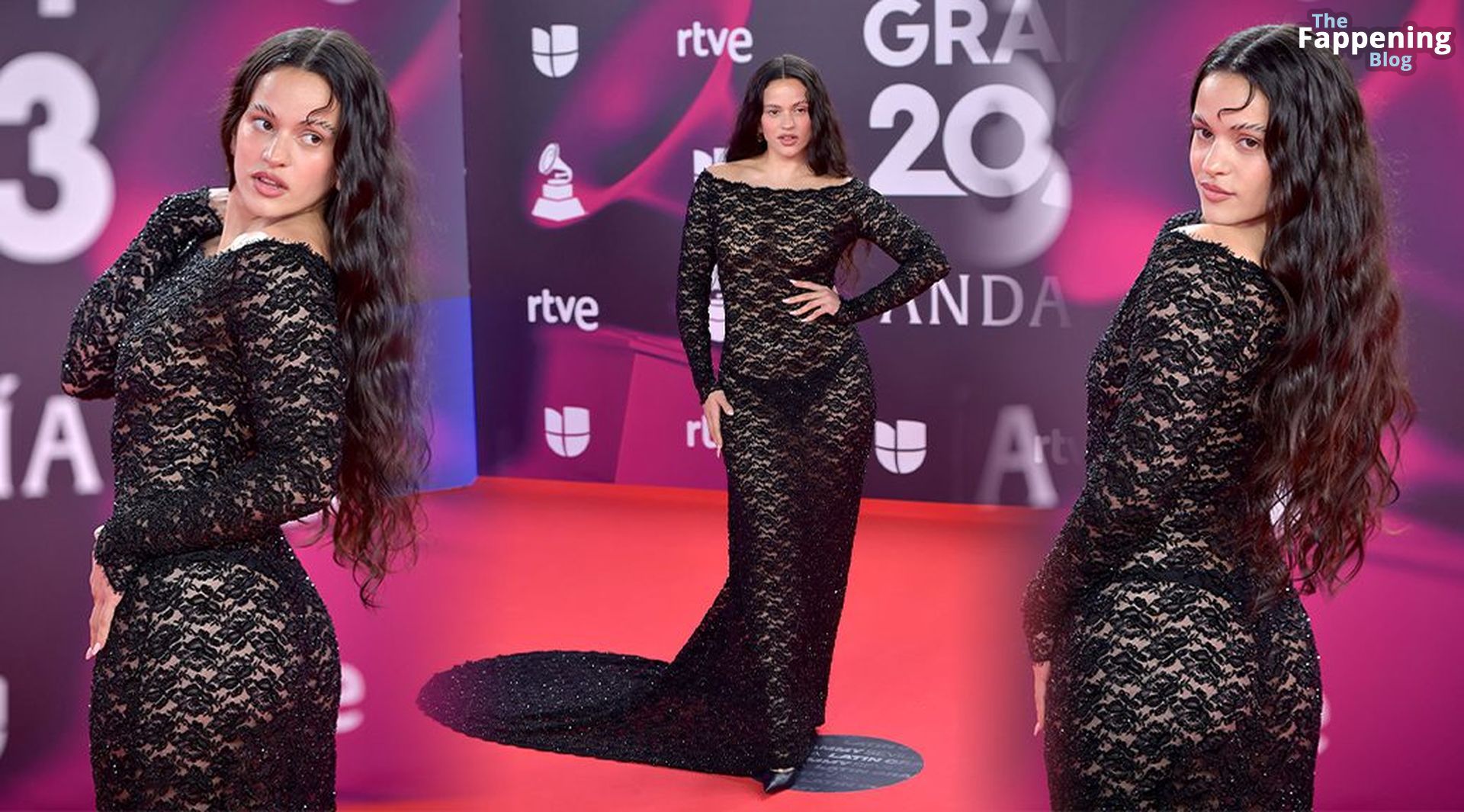 Prepare-se para ficar impressionado com o estilo arrasador de Rosalia no Latin GRAMMY Awards em Sevilha. Ela está deslumbrante com um vestido preto transparente que revela uma calcinha preta sexy e um bumbum absolutamente incrível. O photocall de entrada no evento estava cheio de celebridades mostrando sua presença.