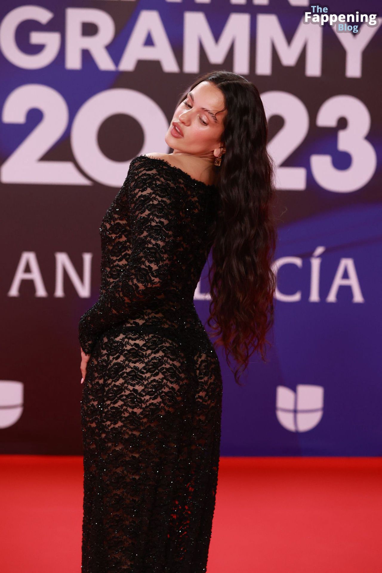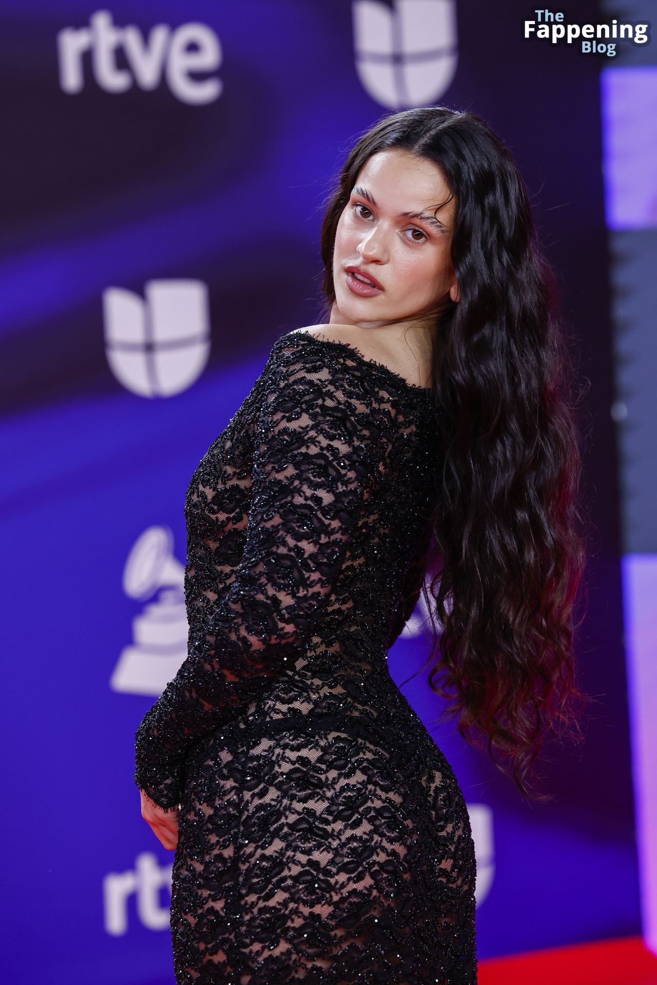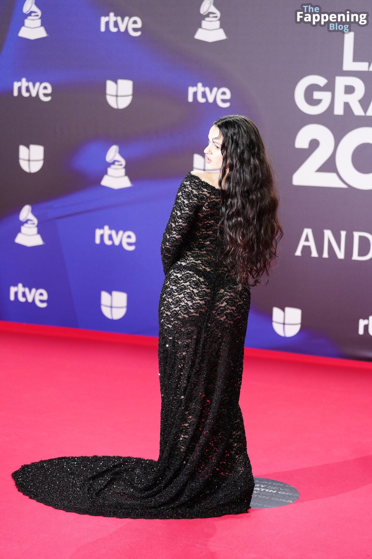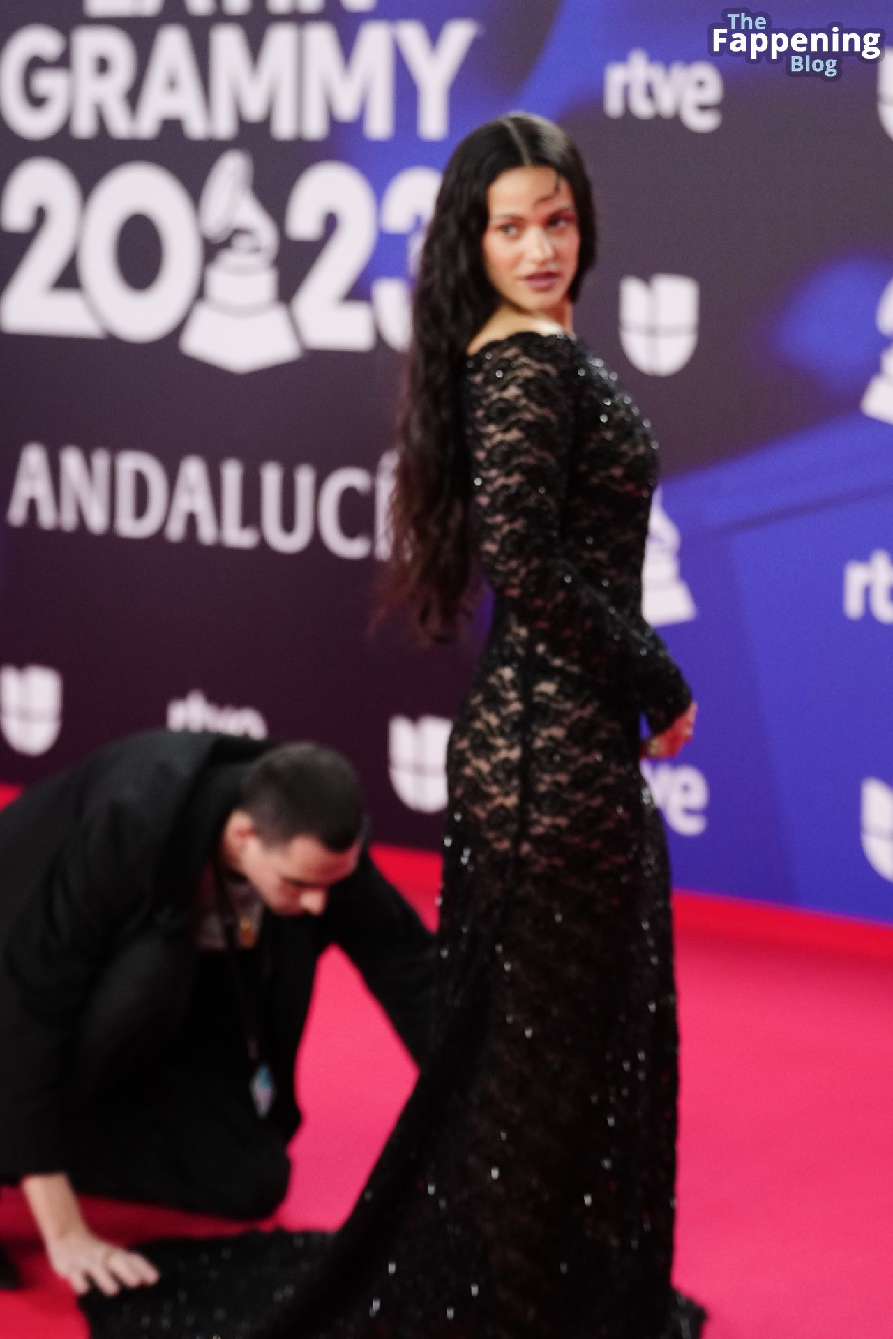 Prepare-se para ficar impressionado com o estilo arrasador de Rosalia no Latin GRAMMY Awards em Sevilha. Ela está deslumbrante com um vestido preto transparente que revela uma calcinha preta sexy e um bumbum absolutamente incrível. O photocall de entrada no evento estava cheio de celebridades mostrando sua presença.