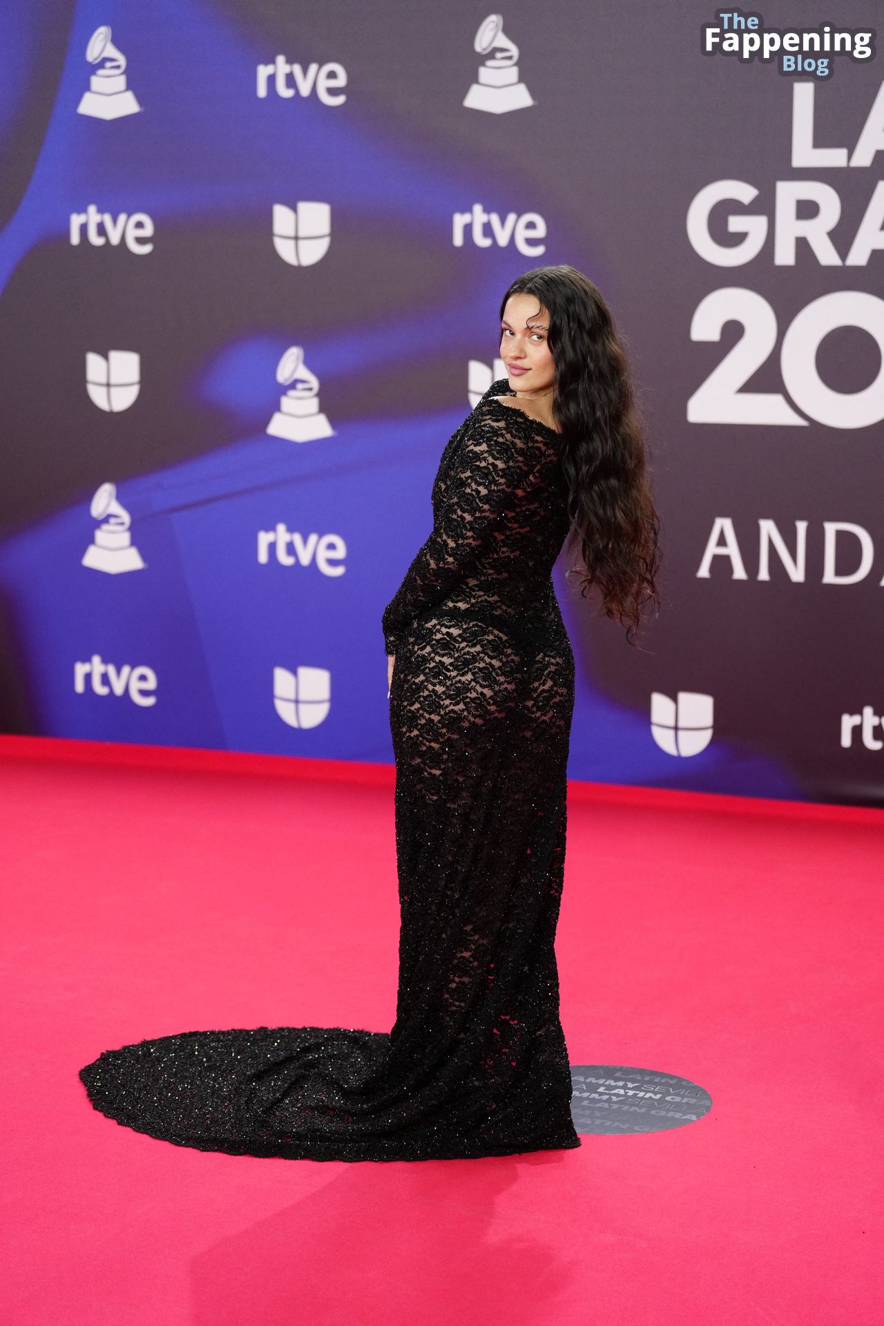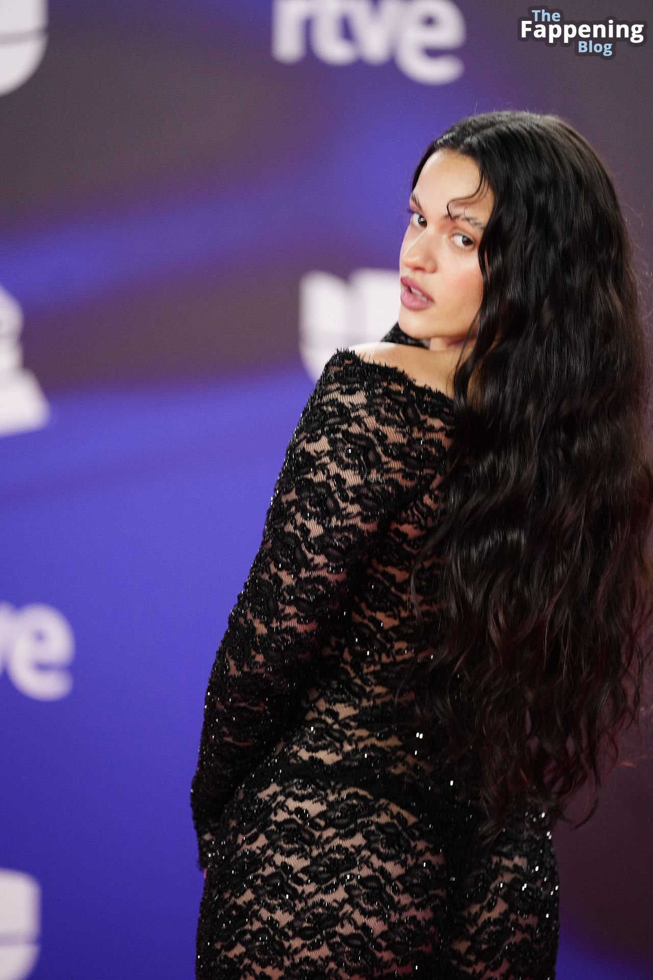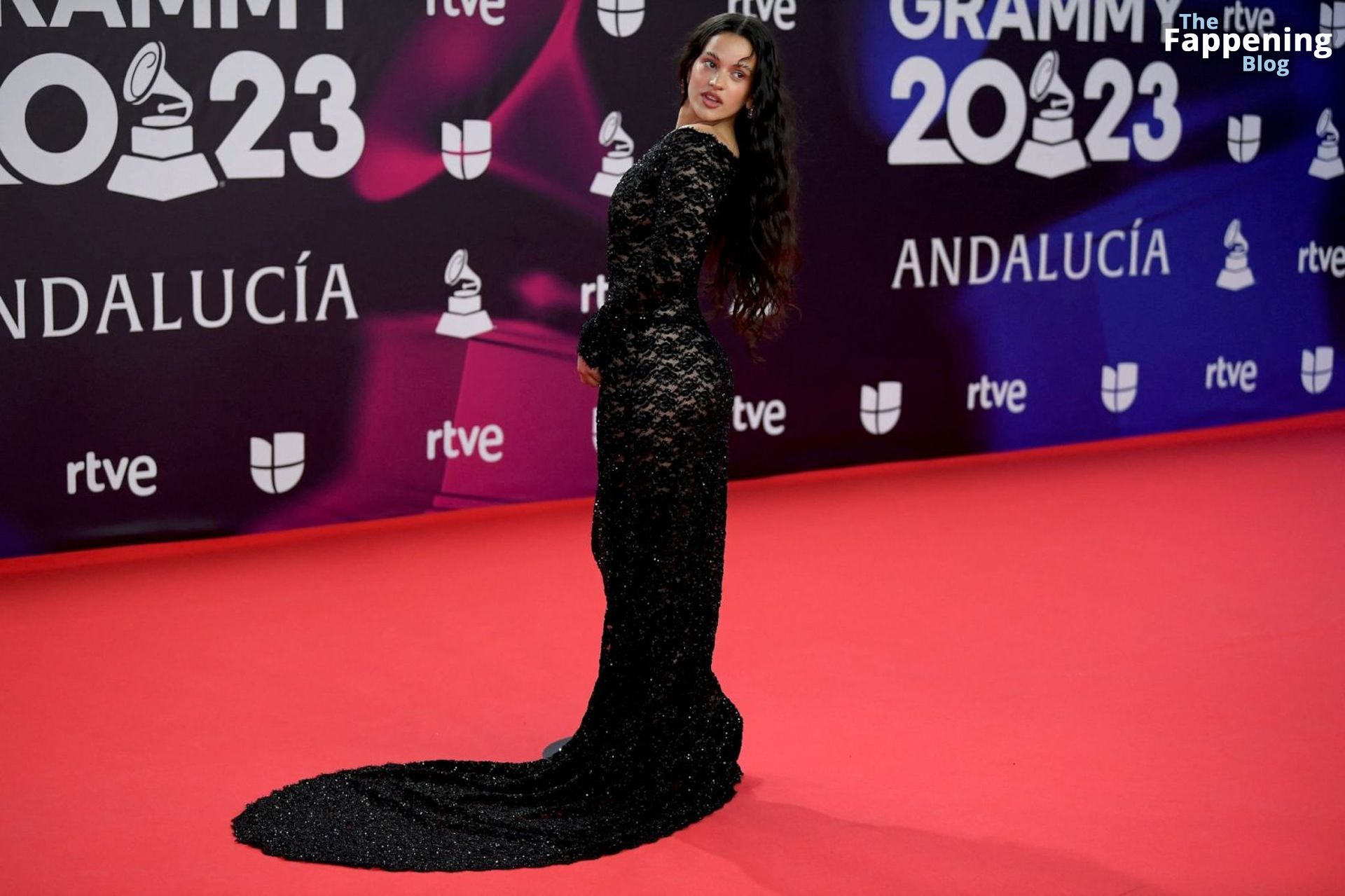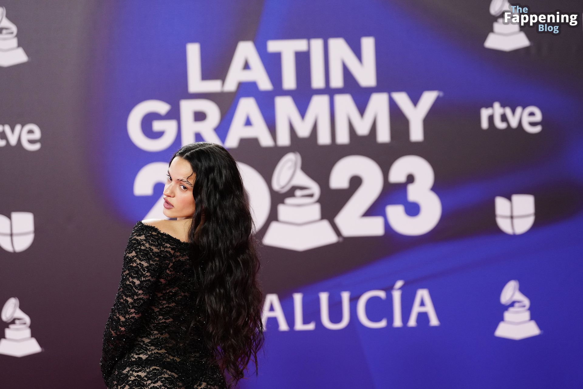 Prepare-se para ficar impressionado com o estilo arrasador de Rosalia no Latin GRAMMY Awards em Sevilha. Ela está deslumbrante com um vestido preto transparente que revela uma calcinha preta sexy e um bumbum absolutamente incrível. O photocall de entrada no evento estava cheio de celebridades mostrando sua presença.