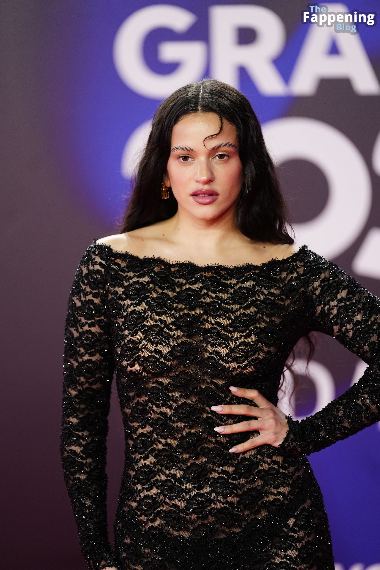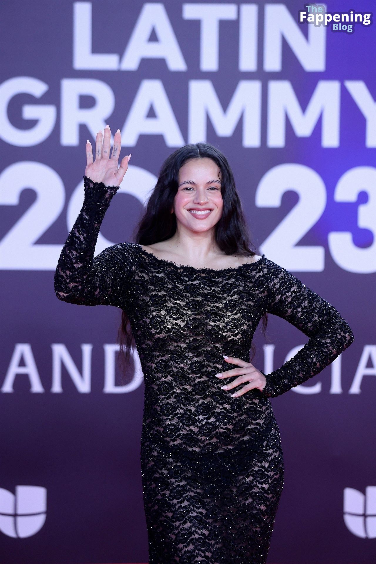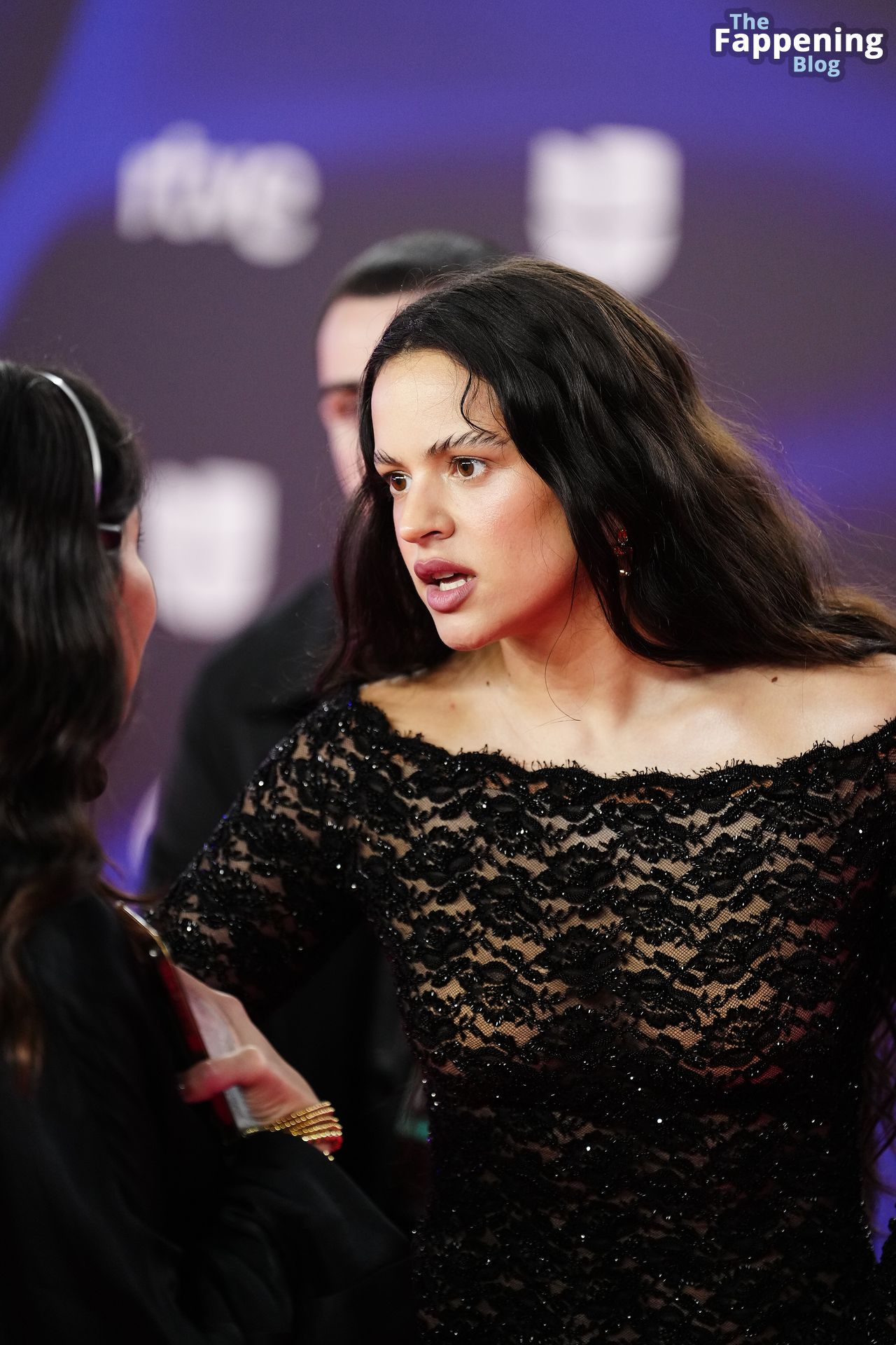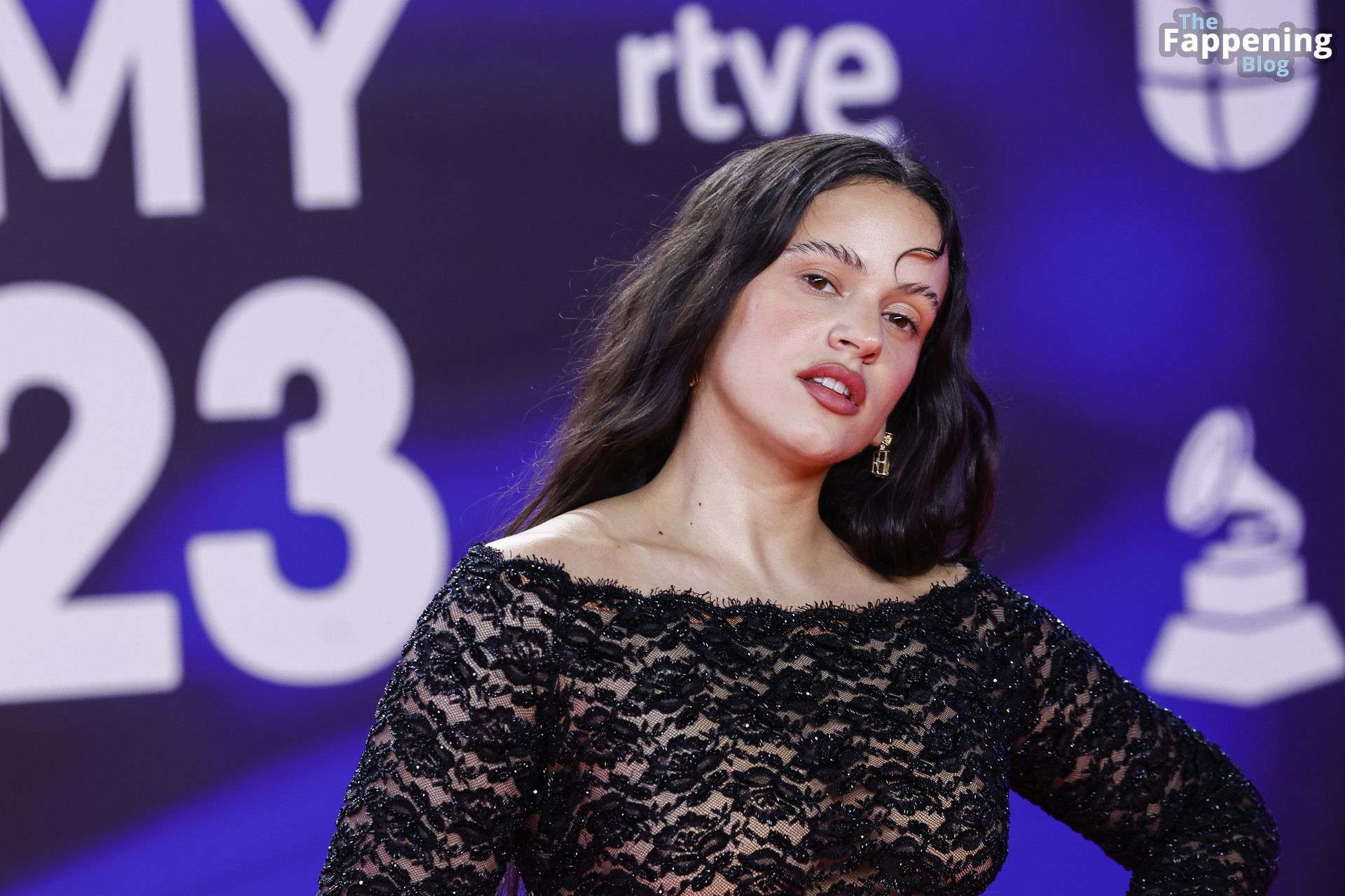 Prepare-se para ficar impressionado com o estilo arrasador de Rosalia no Latin GRAMMY Awards em Sevilha. Ela está deslumbrante com um vestido preto transparente que revela uma calcinha preta sexy e um bumbum absolutamente incrível. O photocall de entrada no evento estava cheio de celebridades mostrando sua presença.