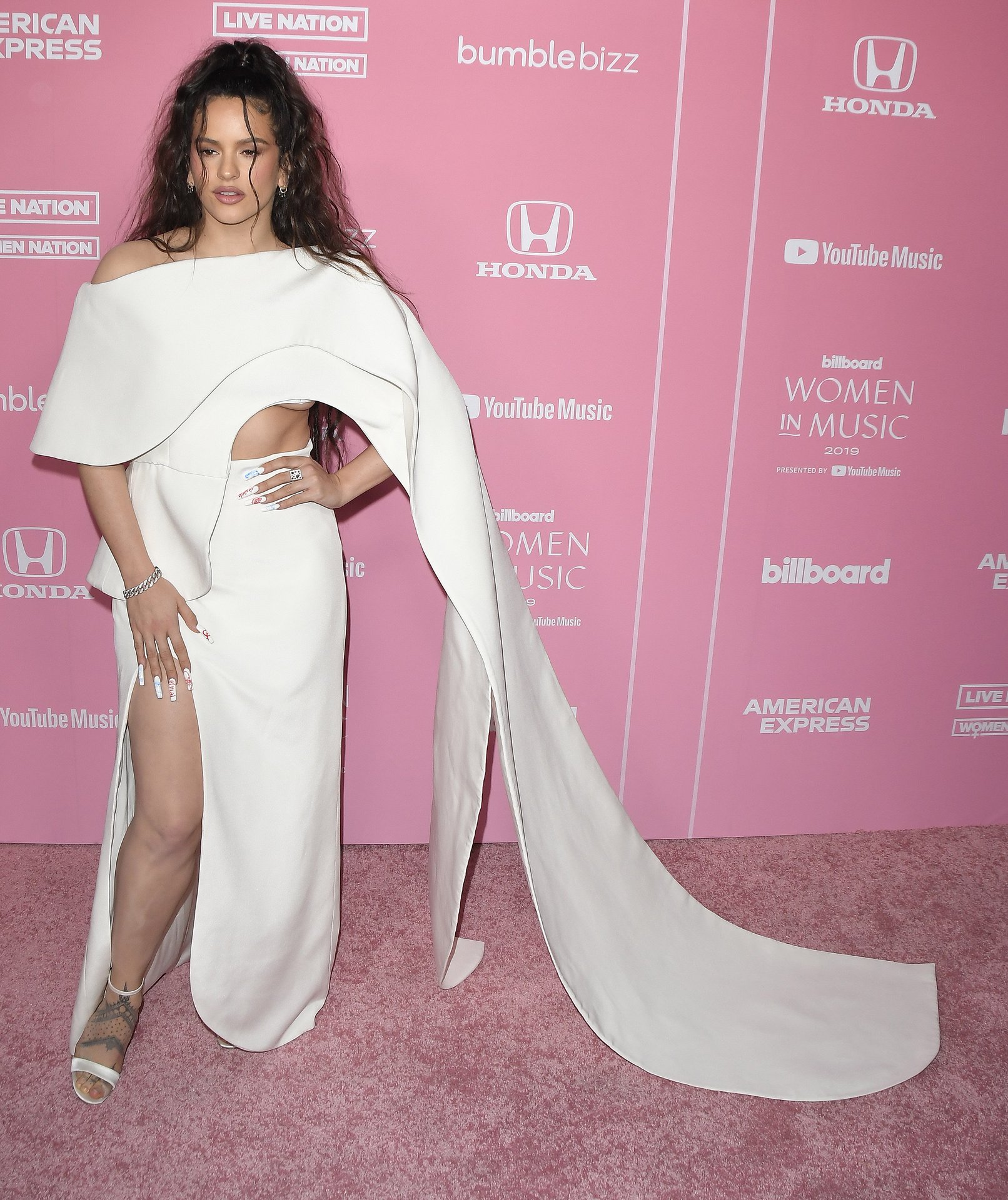 Rosalía (26) chega ao tapete vermelho para o evento “Billboard Women in Music” em Los Angeles, 12/12/2019.