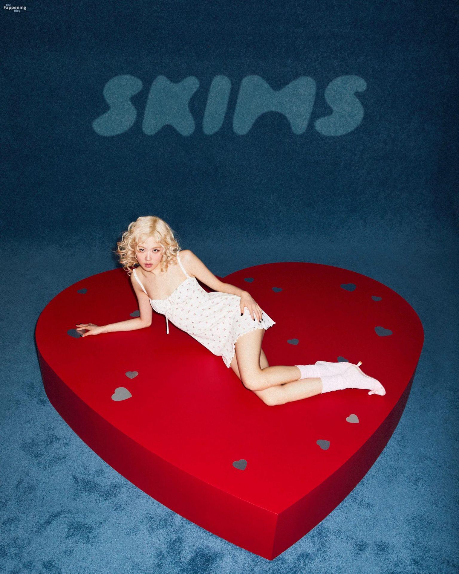 Rosé está na coleção de Dia dos Namorados da Skims. A cantora neozelandesa-sul-coreana exibe suas pernas sensuais e sua bela silhueta esguia.
