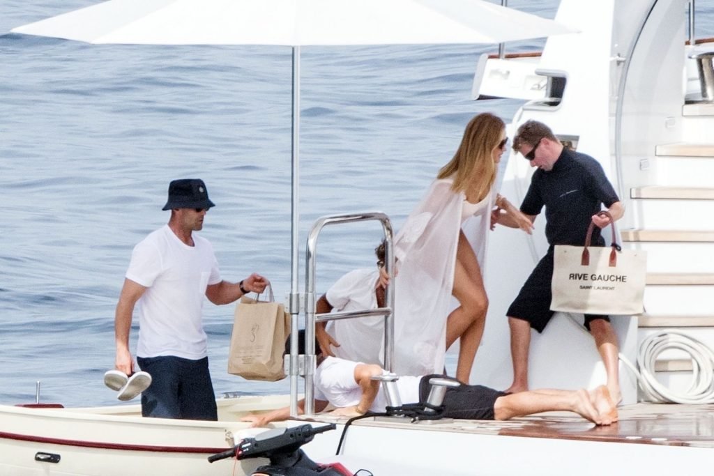 Modelo e atriz sexy Rosie Huntington-Whiteley aproveita férias em família na ilha italiana de Capri com seu marido herói de ação Jason Statham e seu filho Jack, 13/06/2019.