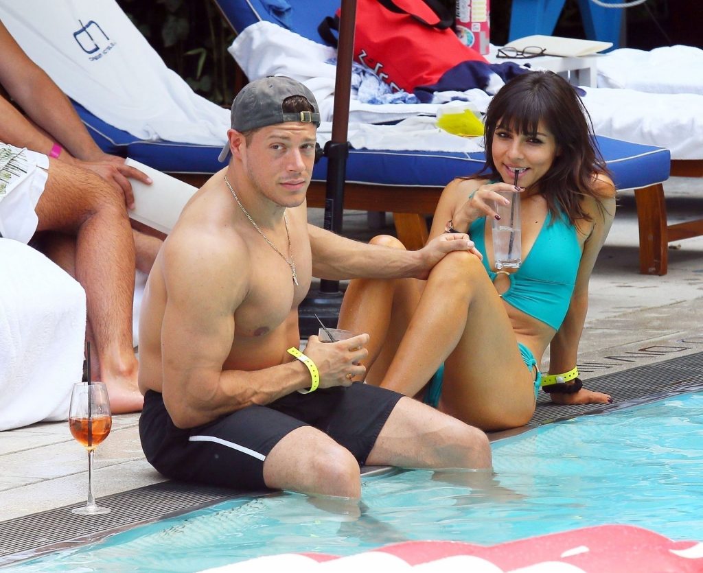 Roxanne e Jason são vistos na piscina de um hotel em Miami, onde estão atualmente comemorando o noivado, 01/11/2019. Uma fonte disse ao Sun Online. “Jason recebeu a bênção da mãe de Roxanne para propor, e ele recentemente fez a pergunta. Jason tem sido uma rocha para Roxanne desde que estão juntos”.