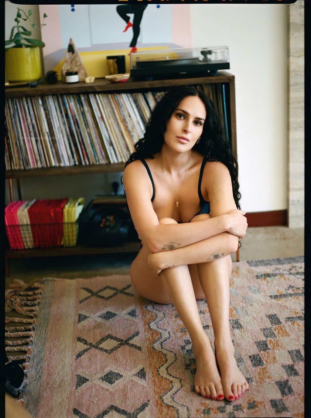 Atriz Rumer Willis está deslumbrante em lingerie amarela e preta em um ensaio fotográfico para a Revista CUUP #62 de 2021.