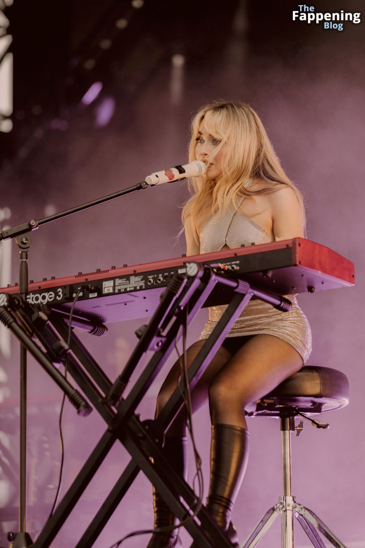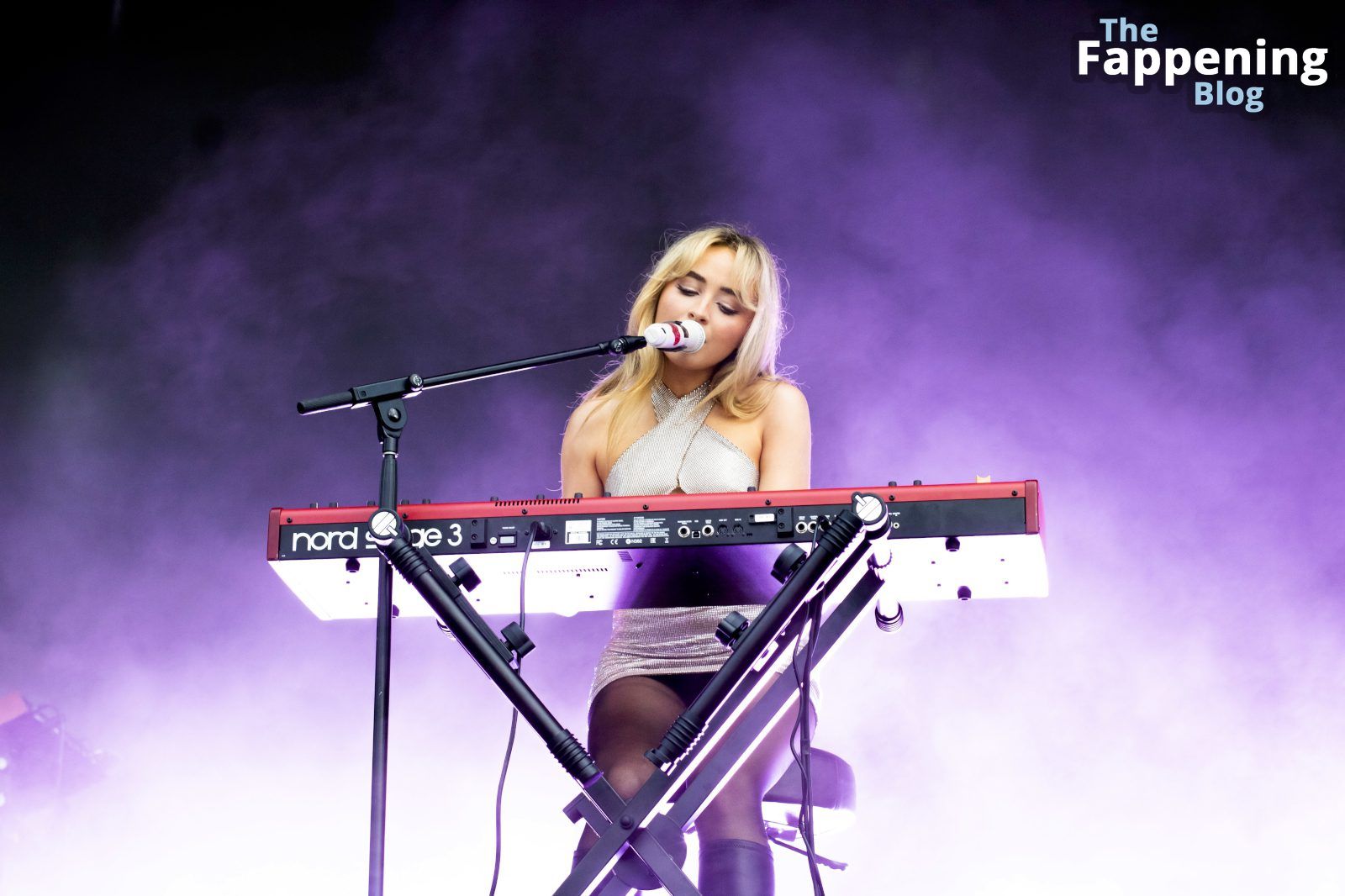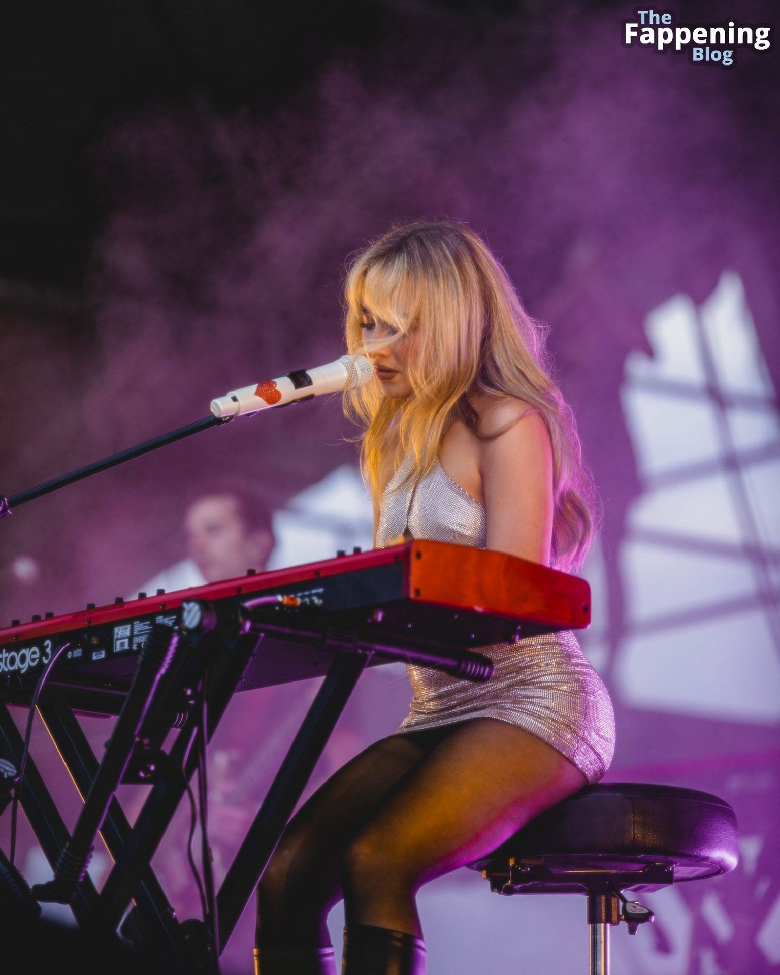 Confira Sabrina Carpenter fazendo uma aparição de tirar o fôlego no Hangout Festival! Essa gata tem todos os olhos voltados para suas pernas impecáveis, que ela está exibindo em uma minissaia tentadora. E deixe-nos dizer, o charme sedutor de suas pernas vestidas com meia-calça vai deixar você querendo mais – ela arrasa!