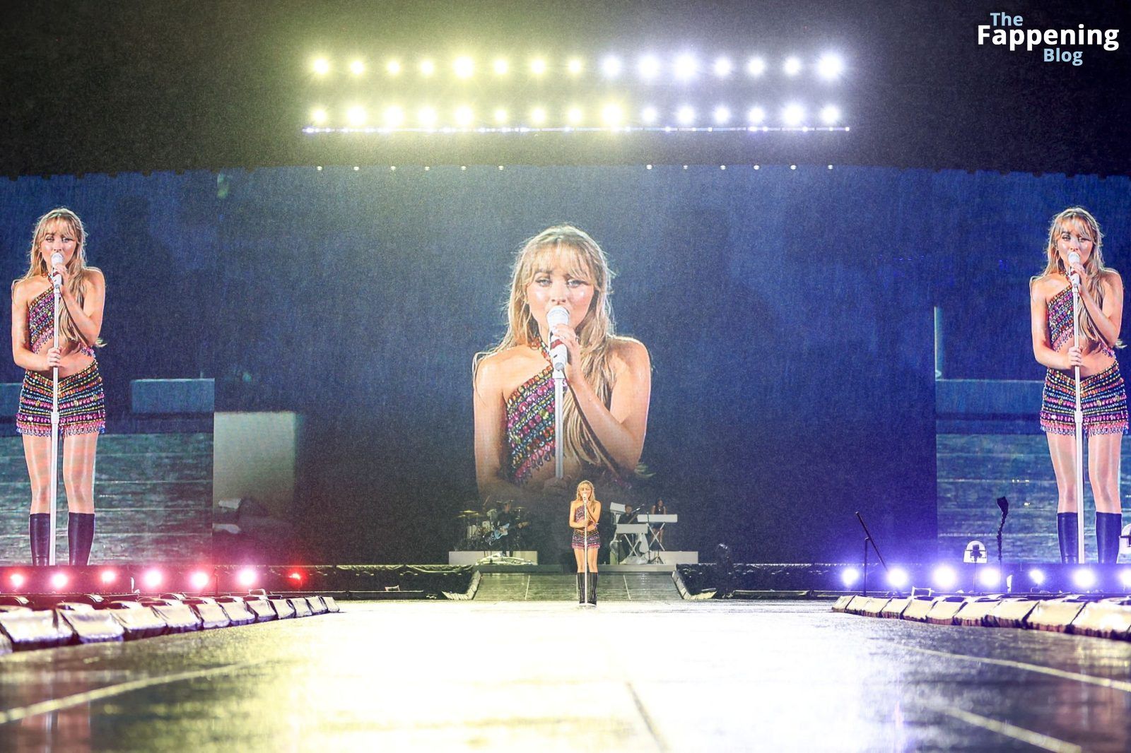 A apresentação de Sabrina Carpenter em São Paulo eleva o glamour a um novo nível – Ela está arrasando com uma minissaia matadora e botas, exibindo seu corpo deslumbrante.