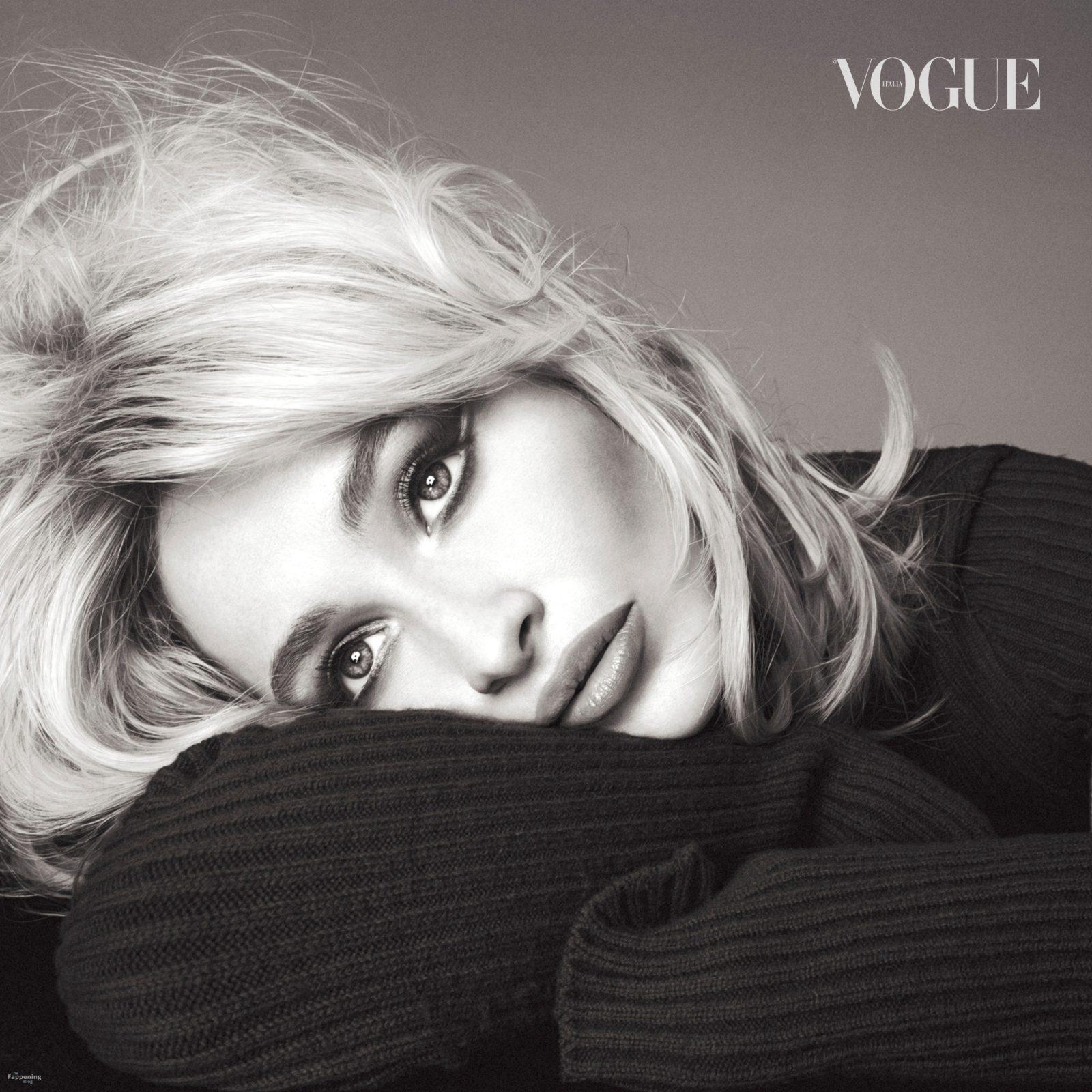 A cantora Sabrina Carpenter exibe suas pernas e lingerie na edição de outubro da Vogue Italia.