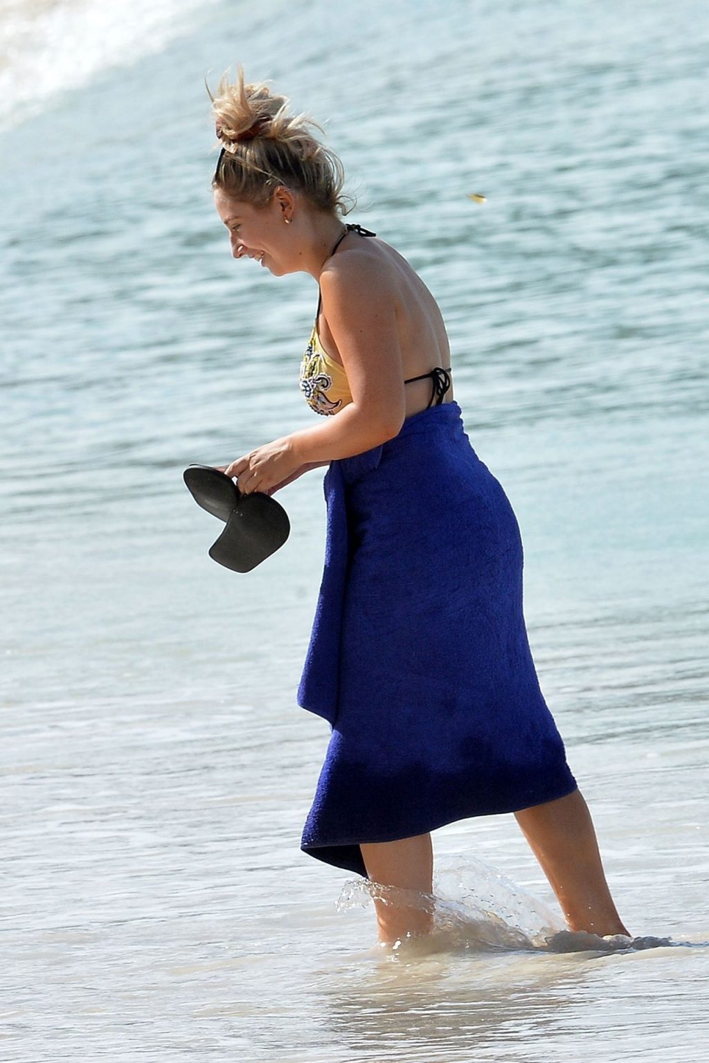 “Concorrente do “Strictly Come Dancing”, a blogueira voluptuosa Saffron Barker e sua amiga, Anastasia Kingsnorth, foram fotografadas desfrutando de um passeio na praia durante as férias em Barbados, 28/12/2019.