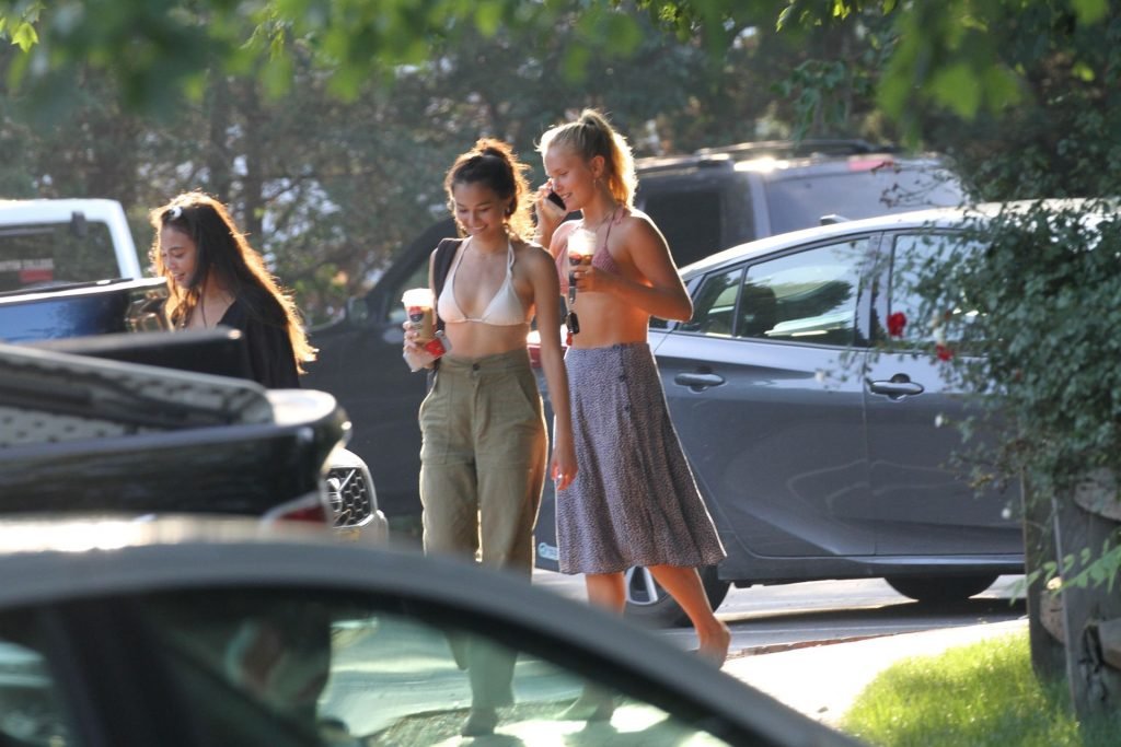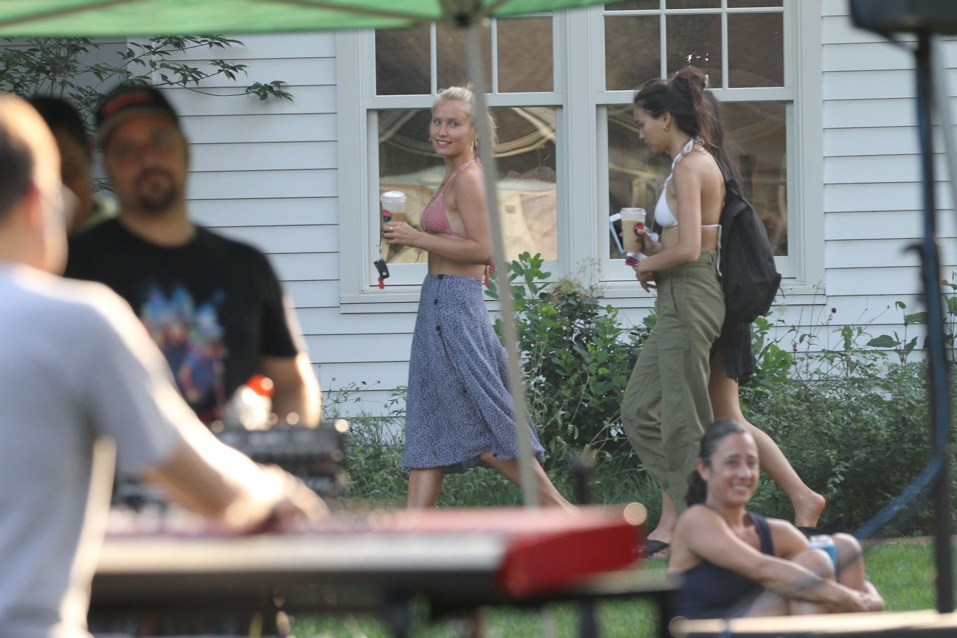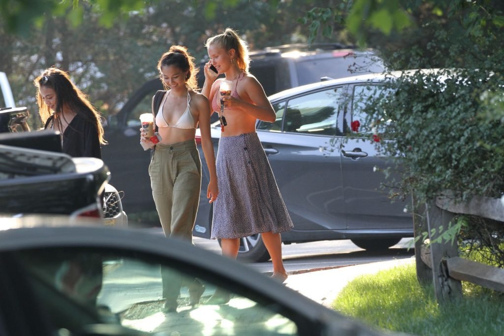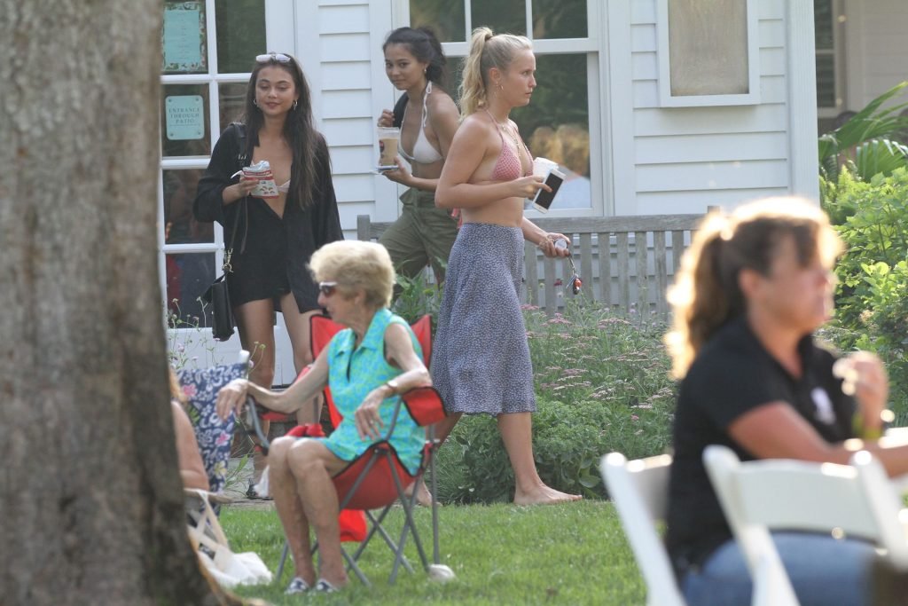Sailor Brinkley usa um top de biquíni e um vestido azul enquanto estava nos Hamptons no fim de semana com amigos, 22/07/2019.