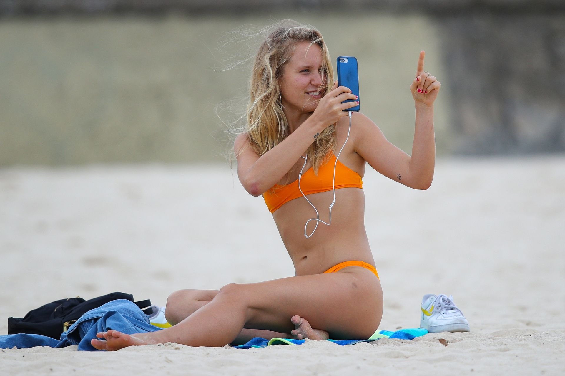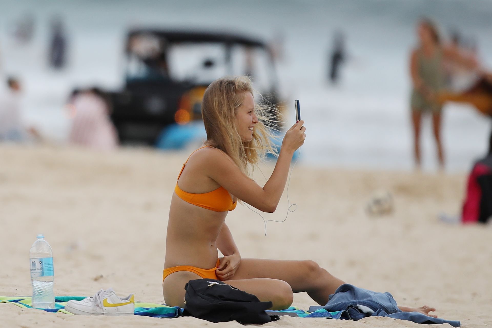 Sailor Brinkley foi fotografada tomando sol em seu biquíni laranja vibrante na Bondi Beach em Sydney, 01/08/2019. A filha da famosa modelo Christie Brinkley está na cidade para discutir contratos de modelagem. Sailor Brinkley Cook é uma modelo americana de 20 anos da IMG Models.