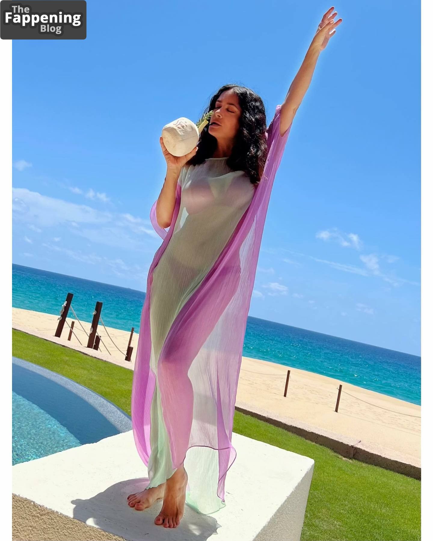 Confira a última seleção de fotos sensuais de Salma Hayek nas redes sociais e paparazzi, exibindo sua figura e busto deslumbrantes.