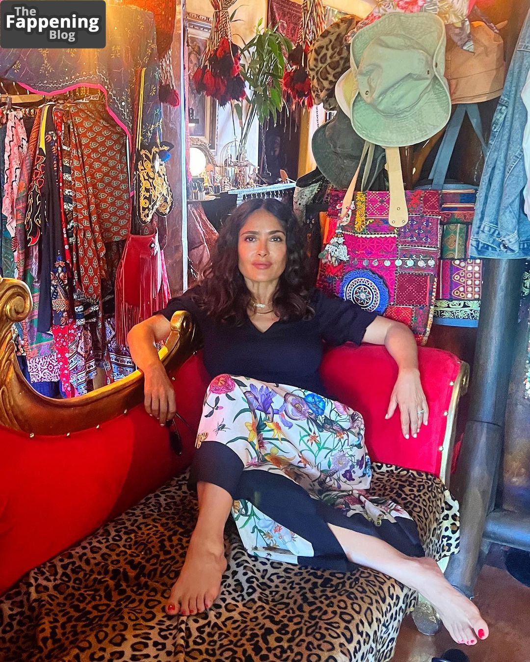 Salma Hayek exibe suas curvas e seus famosos seios grandes nas fotos de paparazzi e redes sociais abaixo.
