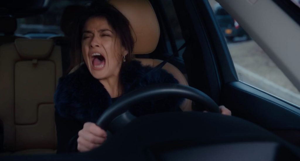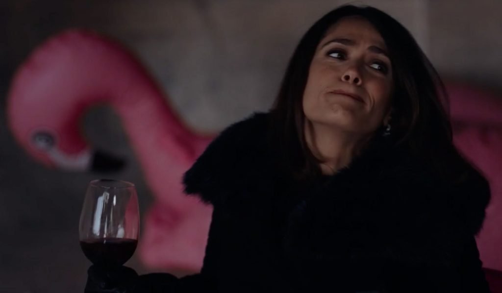 Hayek, 52, pula quando ele a vê usando o traje sedutor. O casal interpreta Frank e Nancy Teagarten, um casal casado que enfrenta problemas financeiros secretos no filme, previsto para lançamento nos EUA em abril de 2019.