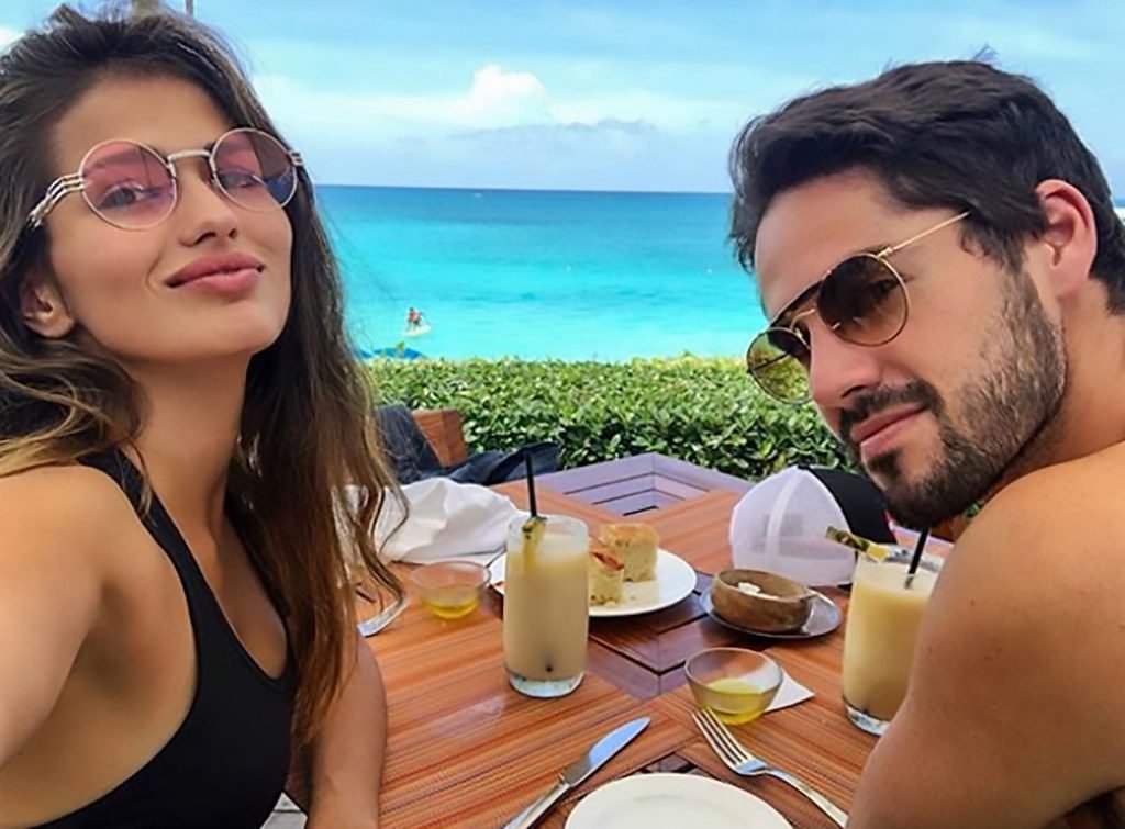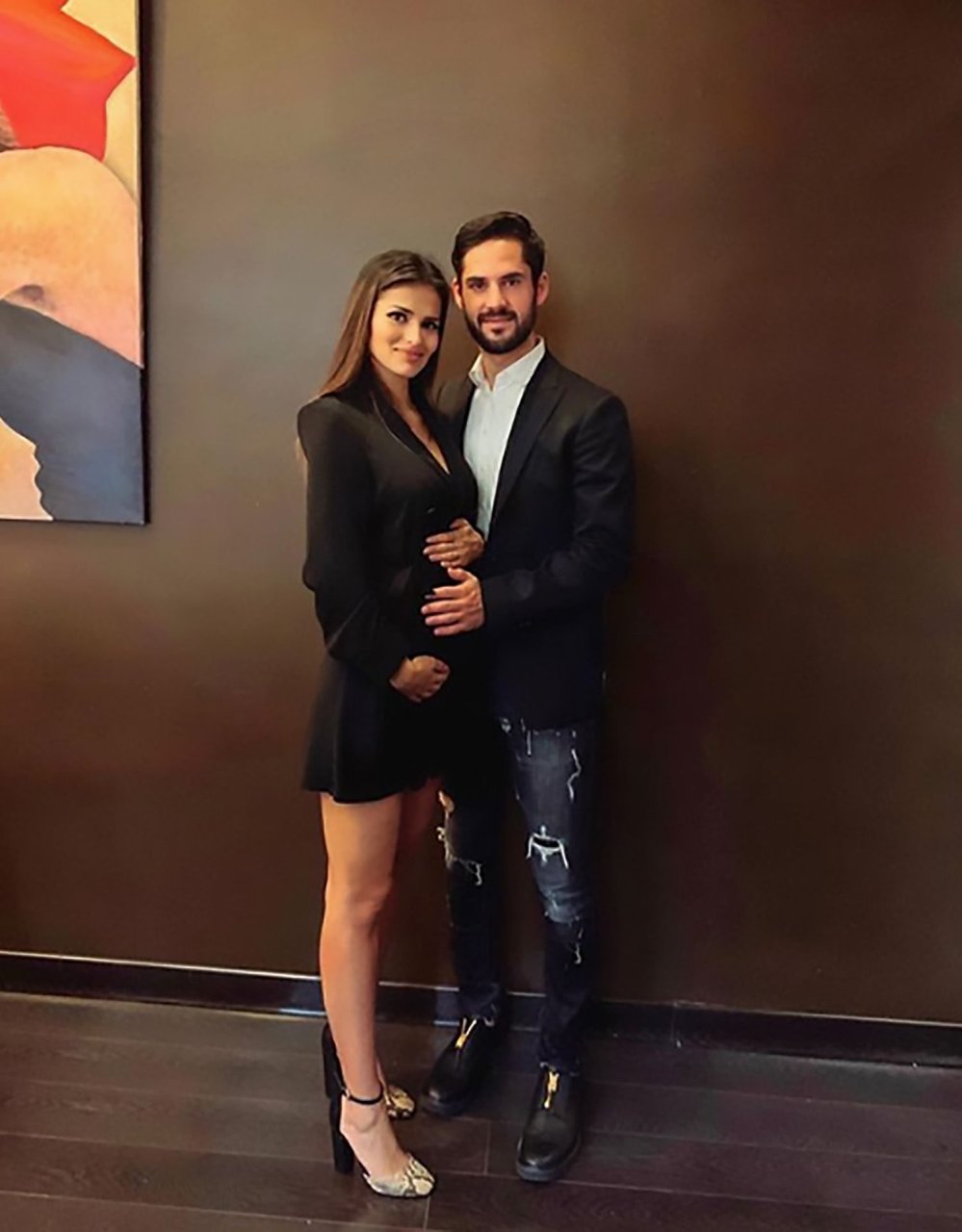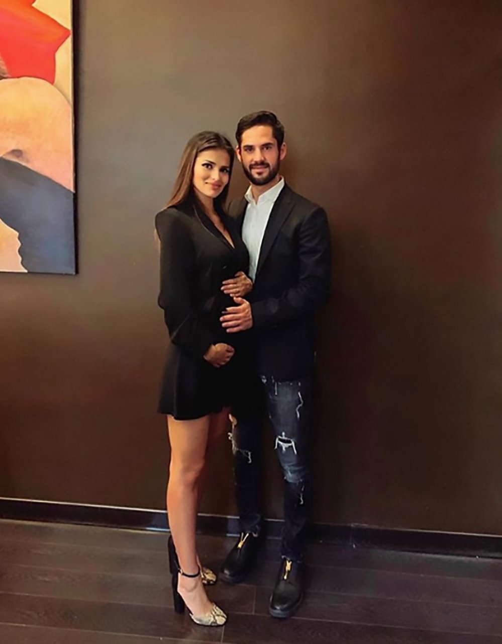 A modelo/atriz e WAG do meio-campista do Real Madrid, Isco, Sara Salamo, exibiu sua barriga de grávida em uma foto sensual de lingerie.