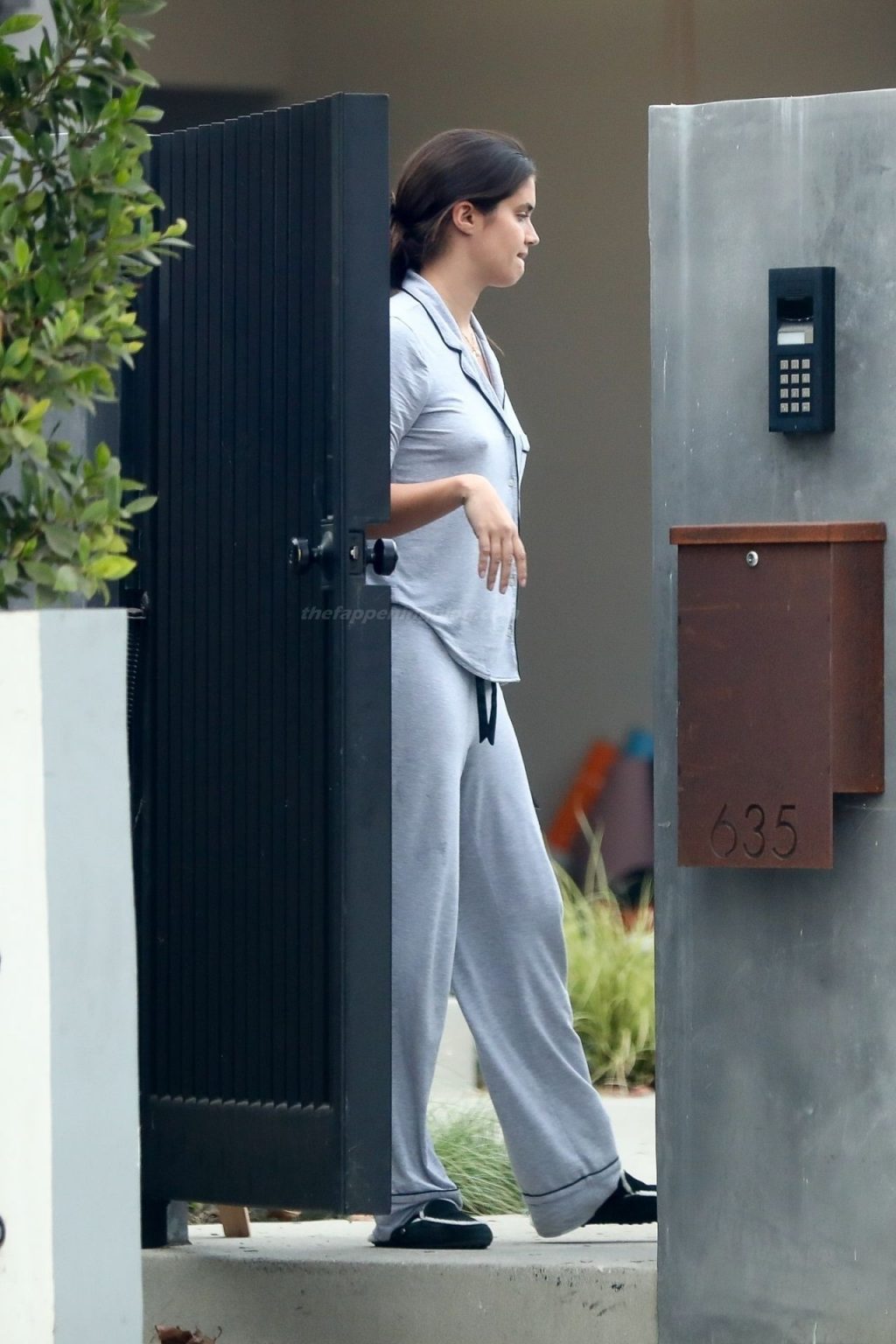 Modelo portuguesa Sara Sampaio sai com seu pijama confortável para receber uma remessa e limpar sua garagem em Los Angeles, 12/07/2020.