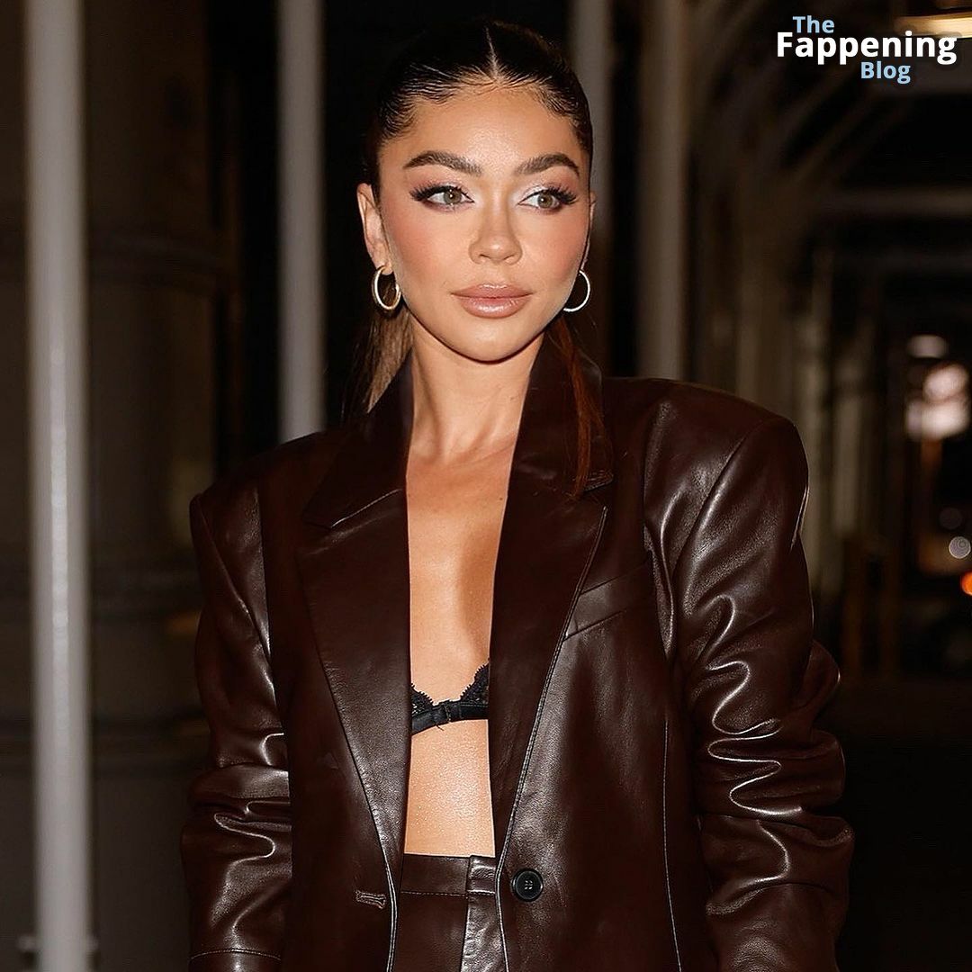 Sarah Hyland está arrasando com um decote incrível com seus seios pequenos, mas sedutores, pernas lindas, pés deslumbrantes e corpo bem tonificado enquanto ela usa com confiança uma jaqueta aberta, combinada com um sutiã e uma minissaia.