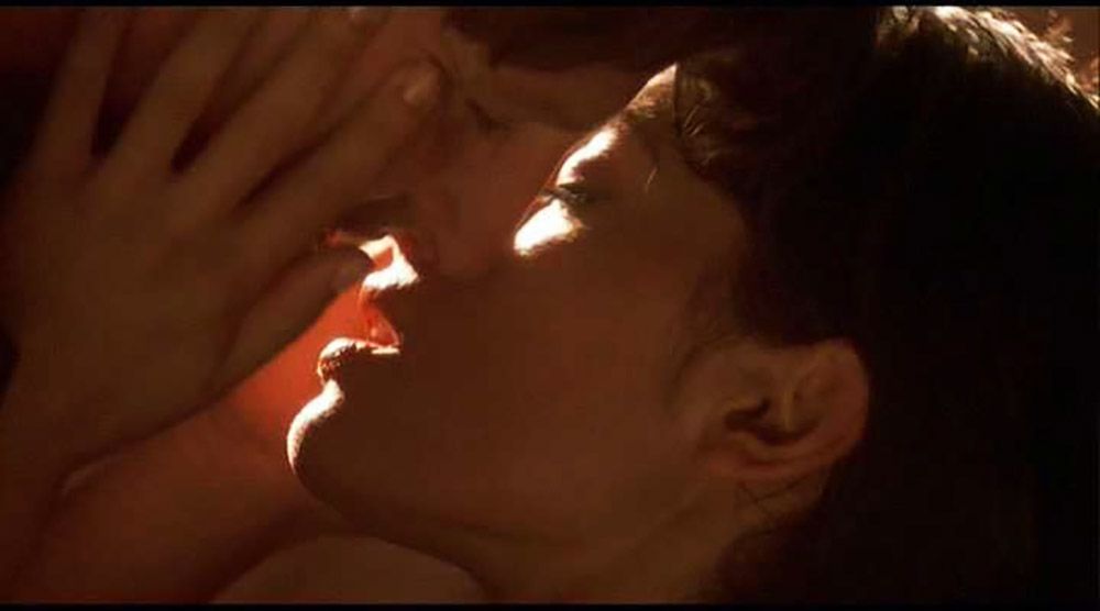 And the last, but indeed not final scene will give you joy too! Sarah Shahi shows plenty of cleavages as she lies on her back, making out with a guy. Her breasts being squeezed in her low-cut red top, as the guy then goes down on her.