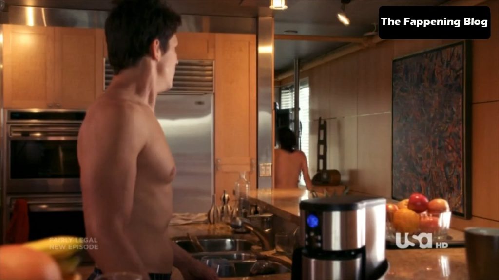 Again nude Sarah Shahi is here on the screen! She is stepping out of bed as the camera pans up her feet and legs. Then she’s walking into another room, as she removes her white shirt, giving us a very slight look at the side of her left breast and then her bareback.
