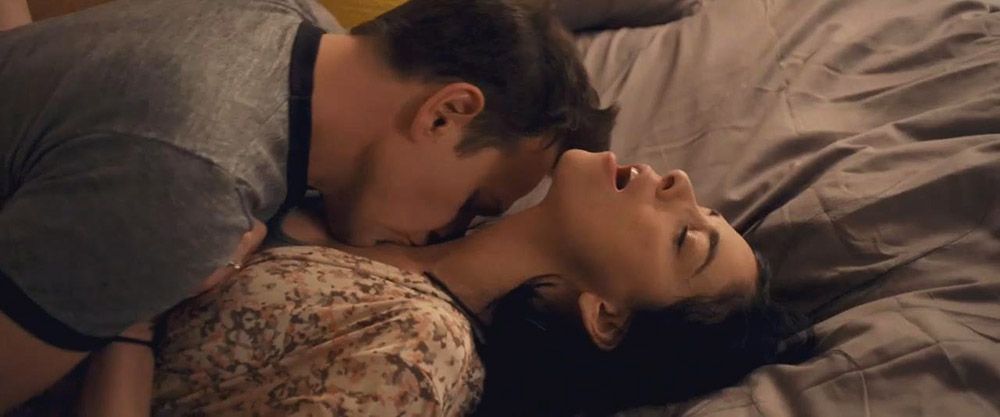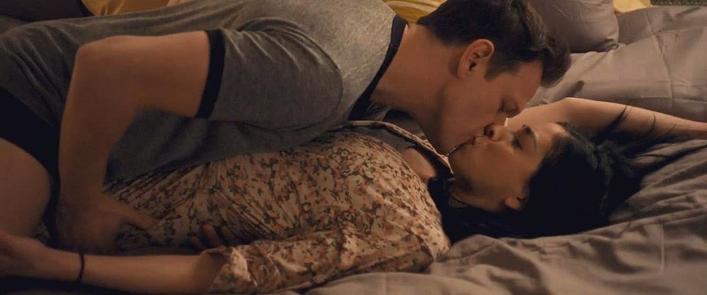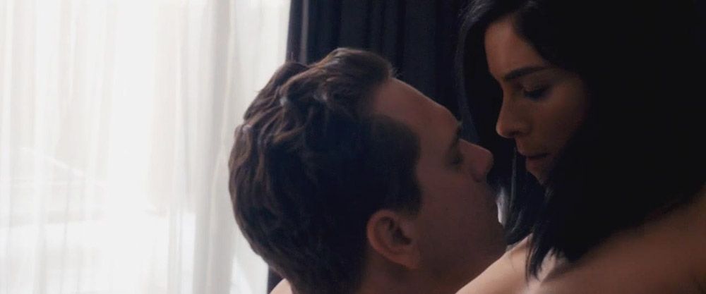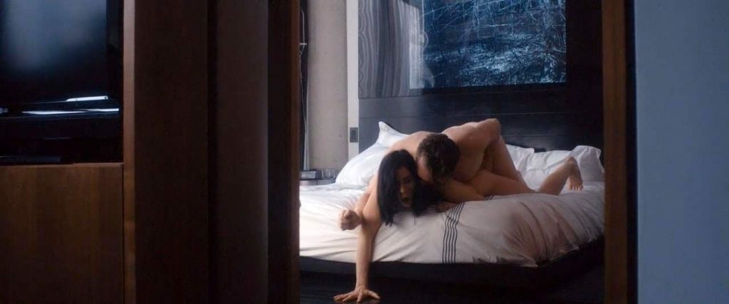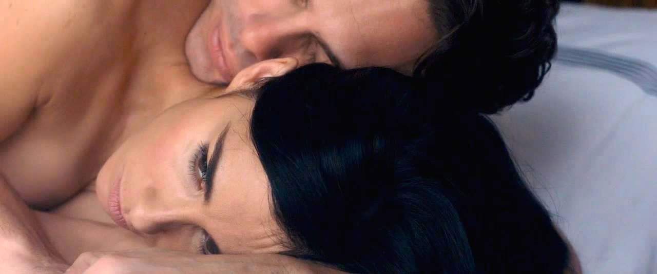 Sexy Sarah Silverman first in a guy’s lap as they have sex on a bed. The guy flips her over onto her stomach naked, and we see a bit off her butt cheek as the guy begins to have anal sex with her. She then lies on her side in the guy’s arms, showing some cleavage.