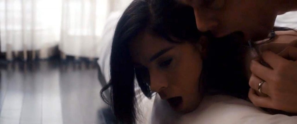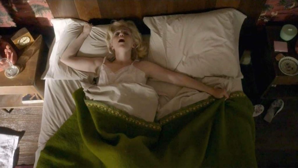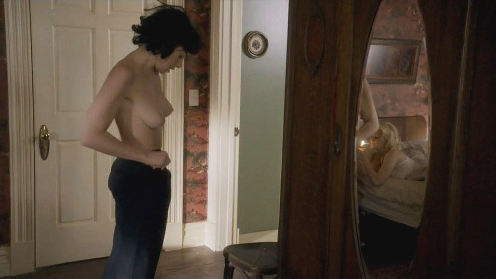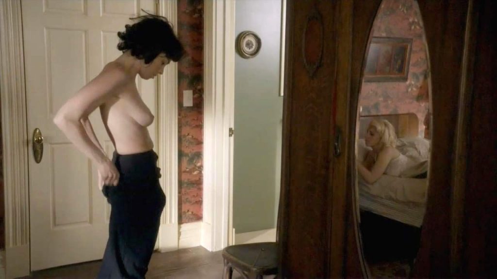 Annaleigh Ashford is lying on her back in bed as Sarah Silverman licks her pussy while hiding under the covers. Sarah then emerges, and the girls lesbian kiss in each other’s arms. We then see Sarah Silverman topless from the side as she stands beside the bed.