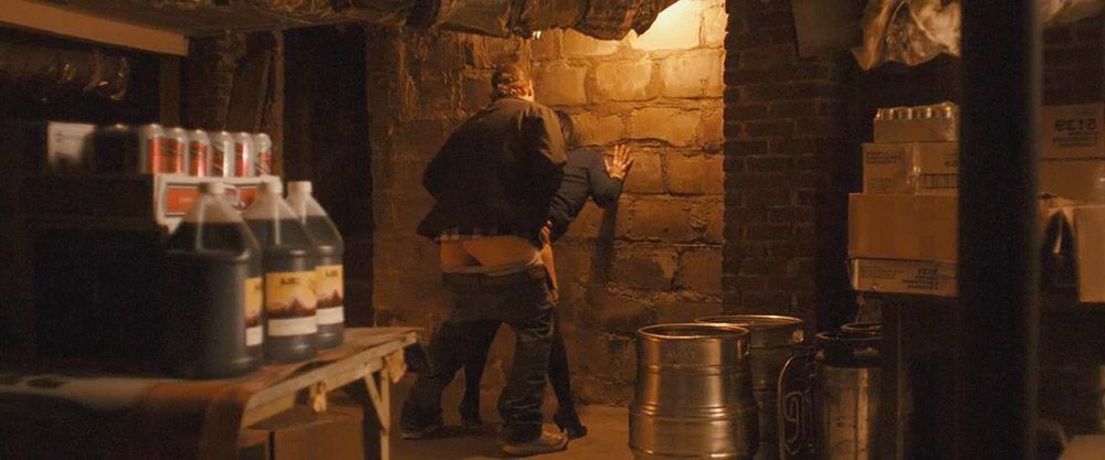Hot Sarah Silverman is standing with her hands on a wall as a guy has sex with her from behind. They both have their pants pulled down. After they have sex for a while, Sarah pushes back against him.