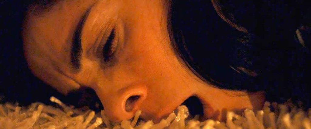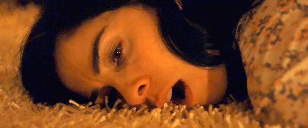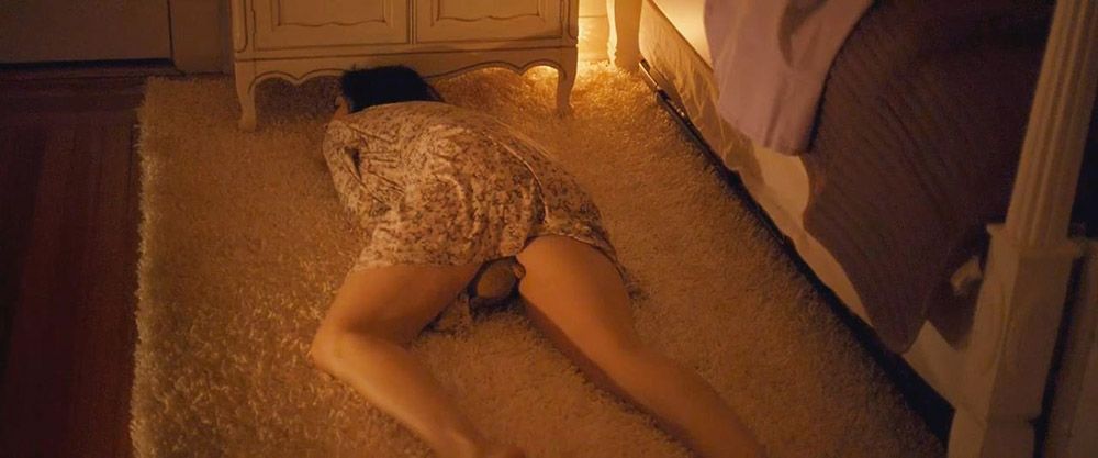 Sarah Silverman is lying on her stomach on the floor. She raises her butt in the air and puts a teddy bear down between her legs to grind against it and masturbate.