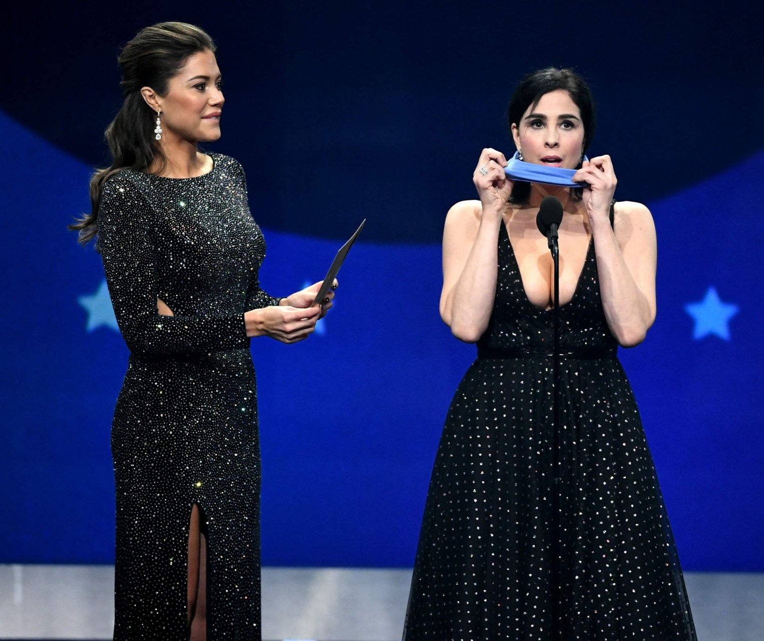 Sarah Silverman exibe seu decote perfeito no 24º Annual Critics’ Choice Awards em Santa Monica, 13/01/2019. A atriz de 48 anos, ex-amiga de Louis Szekely e colega de longa data, apareceu no tapete vermelho com um vestido sexy de decote muito profundo, destacando seus seios magníficos.