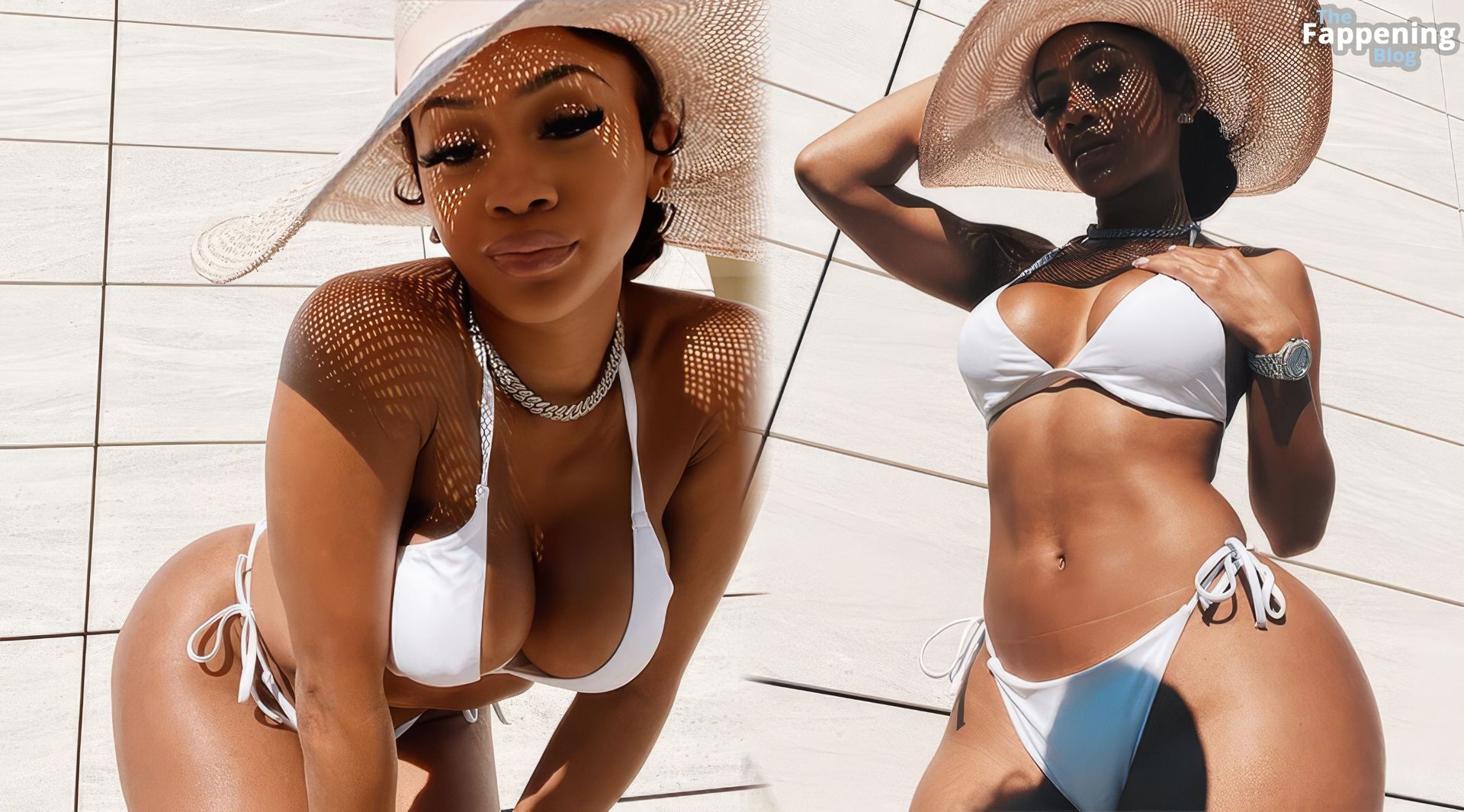 Confira a impressionante exibição das curvas e dos seios grandes de Saweetie em seu biquíni branco deslumbrante.
