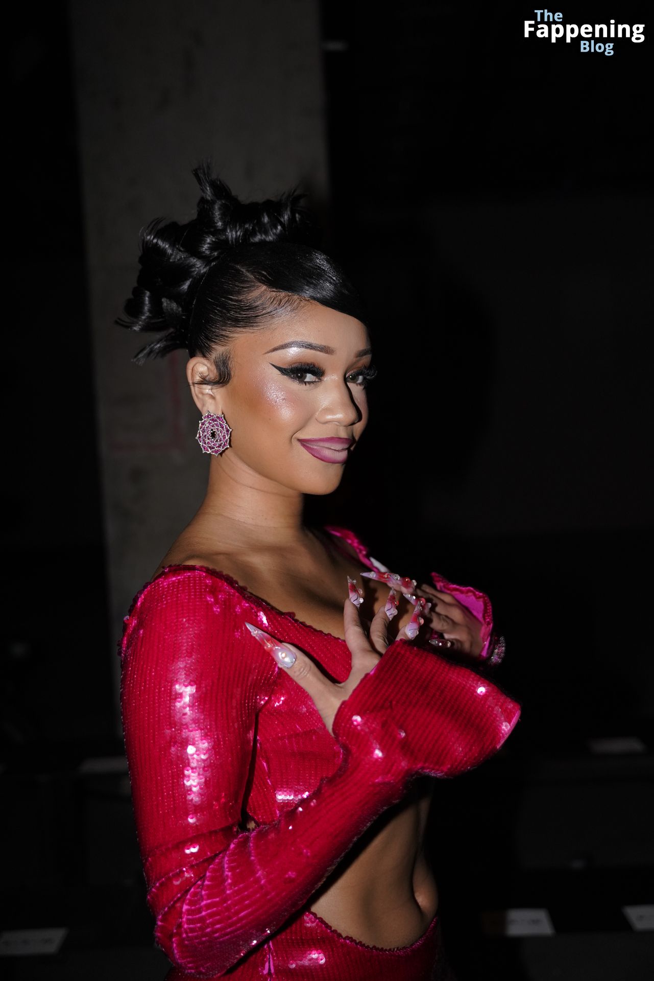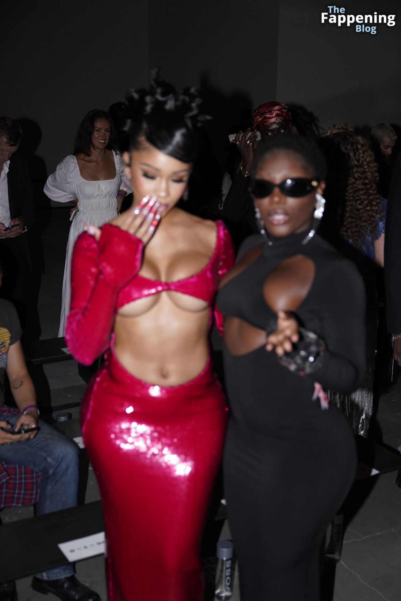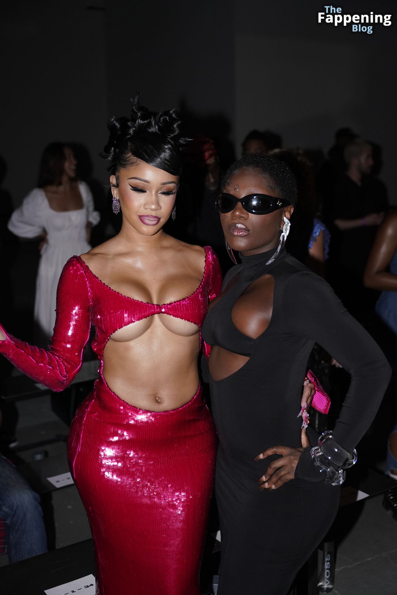 A estrela do rap Saweetie foi vista chegando com um estilo incrível no desfile de moda La Quan Smith durante a NYFW em Nova York, 11/09/2023.