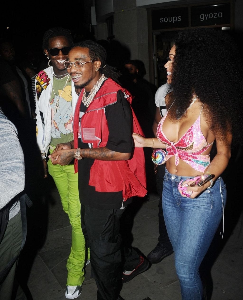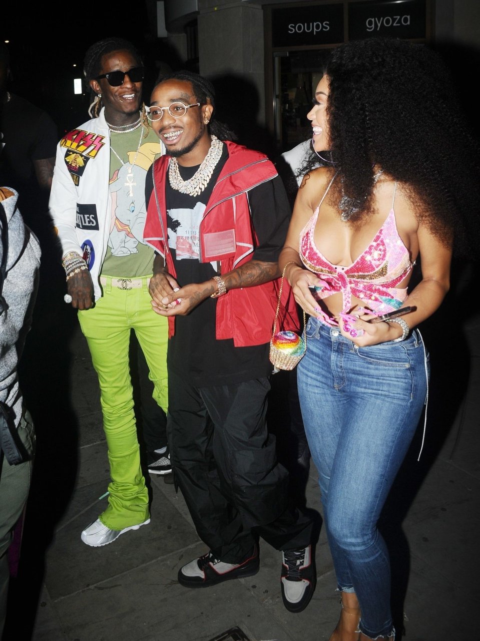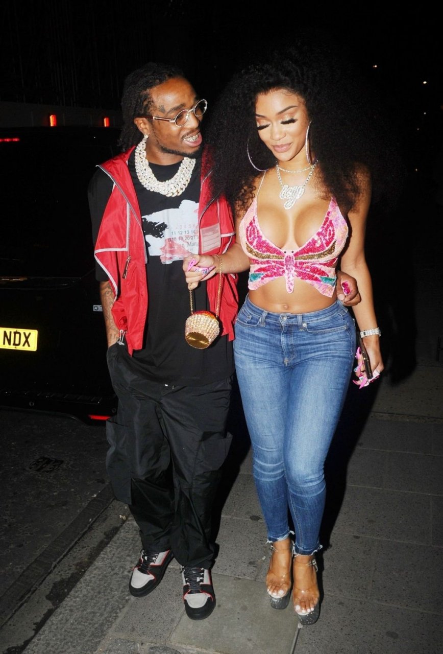 O rapper americano Quavo e a cantora Saweetie (Diamonté Harper) foram vistos comemorando seu aniversário em Londres, 07/03/2019.