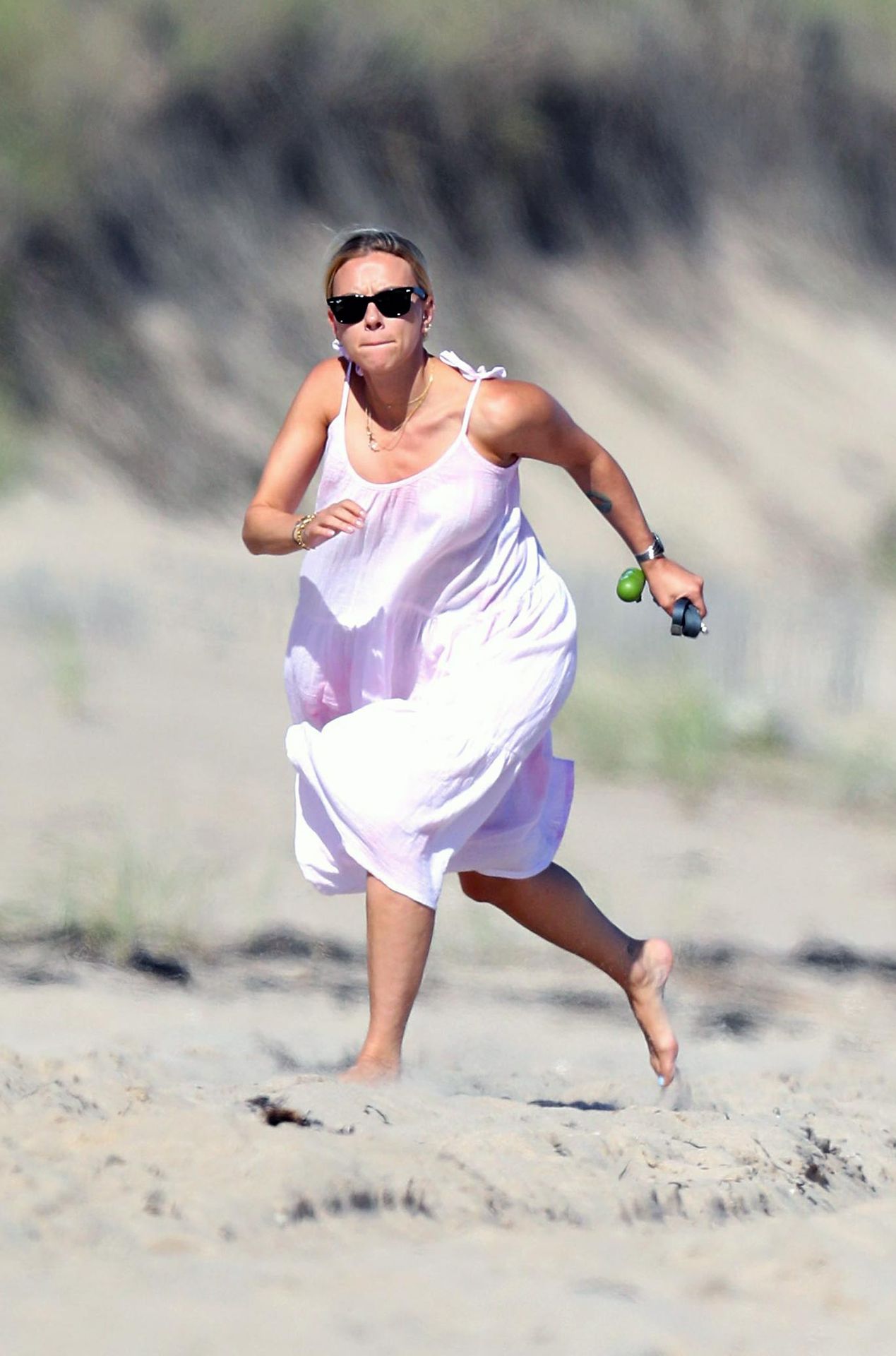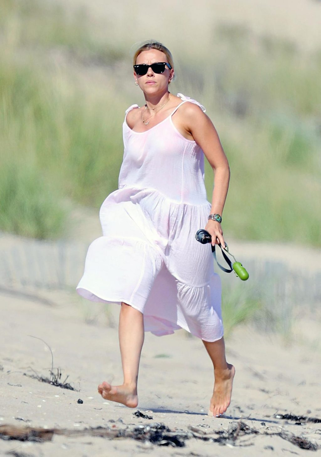 And now, guys, let’s take a look at what quarantine has done to our favorite blonde! She is either pregnant or just got fat during Corona because she is hiding her big stomach underneath a wide summer dress! She also did not wear a bra, and we can see that even her tits got fat and bigger! She went on a walk with her dog on the beach in the Hamptons as the paparazzi spotted her while sunbathing!