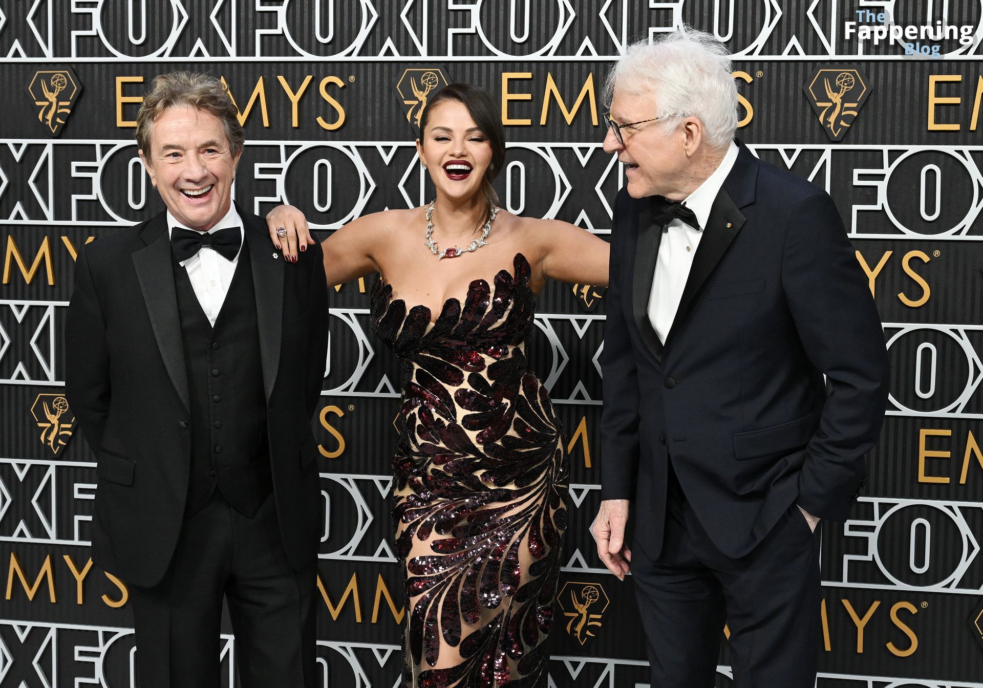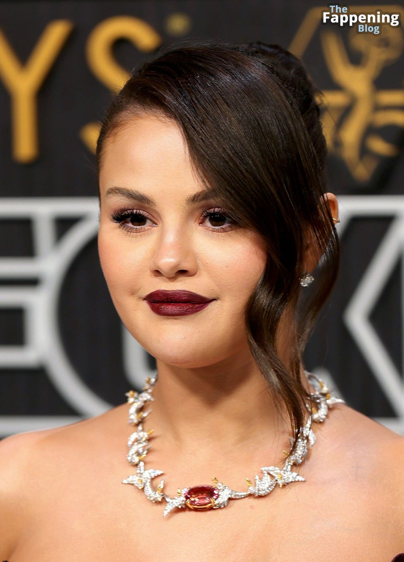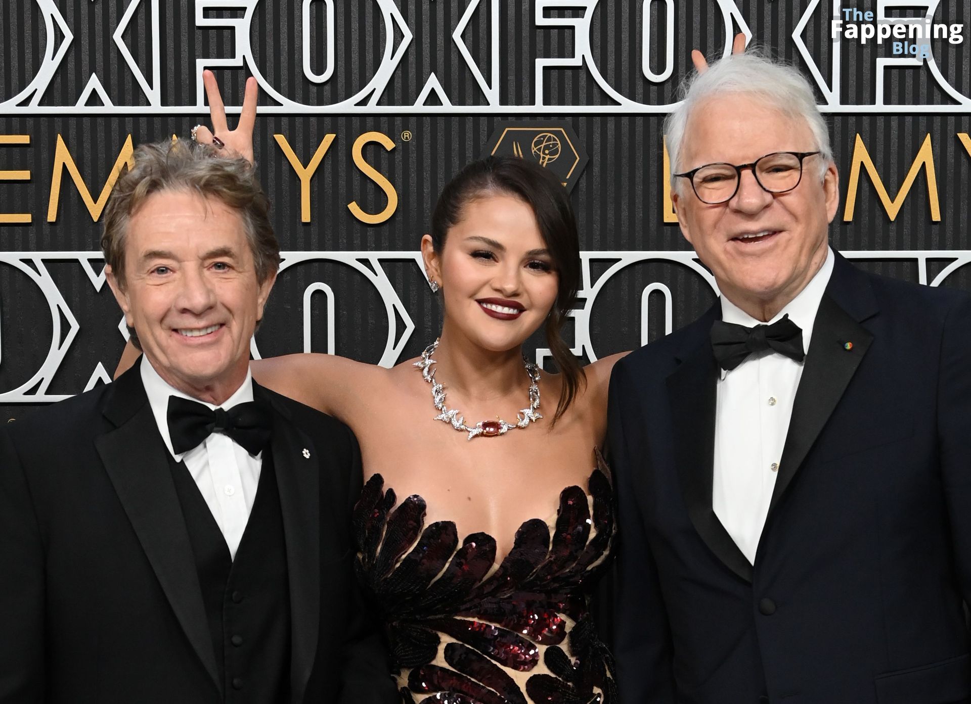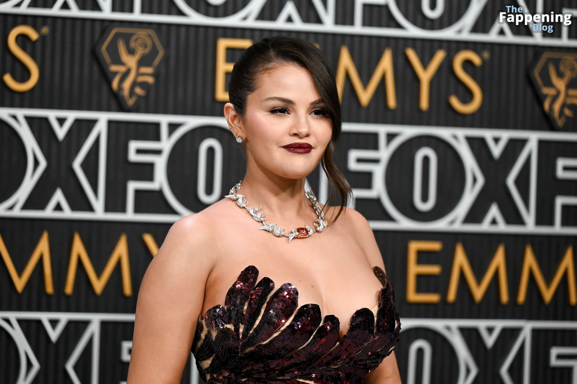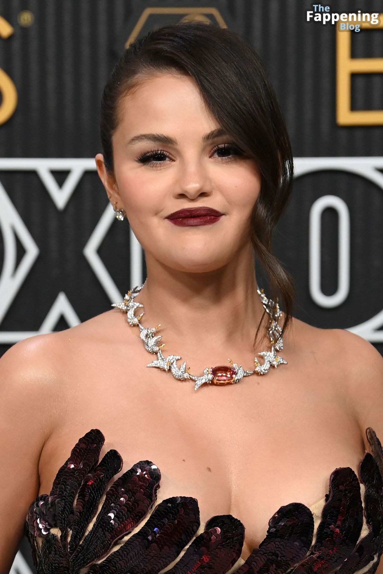Selena Gomez aumenta a temperatura no evento com um decote sexy. Ela esteve presente na 75ª edição do Primetime Emmy Awards no Peacock Theater em 15 de janeiro de 2024, em Los Angeles, Califórnia.